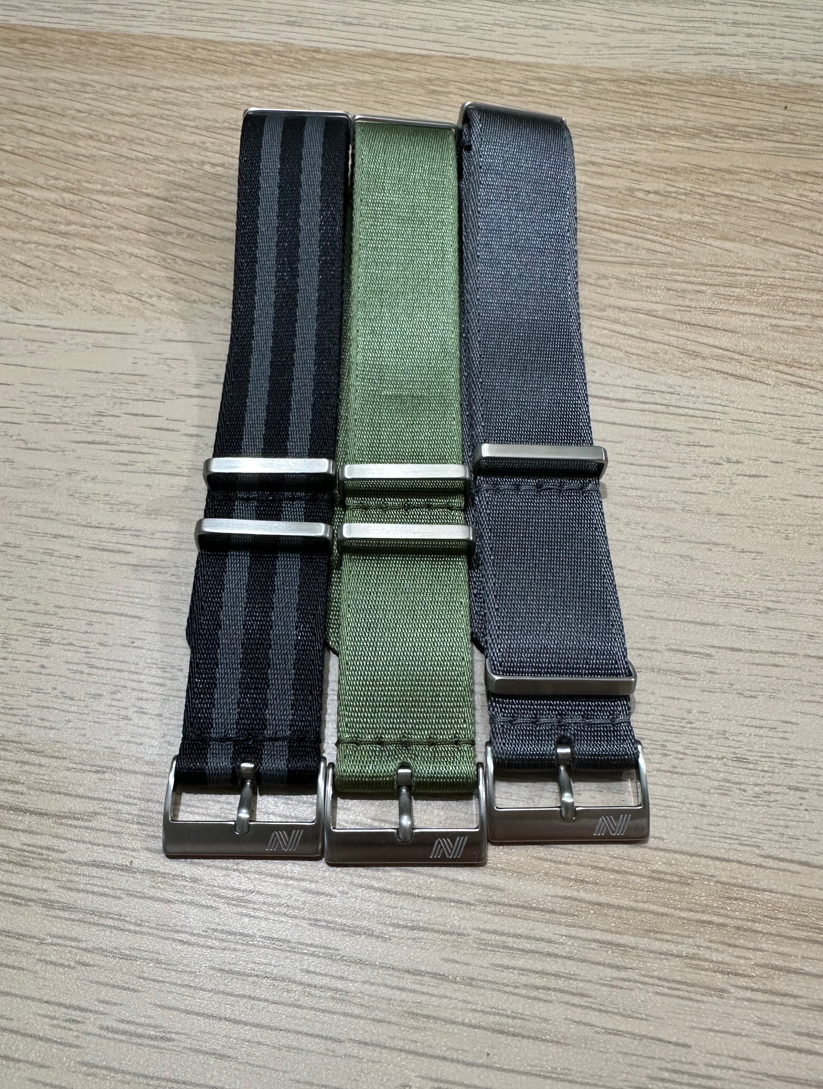 - 3 x Phenomenato NATO straps (olive green, admiralty grey, and Bond), all short length, which fits my 6.75" wrist