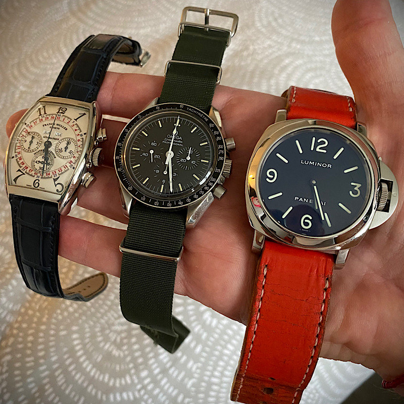 Just prior to the first lockdown, my last Rolex went to fund a late tritium Speedmaster and during those lockdowns, I really started to look at my small collection. Out went a Panerai 233 to fund a watch I lusted after in the 90s; a Franck Muller Master Calendar, and then a Seamaster 300 for an early Panerai Base as I missed having a Panerai, but not the complications. The Speedmaster is staying!