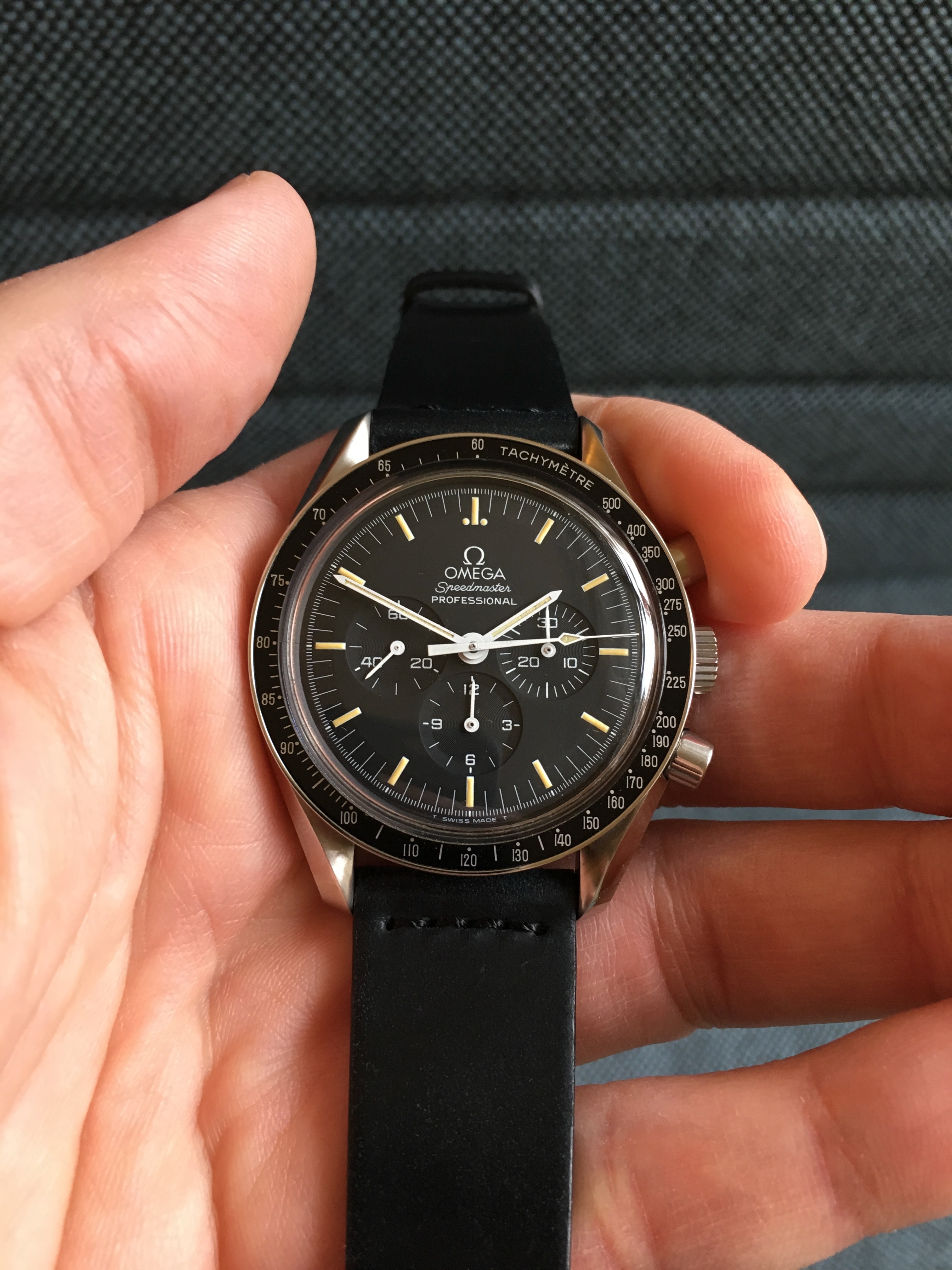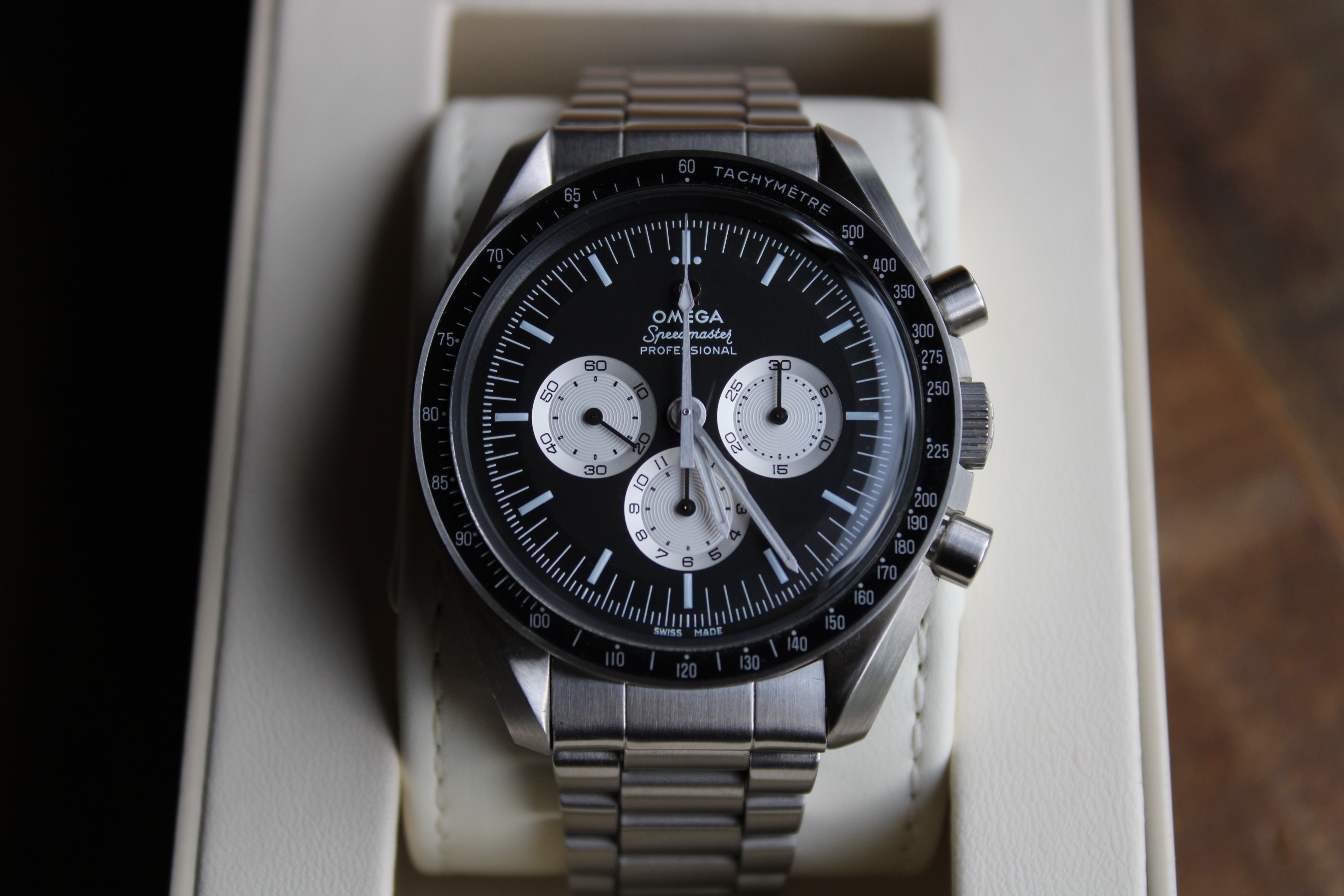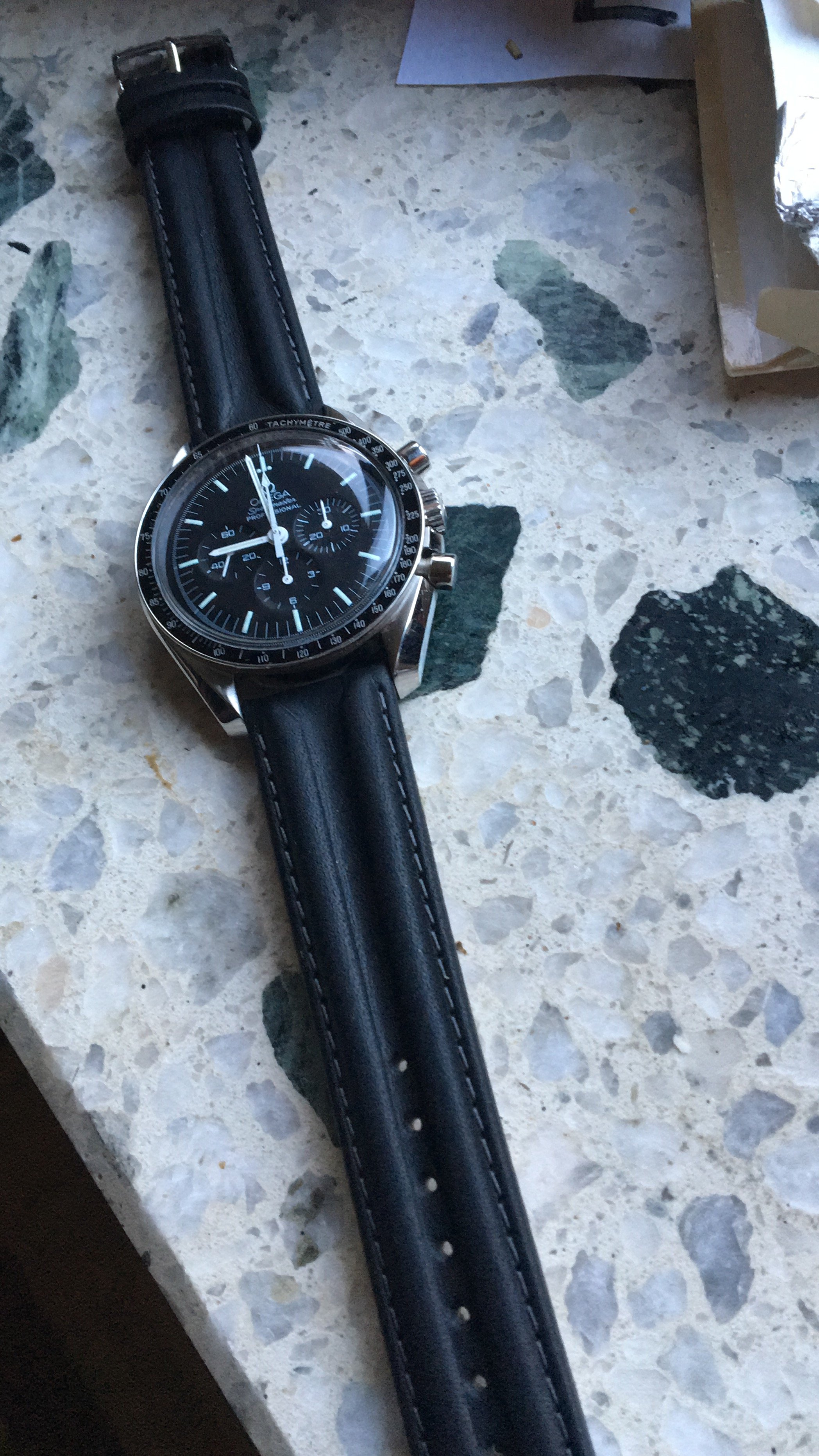 I mostly wear brown leather so therefore buy brown leather watch straps (I’m not a huge fan of metal bracelets); now I’m leaning towards a brand new Speedy Pro as opposed to the minefield of vintage ones but not convinced brown matches the black and white of the watch.