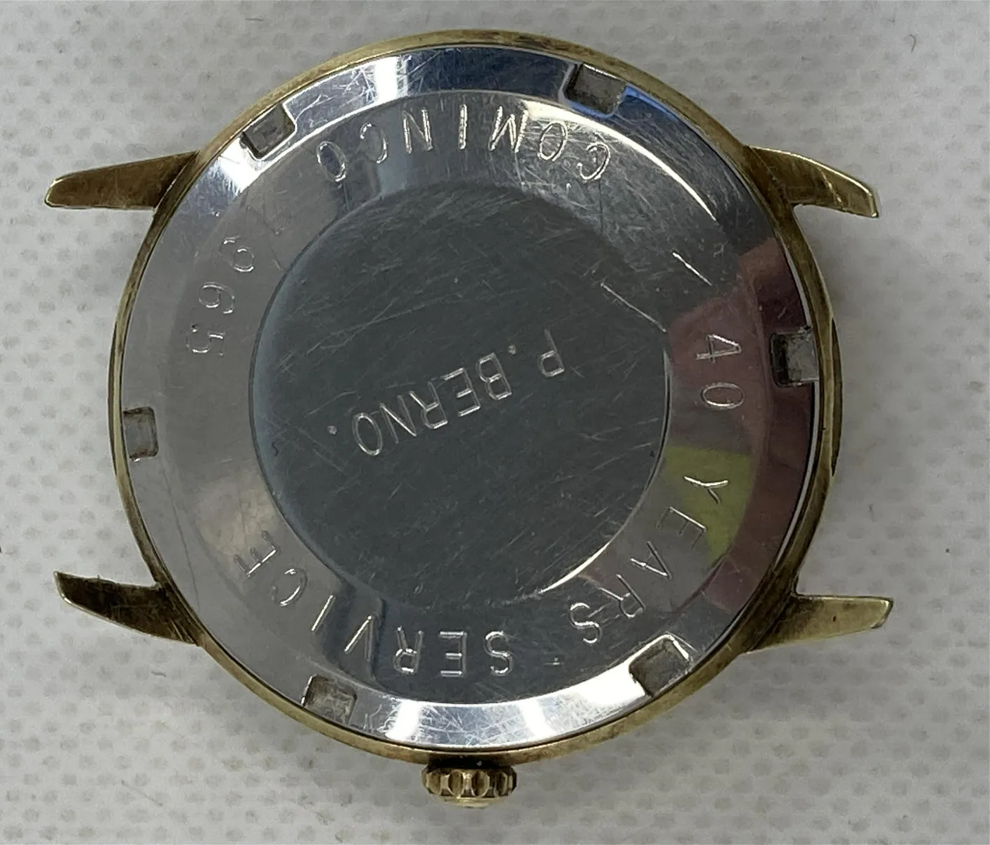 ·I just purchased this one and am awaiting it's arrival. I was ambivalent about the logo and inscription but for the price I took a flier. I am curious about the fact that I could only find images of Stainless versions. Is the Ref correct as I've posted it? Is the crown correct? I've seen others in the images I looked at. What is the best way to clean the "patina" off (or should I?)?
