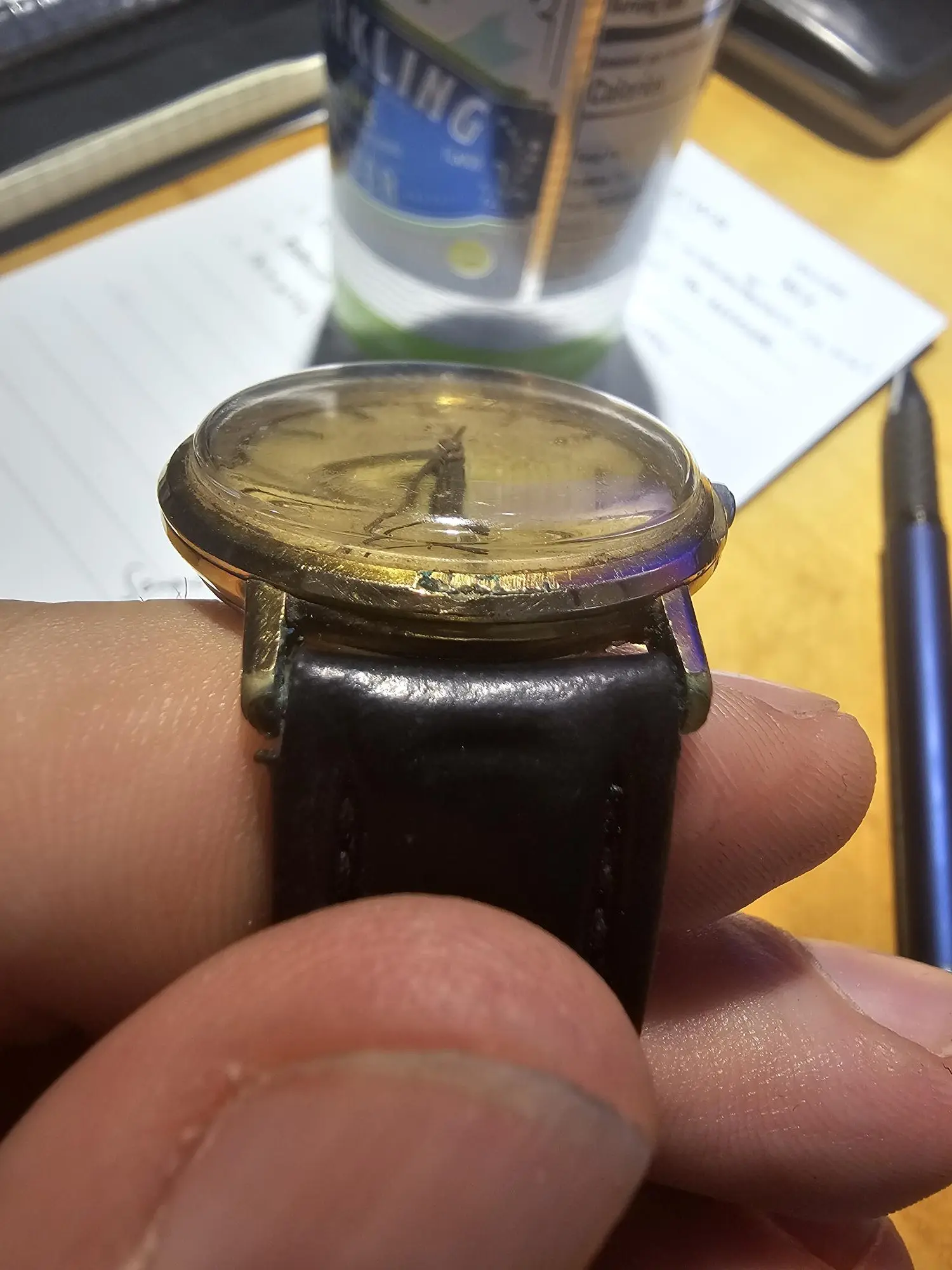 I believe the case is 18K gold plated and it has some damage so I have two options: 1) pay for expensive restoration/replating or 2) find a replacement case in better shape.