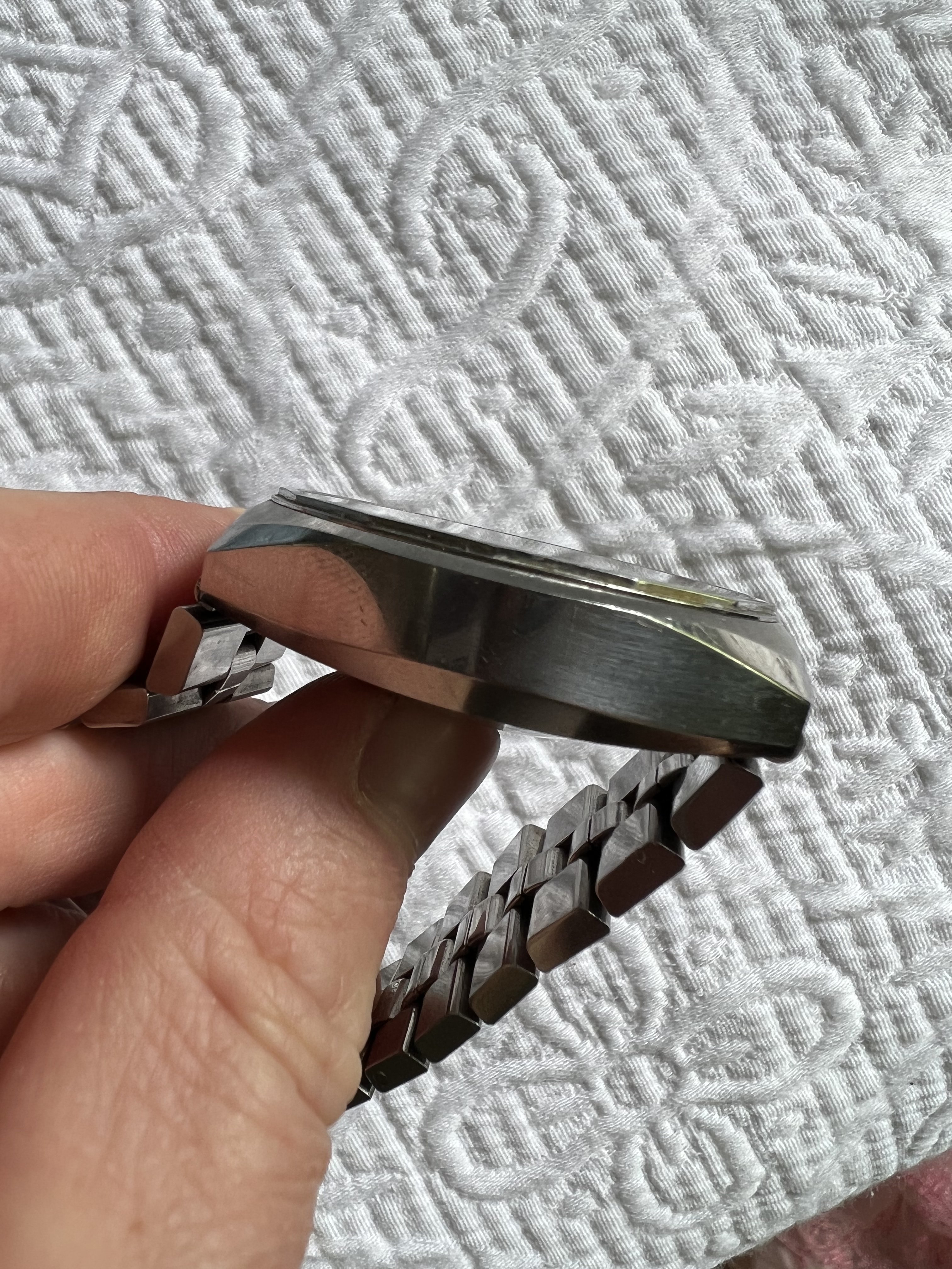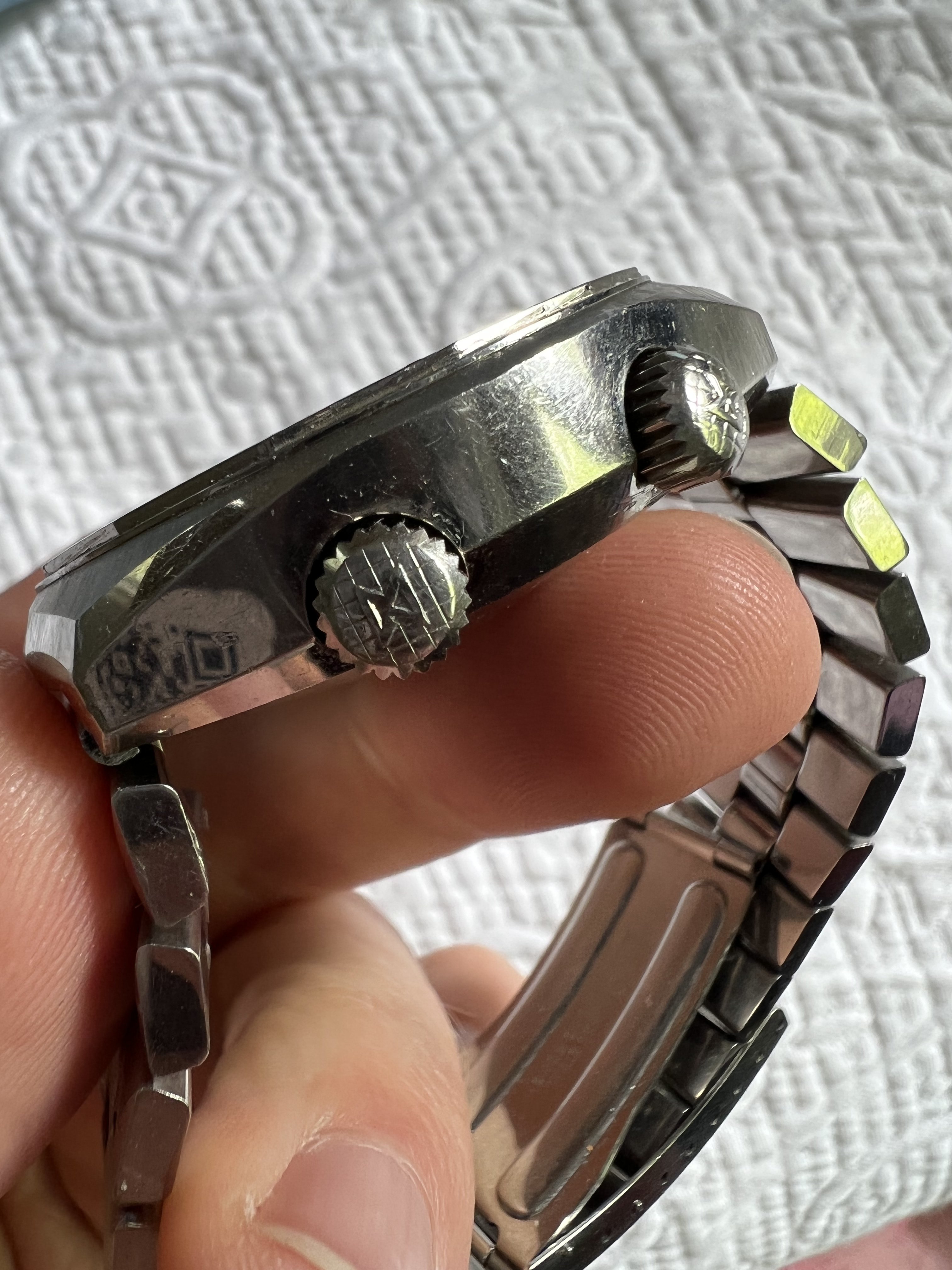 Other: original crowns, hands, mineral glass crystal, and correct unsigned bracelet.