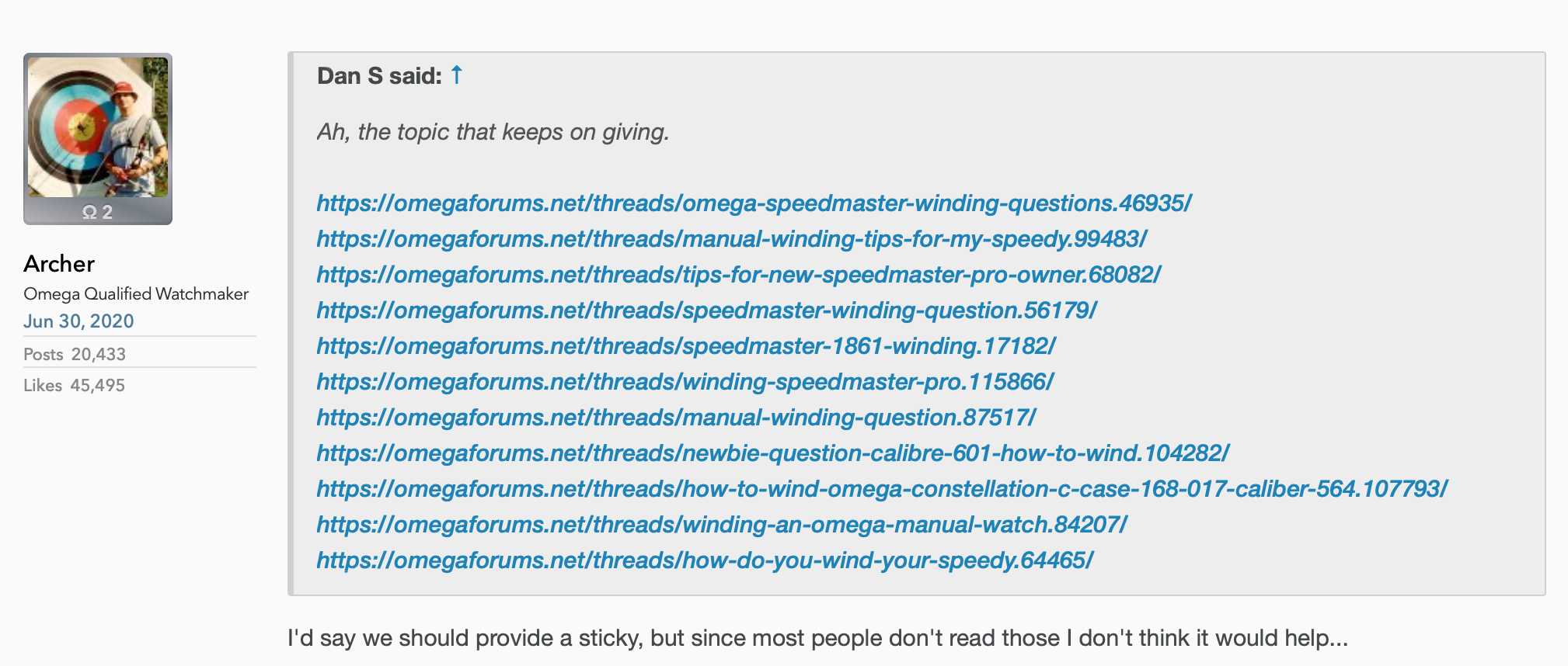 ·I was thinking we should start a new sticky at the top: “How do I wind my Speedmaster.”