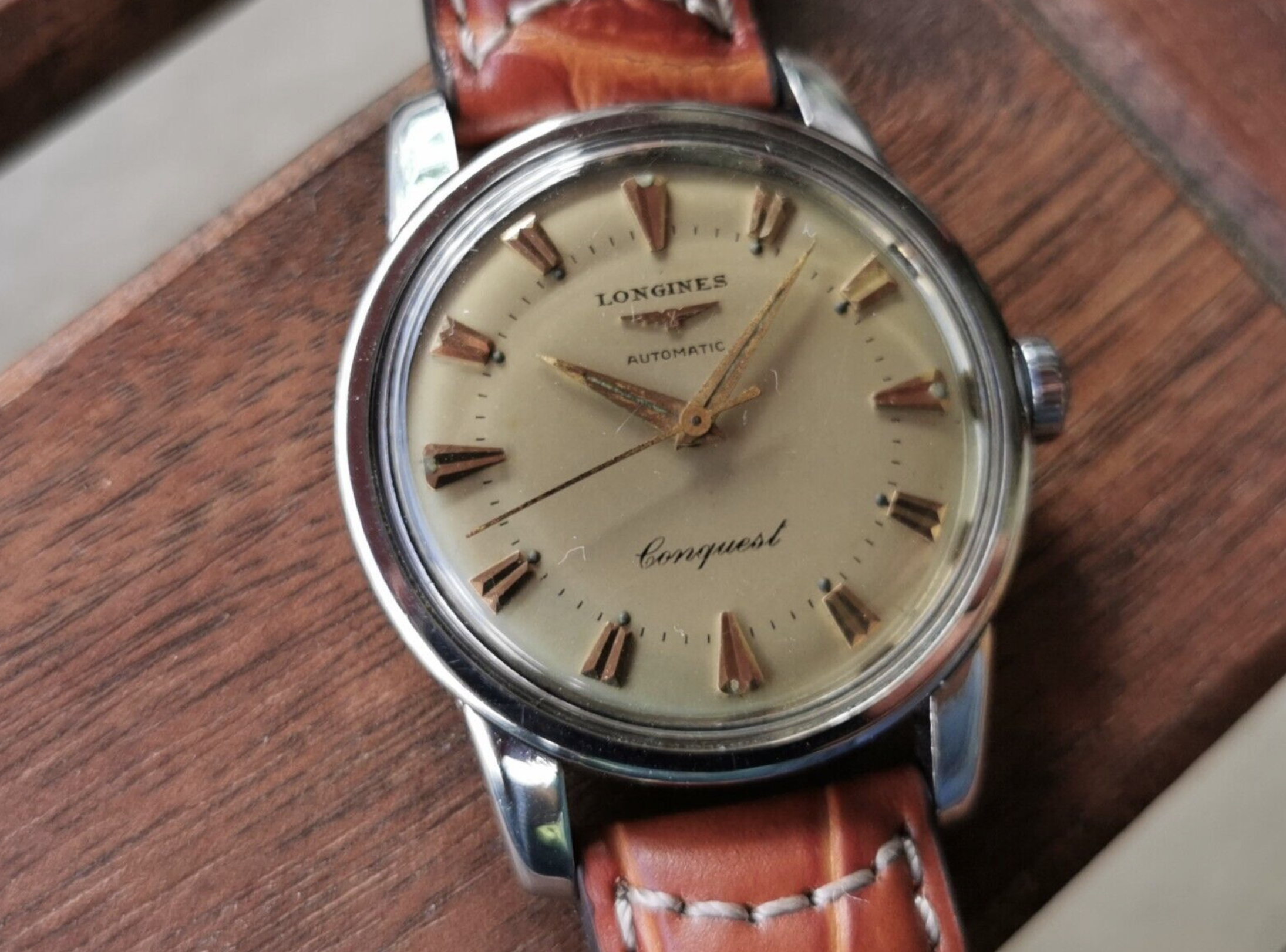 路I am in the early stages of researching, prior to hopefully finding, a 9000 Conquest. This particular watch has attracted my attention. It is described as a 9000-5 dated between 1953 and 1955. I cannot find pictures of another Conquest online which uses the same font for the word 'Automatic' that this one does. This makes me think that perhaps the dial has been restored, or the watch has been redialled. But I don't know enough about Longines to be sure. I feel sure that there is someone here who has seen something similar and can share their knowledge with me...