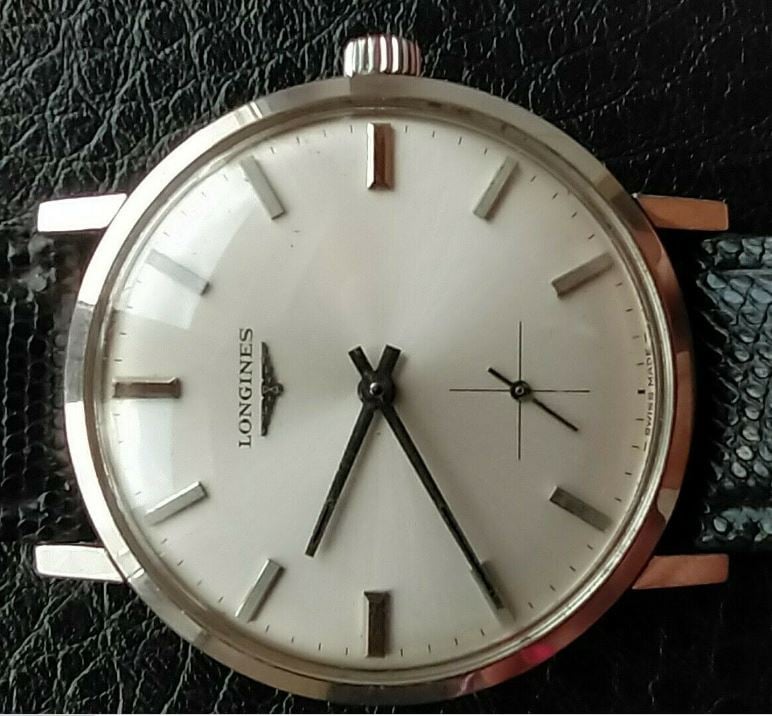 ·I've been wanting a vintage Longines and a SS watch with a second subdial. I found this 8236-2 that meets both requirements. It has a cal 490 (based on Election 885), which I realize is not that collectible. Serial number dates it to circa 1967. The dial looks original to me based on many comparisons, although it's tough to see the texture in the photos. Case seems crisp. The crown is not signed and I have seen it both ways. I think it's a nice watch and I'm looking to offer $250.