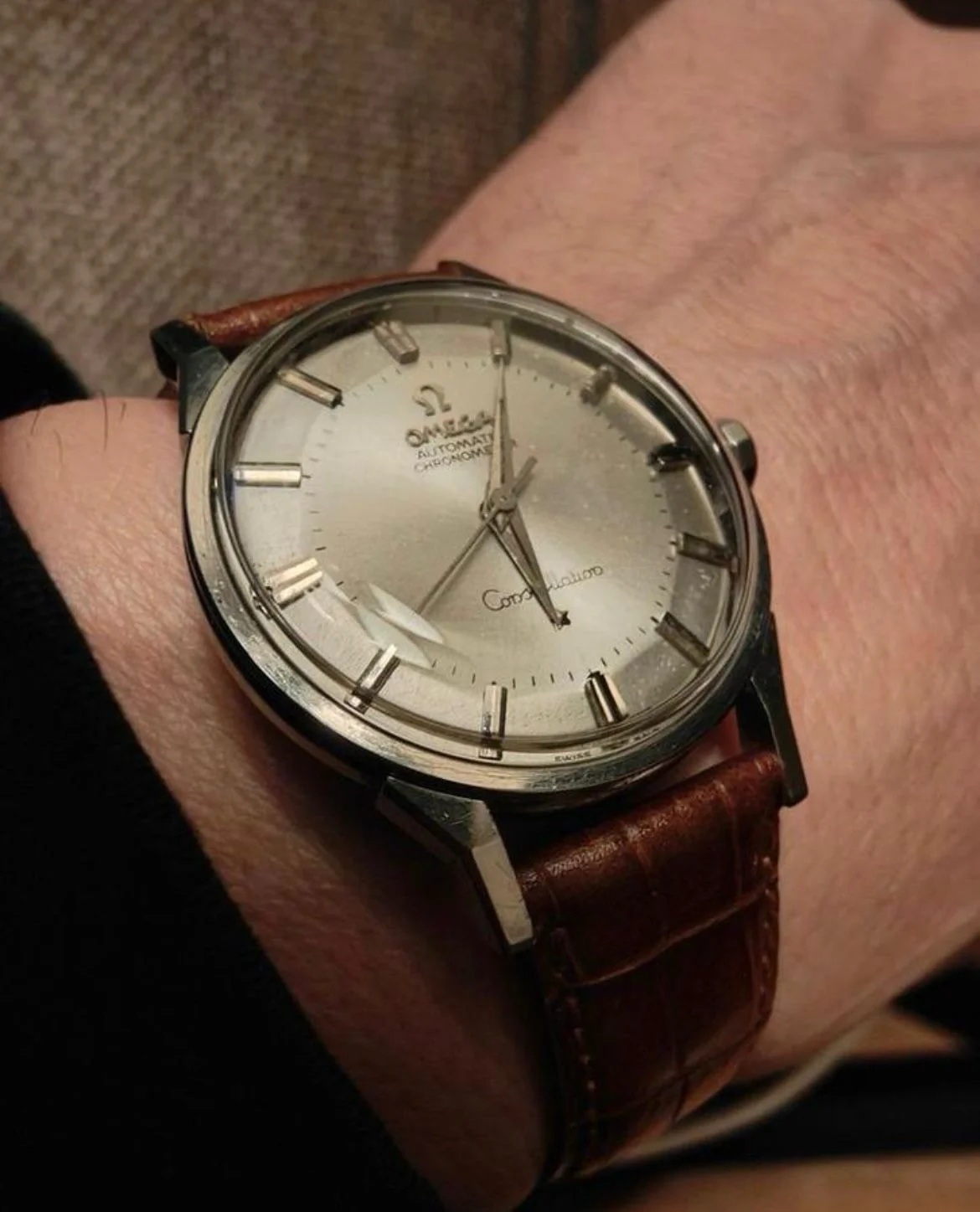 Has some patina on the dial, and has been serviced according to the seller.