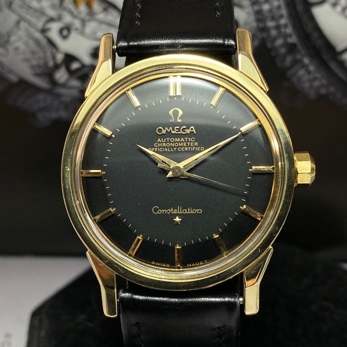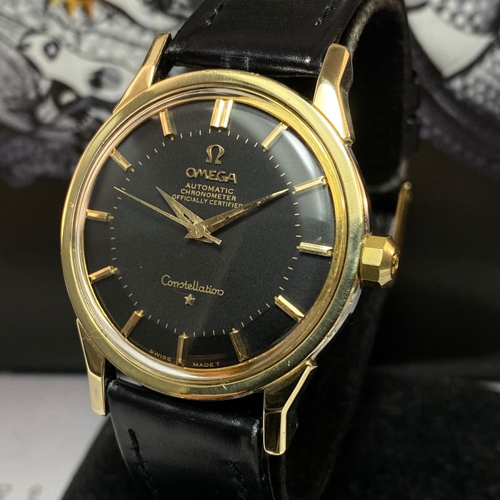 Gloss dials should be glossy, and the print should be metallic, not the grainy metallic of metal-colored paint. Dog leg case crowns are slimmer, and the correct part number is 4204. If I were you, I'd pass on this, since the seller is definitely asking a premium for that black dial, even if it is not original.