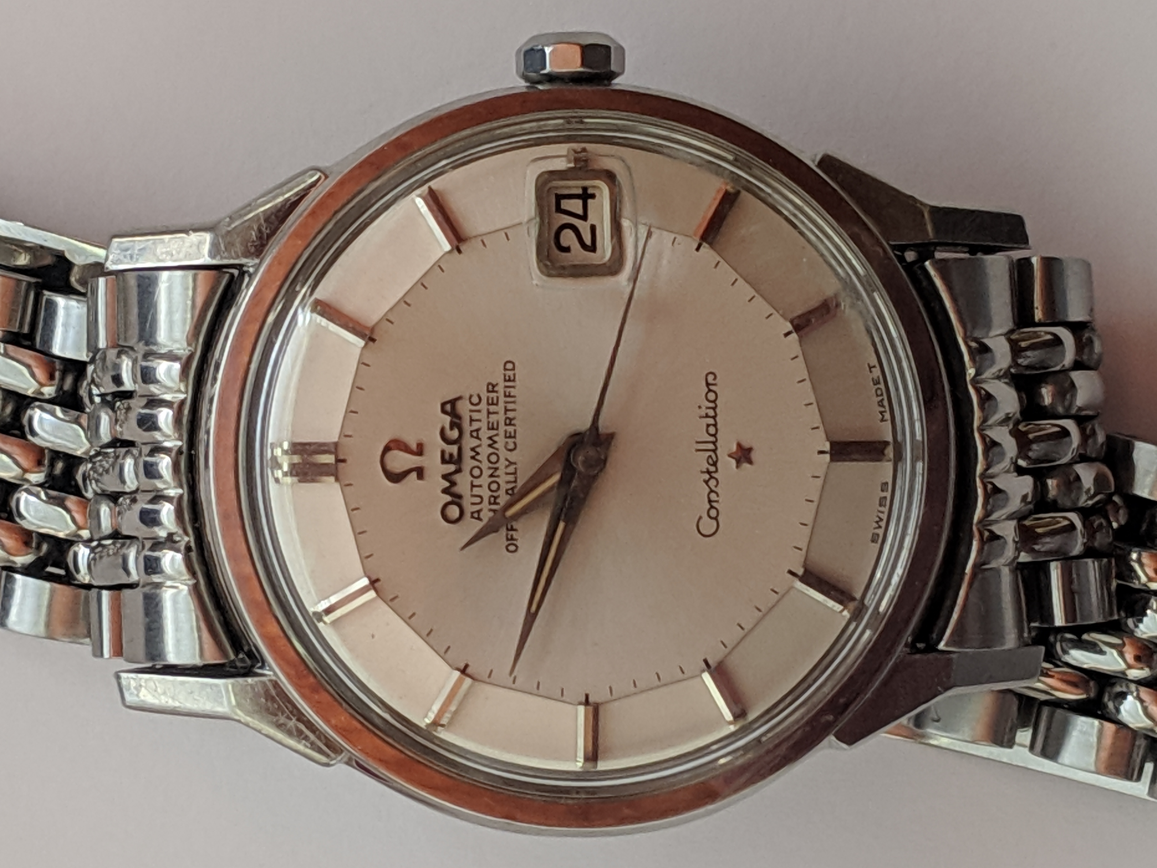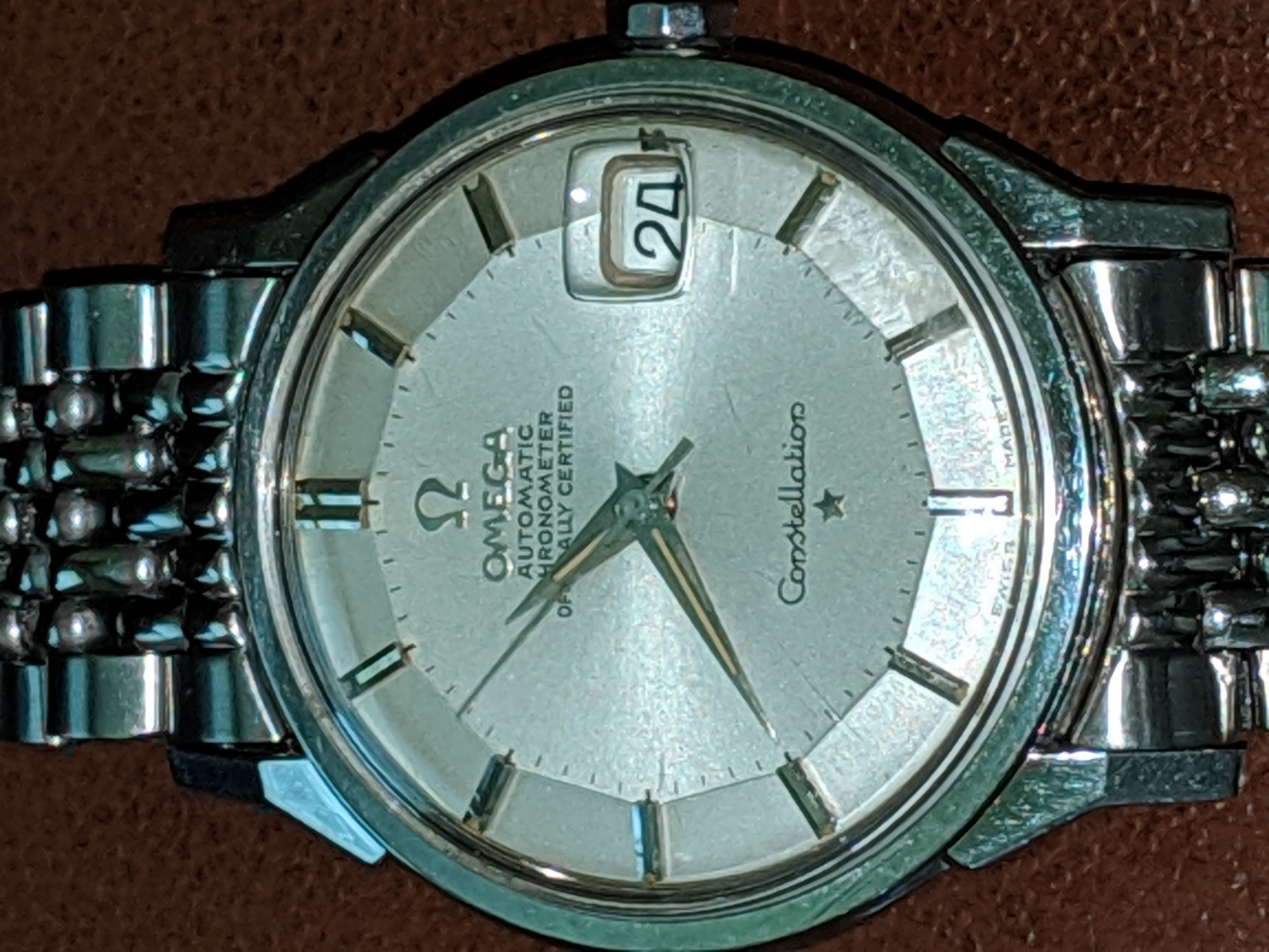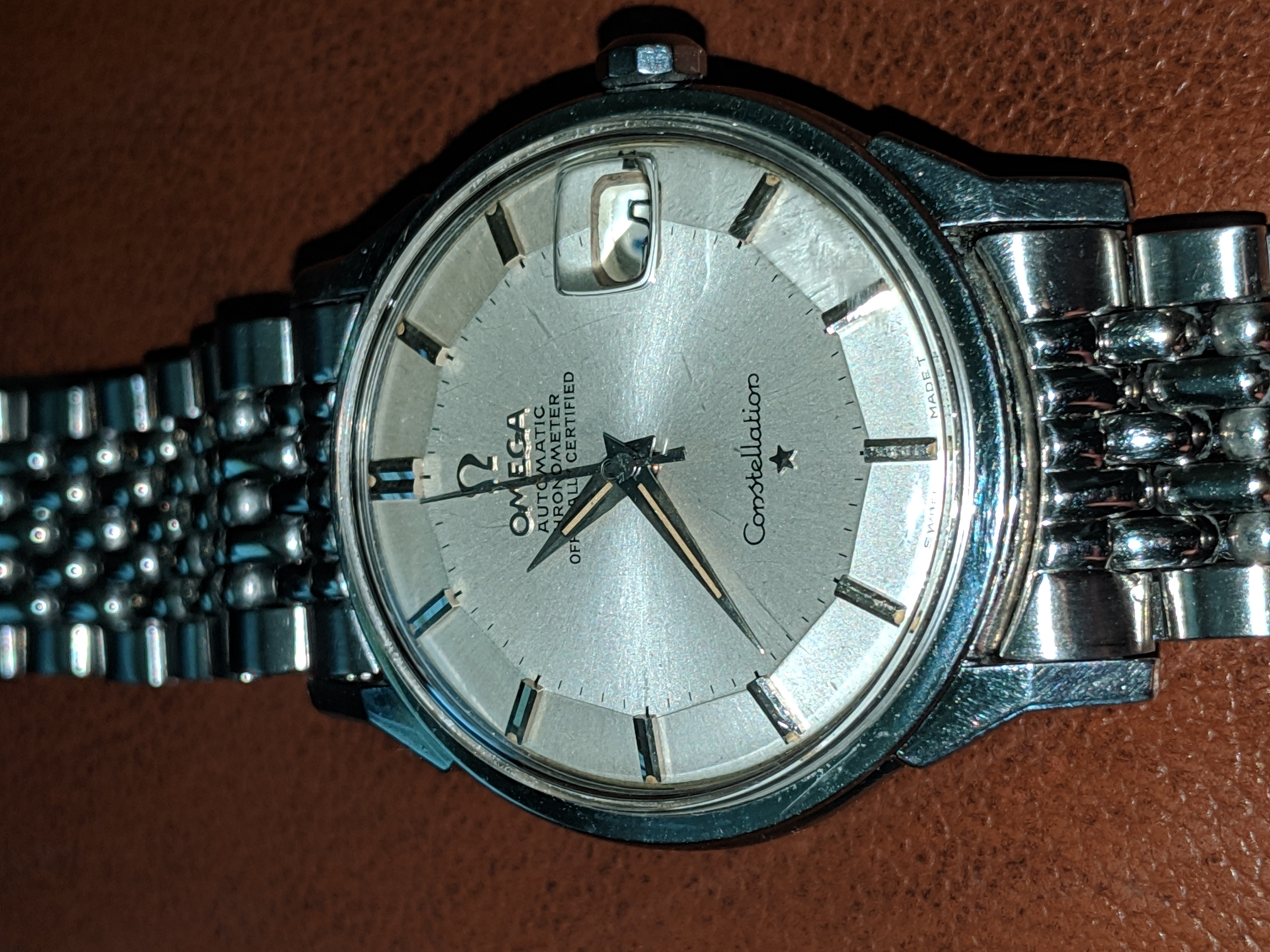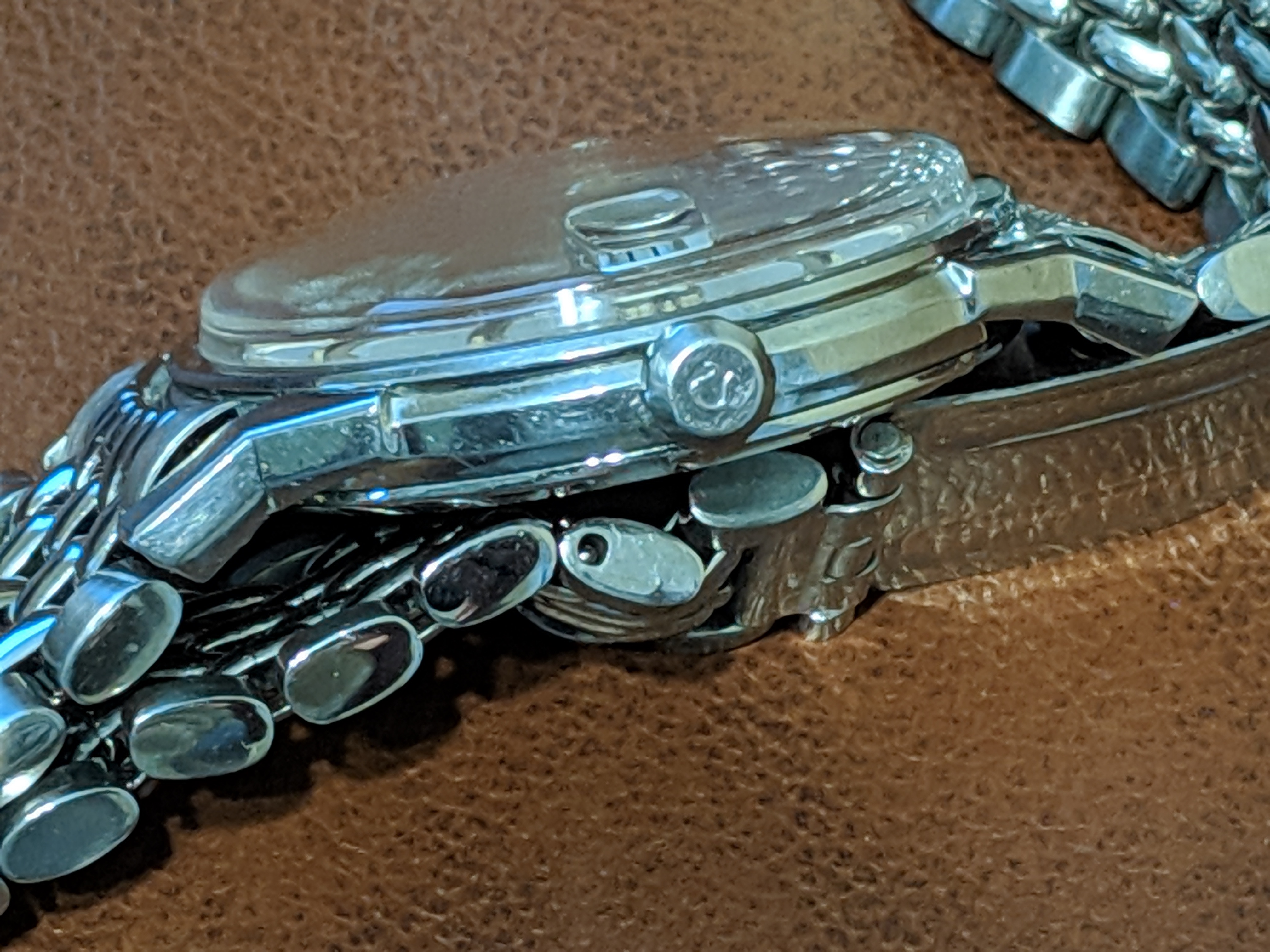 ·The time has come for me to part ways with some of the watches I do not get around to wearing very much. I bought this watch off of eBay about three years ago or a little more. I have only had the crystal replaced with an Omega. 561 service history unknown. But watch runs without any issues and keeps good time but have not checked it in detail. I have since put a scuff on the crystal around the Four area. Watch appears to have never been polished or buffed. Very crisp edges. Includes beads of rice bracelet and ends that I am not 100% sure or period-correct.
