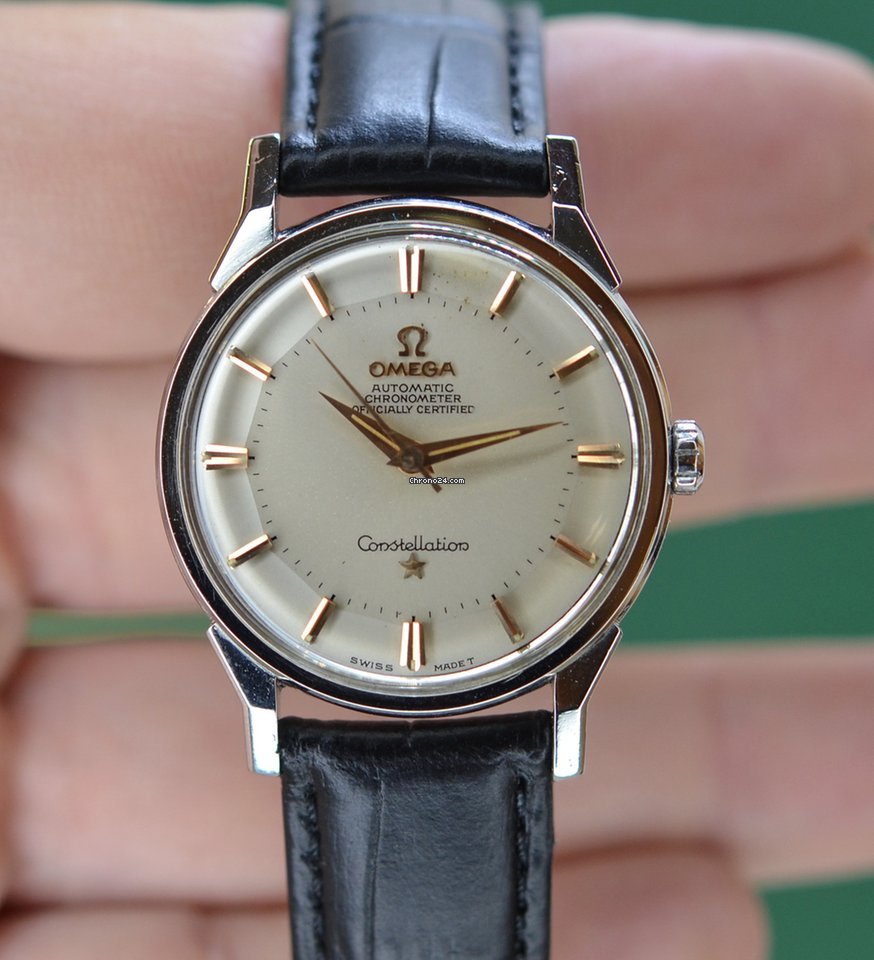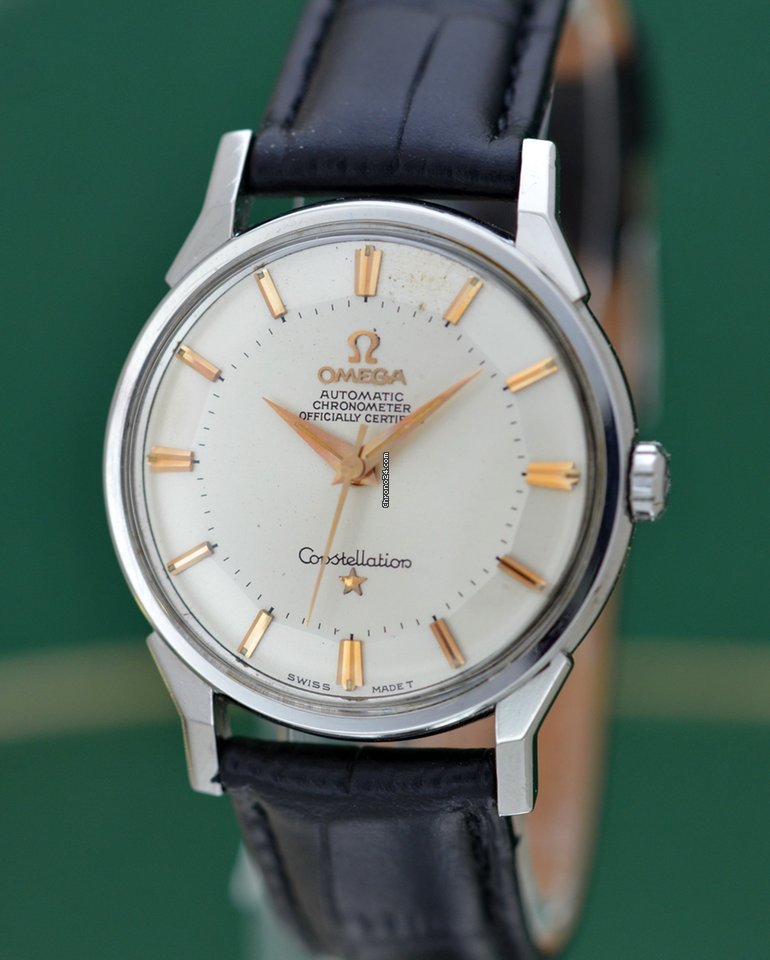 I'm not considering to buy the watch, but hope to learn more from it. Looking at this example, would the dial be correct? The star seems to sit very close to the Constellation text. Furthermore the crown seems wrong and the case quite polished?
