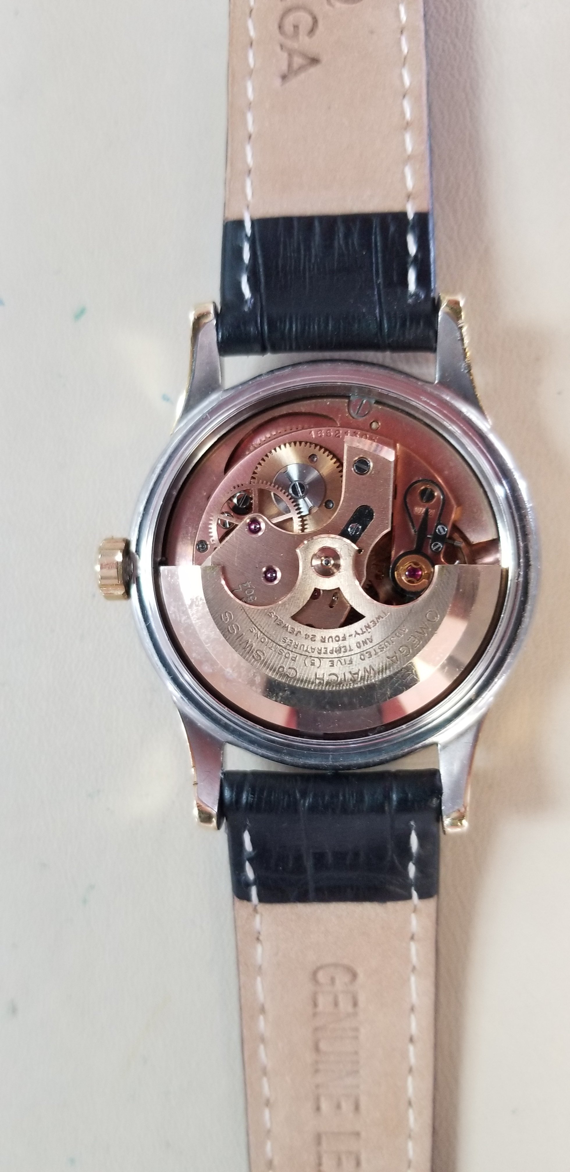 I recently purchased a calibre 504 Constellation dome dial in a gold capped case. The movement is in very good shape. The dial is black and likely a redial from what I’ve read so far about black dial Constellations. Serial number is 16521305 and case number is 2943 2 SC.