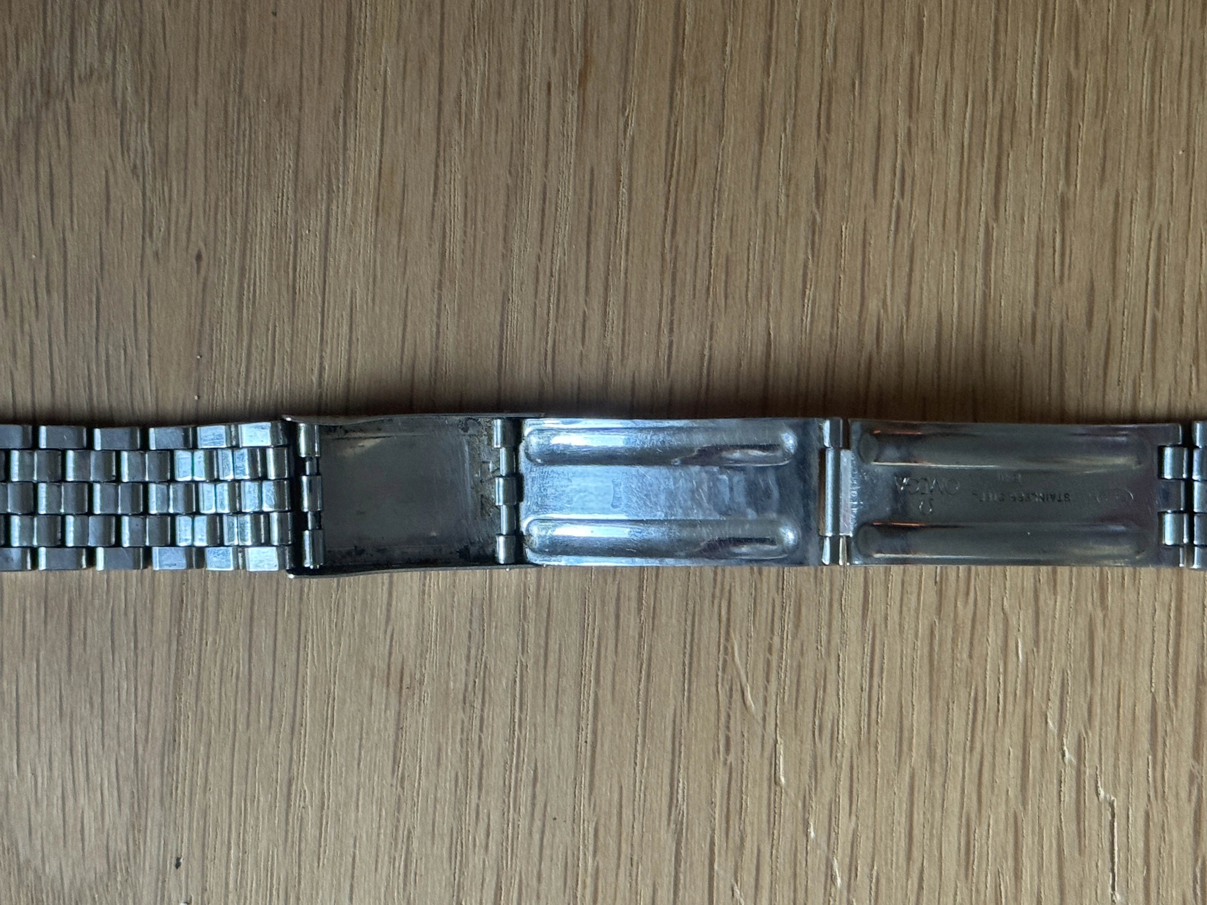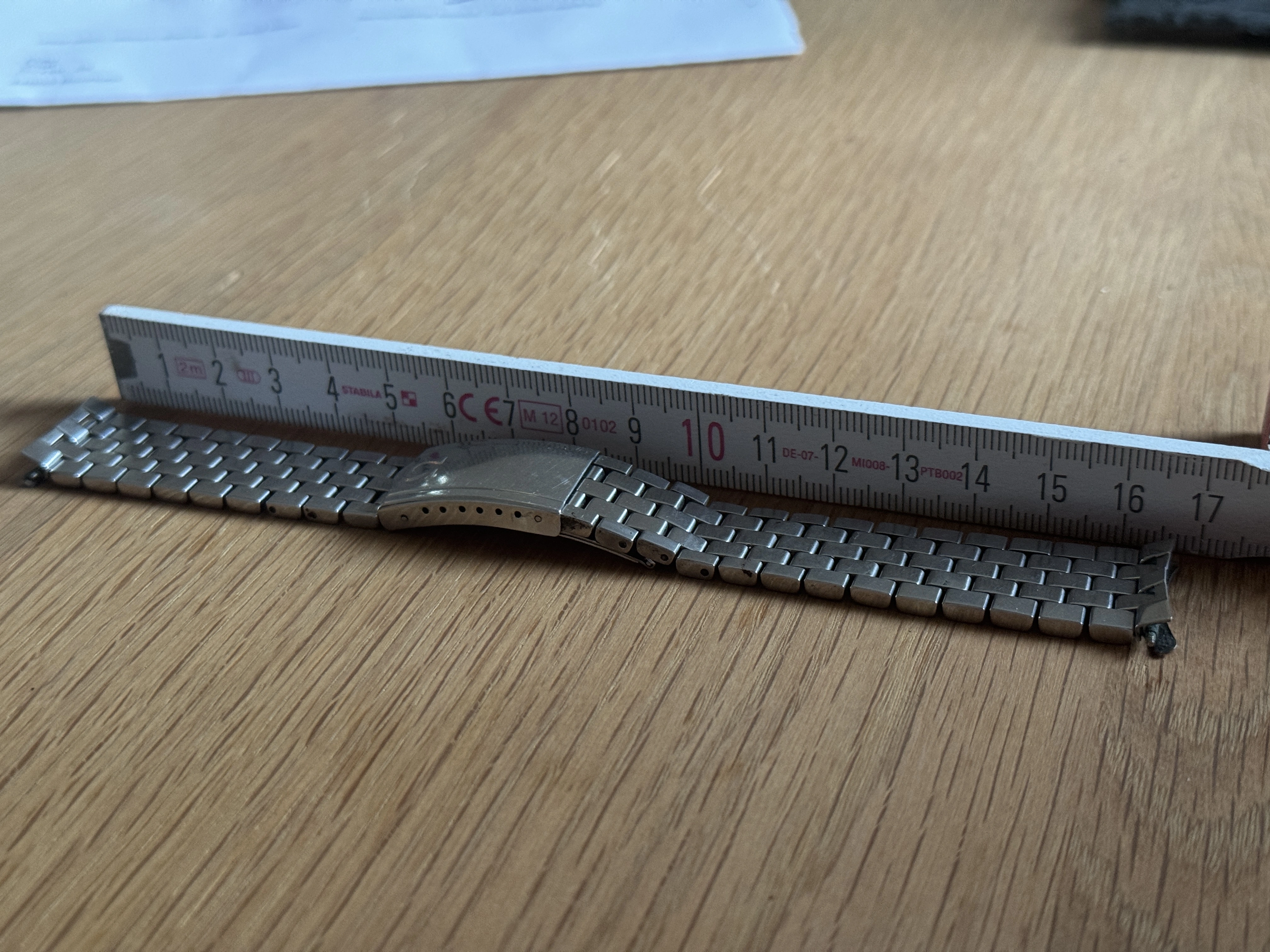 ·I have a spare 1040/518 bracelet for C-shape Connies. Full length at almost 17cm, 5 removable links in total, as it should be. Good condition, only the clasp has light dents on the sides. It’s only really noticeable when it’s open, see pictures. Closes tightly, not too visible when closed / on the wrist. Priced accordingly at 200€ plus shipping (6€ within Germany, 12€ within Europe, rest of the world to be discussed).