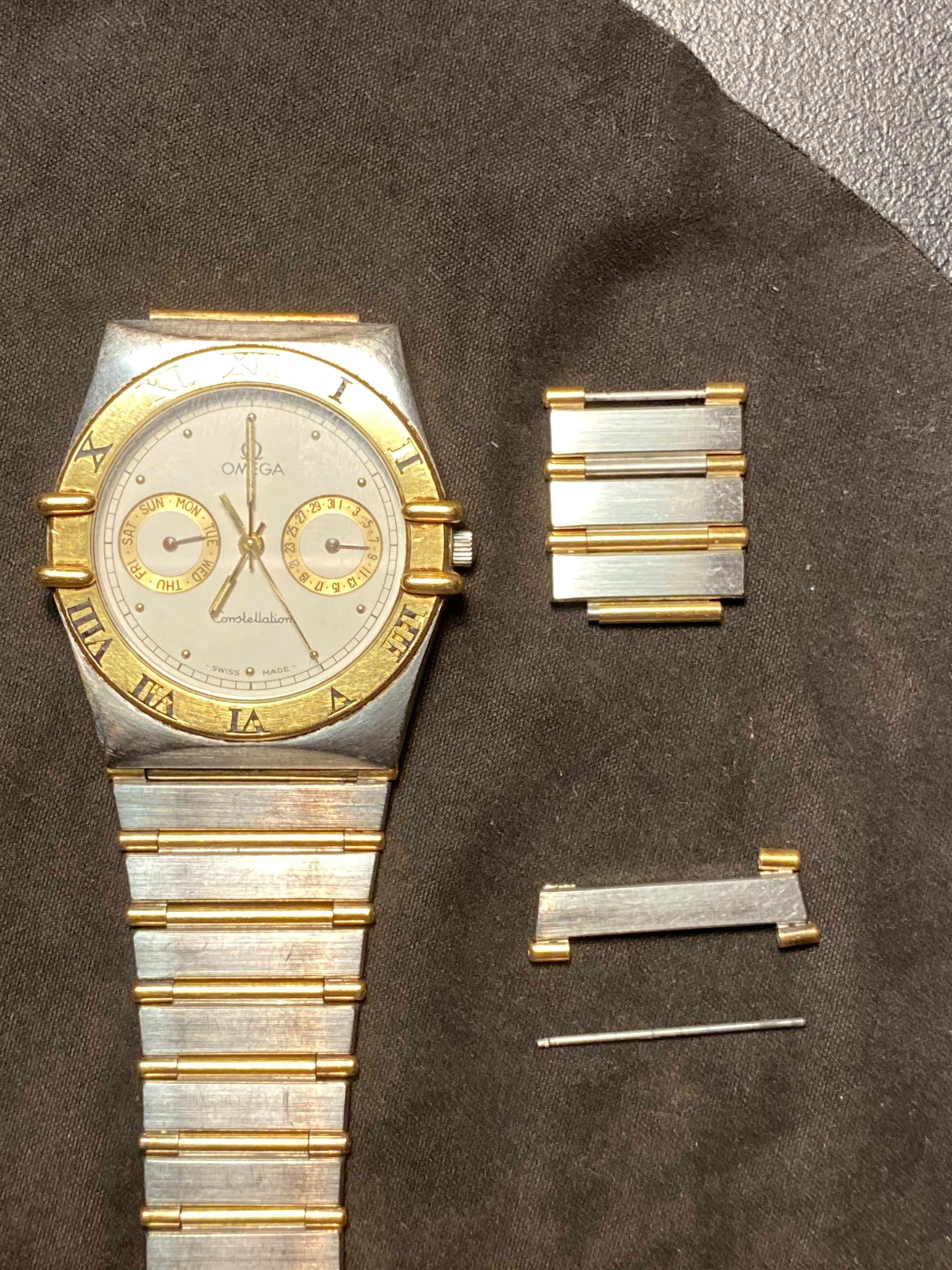 I know the quartz Constellations are not very collectible, but the value in this watch for me is memory. I'm just starting my watch collection (first is a weekday Sinn 556A) and I'd love to wear my dad's Omega as a dress watch to complete a 2 watch collection. I'd also be interested in possibly shelving the broken bracelet and putting the case on a leather strap, but not sure one for this watch case exists. Again, I'd love some guidance. Thanks for reading.