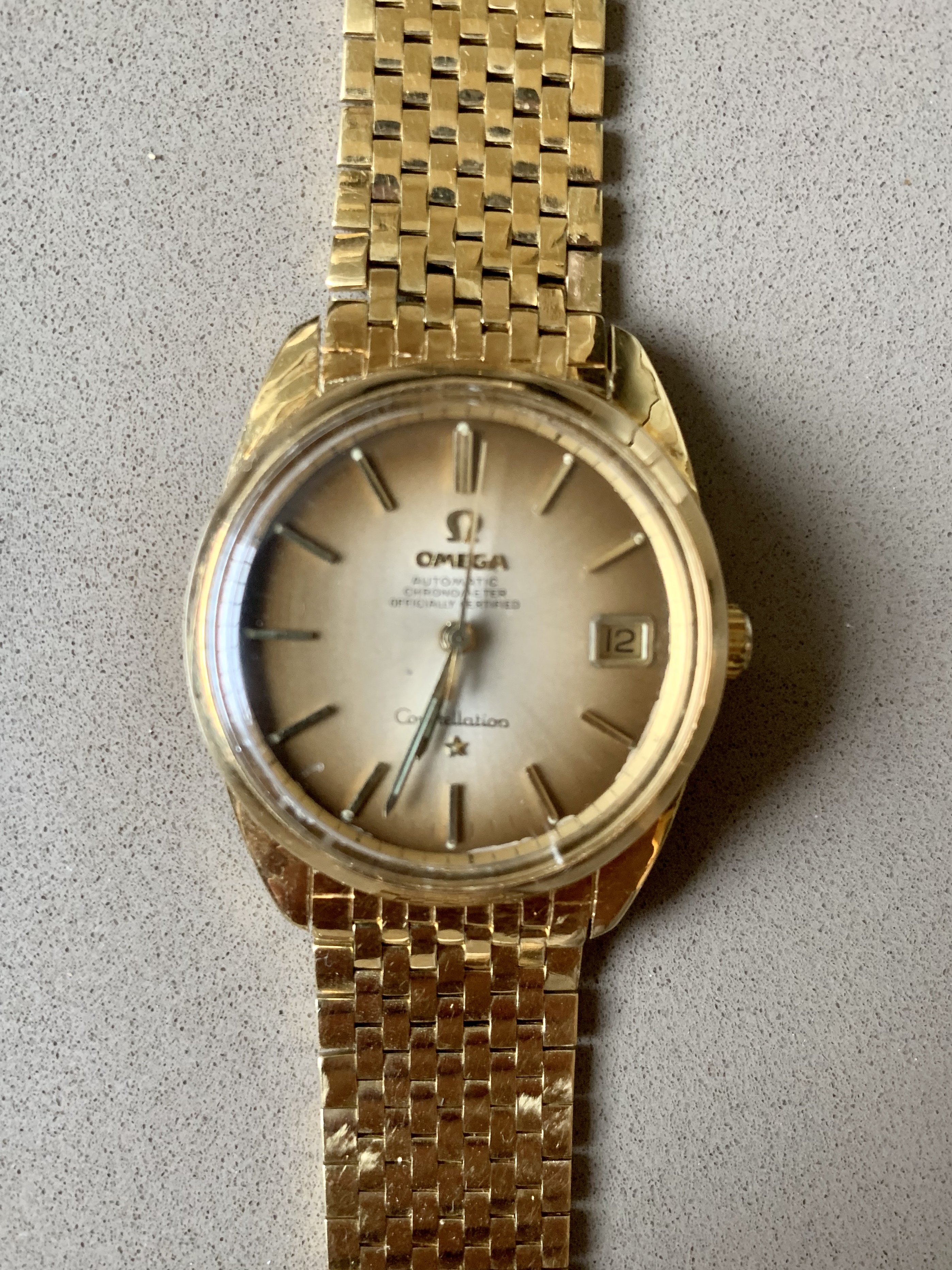 Finally, I think Dr. Frankenstein inserted a “rim-spacer” with minute marks between the dial and the crystal. I’ve never seen that on any vintage Constellation. What a mess!