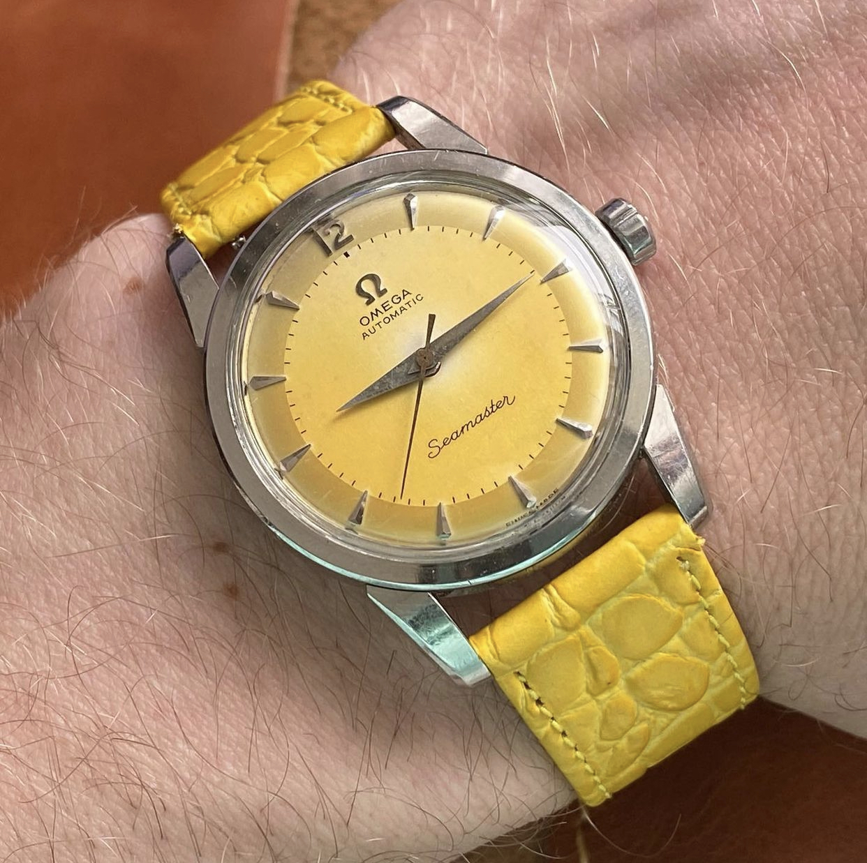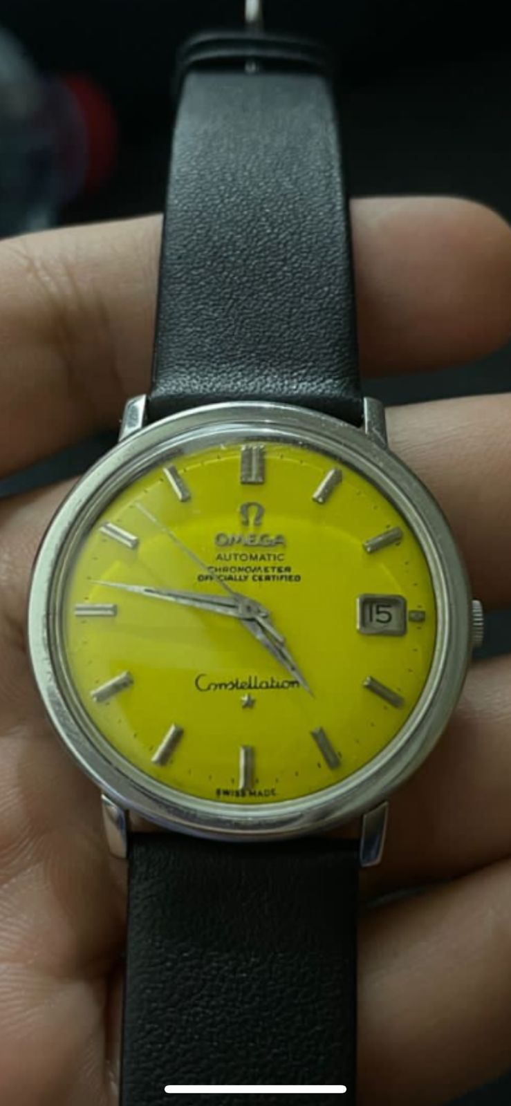 excuse my complete ignorance re. this subject but I was curious to know whether there were ever any yellow Constellations made. I have seen Seamasters in the same colour but never a Constellation. I have been offered a yellow one but there are some suspicious aspects that I wanted to ask you all before making a stupid mistake. Apologies for the photo quality. The font seems a bit odd and it is as if it is a mixture of a variety of different models. I was told that this was a 168.010 but it doesn't have TT either side of SWISS MADE. The "n" in Constellation also seems wrong.