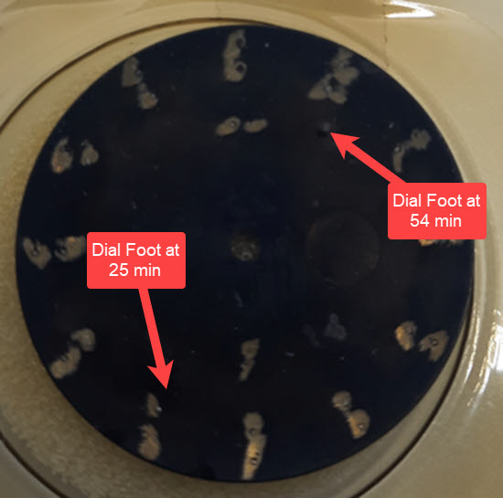 Dimensions for dial without date window (below) are as follows: Diameter 29.6mm; Feet positions correspond to the 25 minute & 54 minute marker positions. Feet are 6mm inset from the edge of the dial.