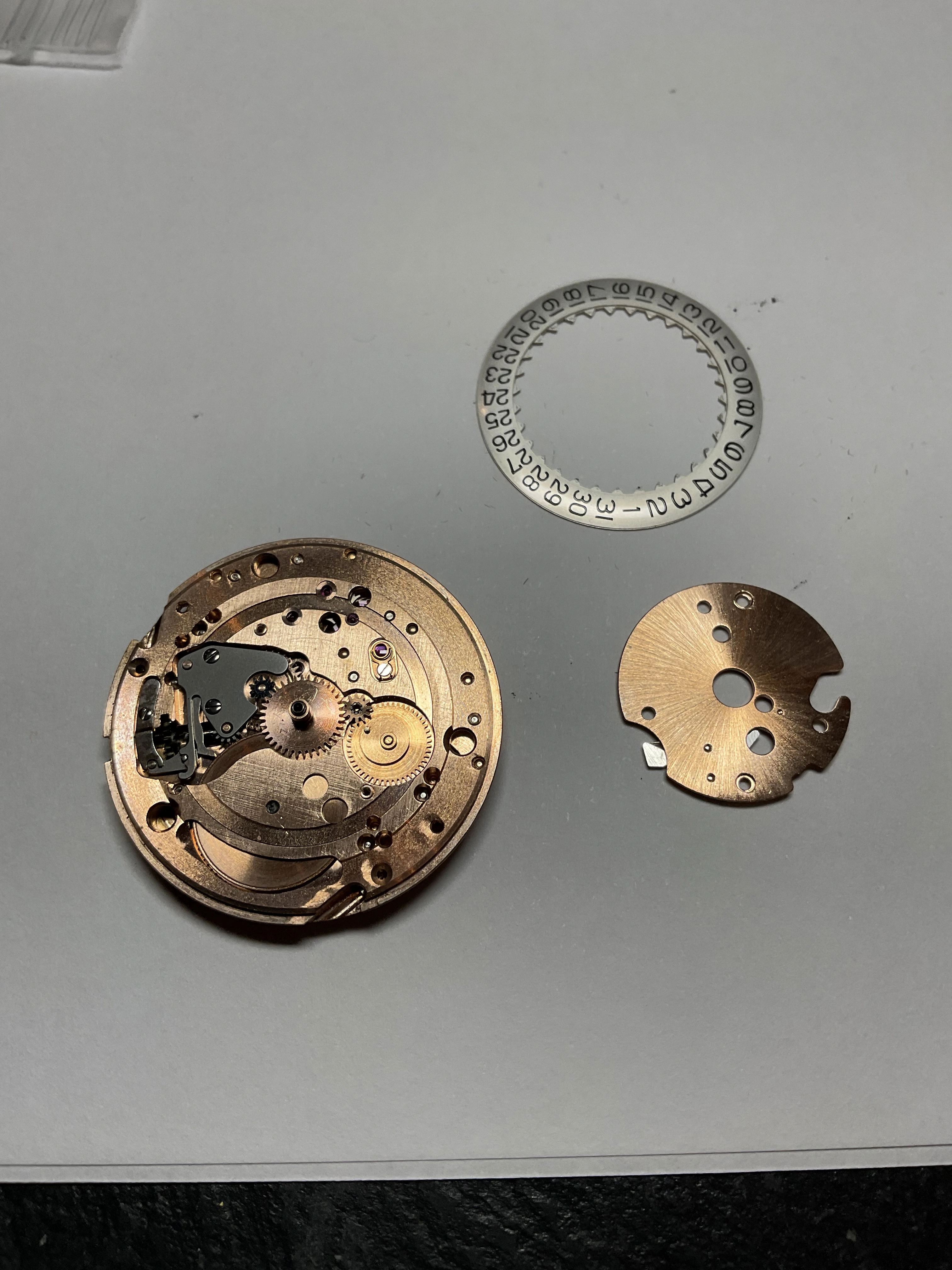 Noticed the little pressure spring the hold date wheel has slipped probably been dripping but wasn’t sure if it had any more further damage inside so I removed the cover plate and didn’t really see anything damaged or out of place so I put it back together and flicked the little leaver back on the date wheel and put all back together found a fitting bracelet and it’s been running for over 24hr date changed at perfect at 12 and is keeping good time fingers crossed it was a simple fix on this one