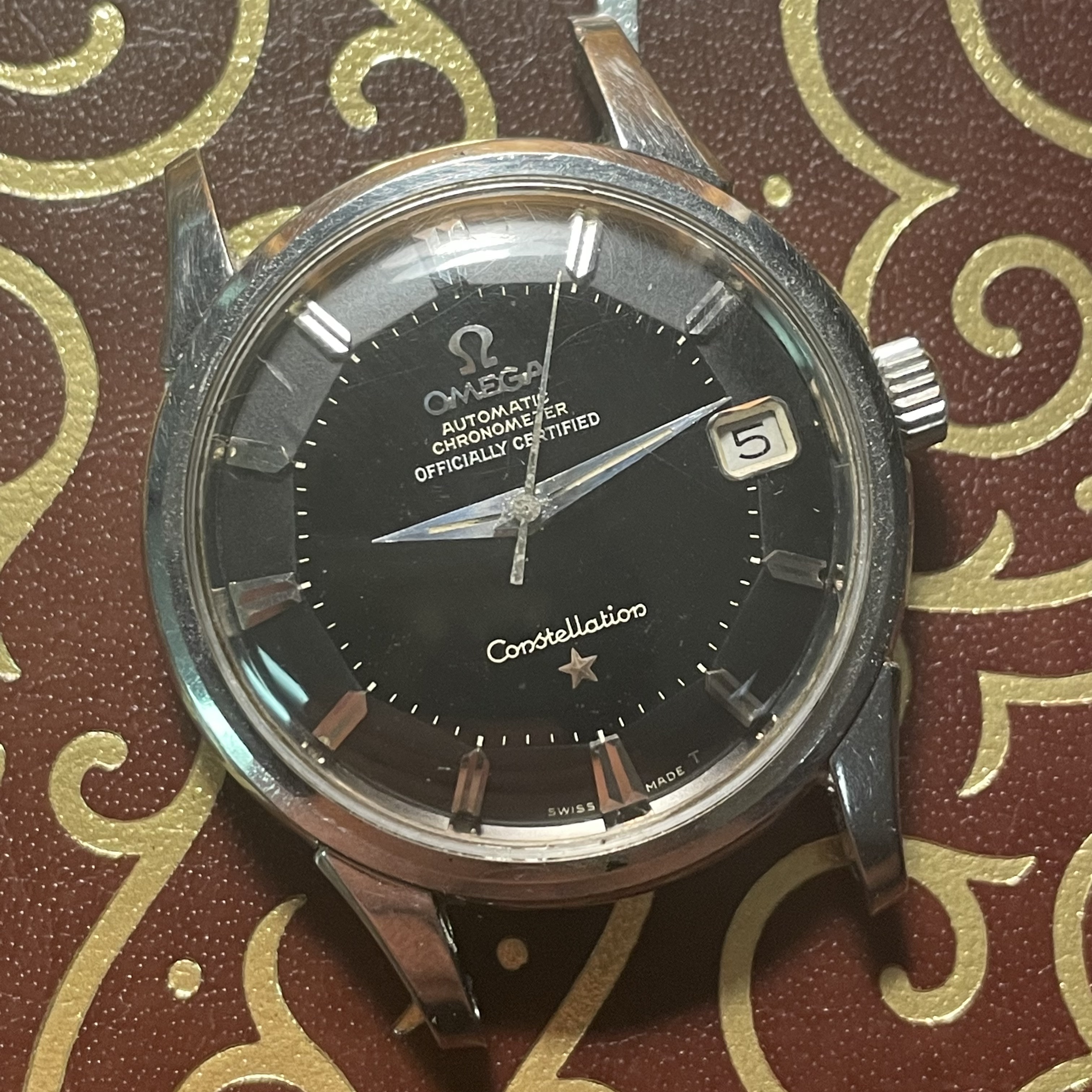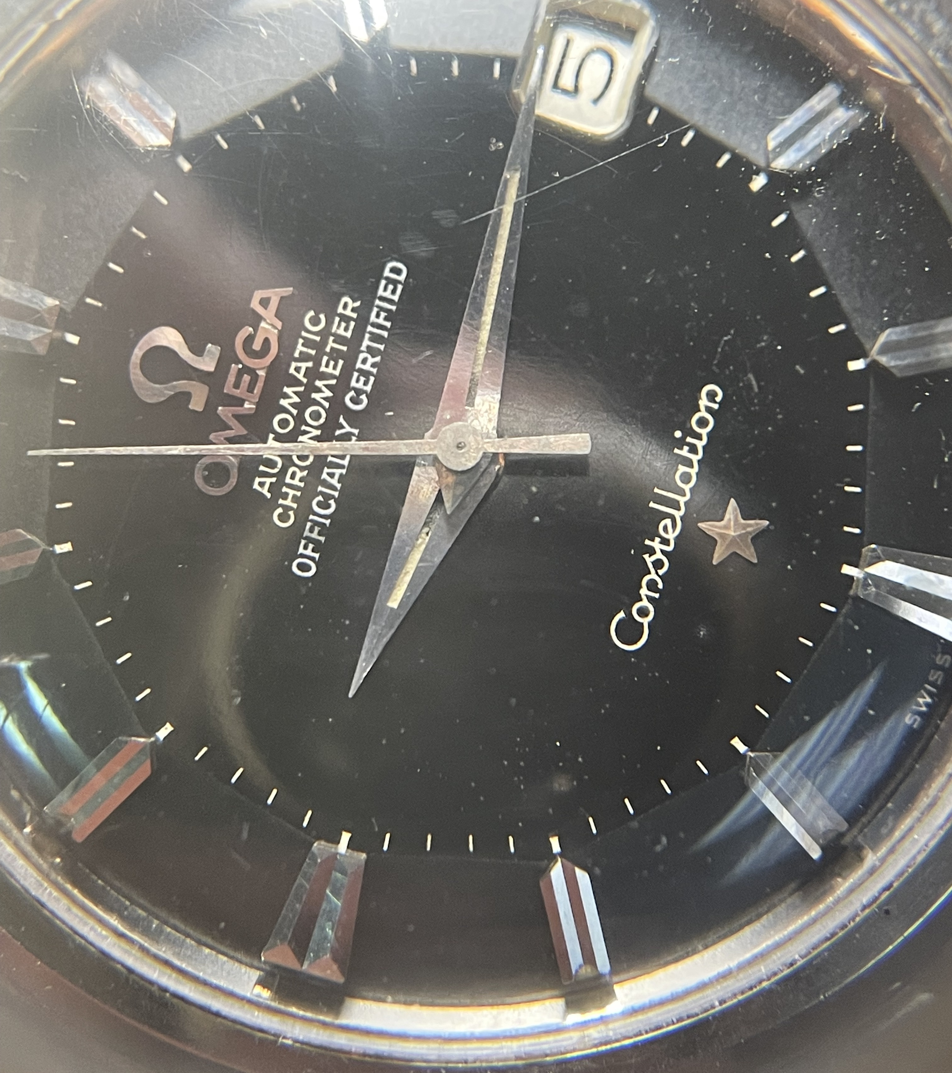 From the bad photos, I do notice a few good things. First, it looks like it has an original Omega leather strap and buckle, the hands seem to be correct, and the printing looks generally right. The crown is obviously a service crown and not original.