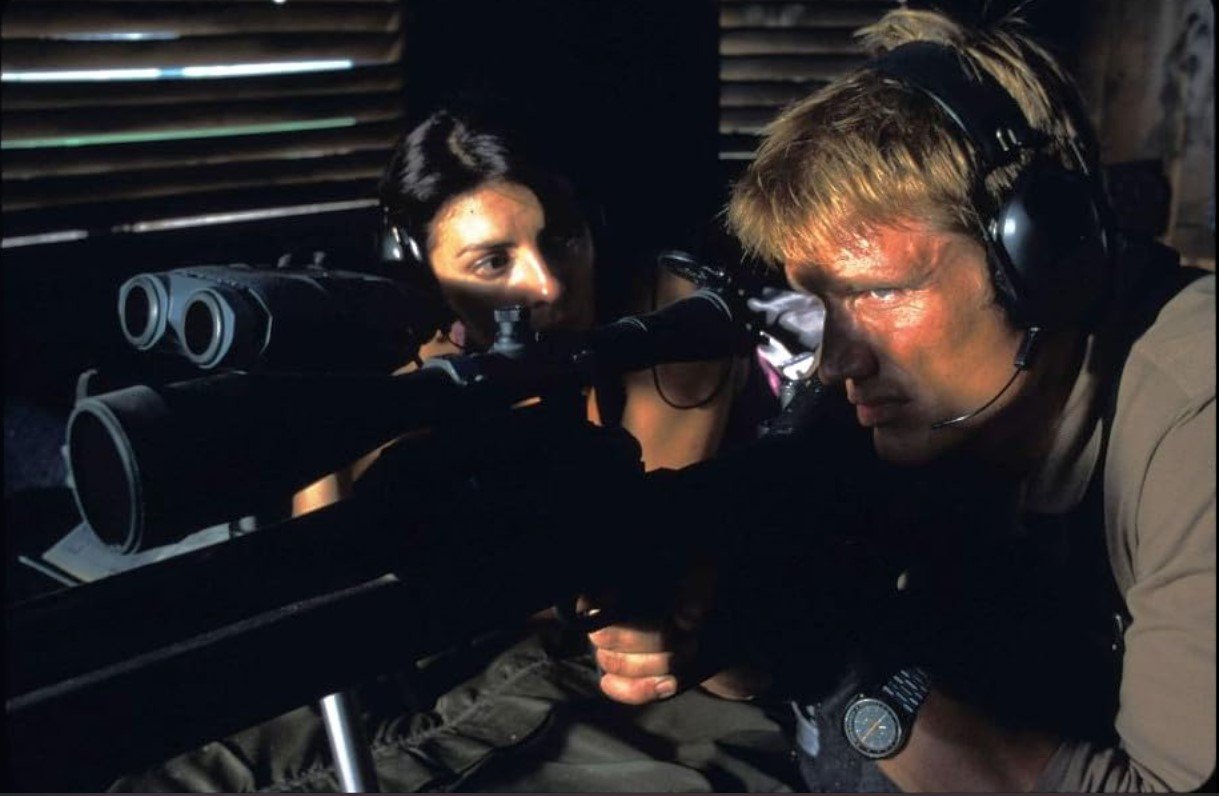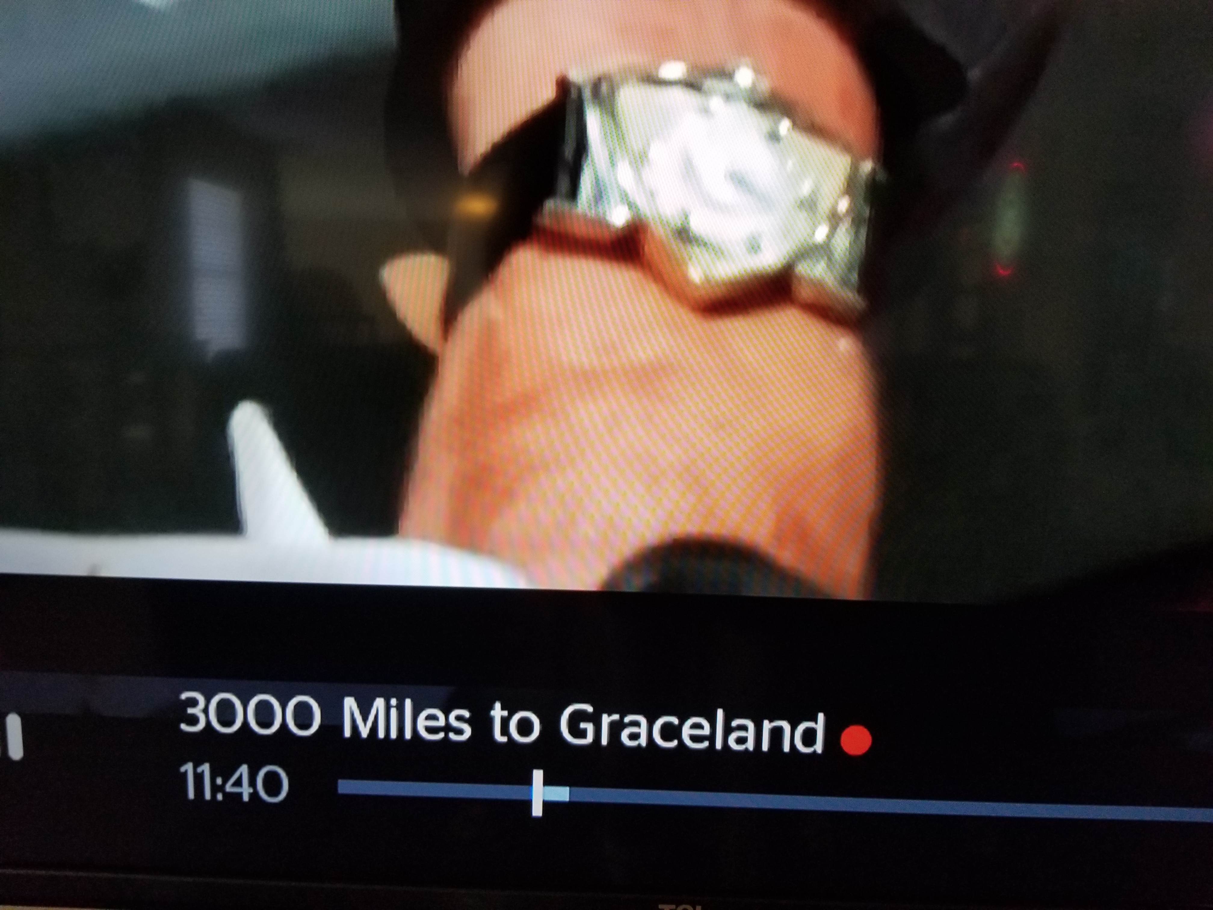 Turned on the wayback machine to an oldy but goody, and one of my favorite action films, 3000 miles to Graceland. BUT never noticed this watch before. Very hard to get a screen capture, this is the clearest image.
