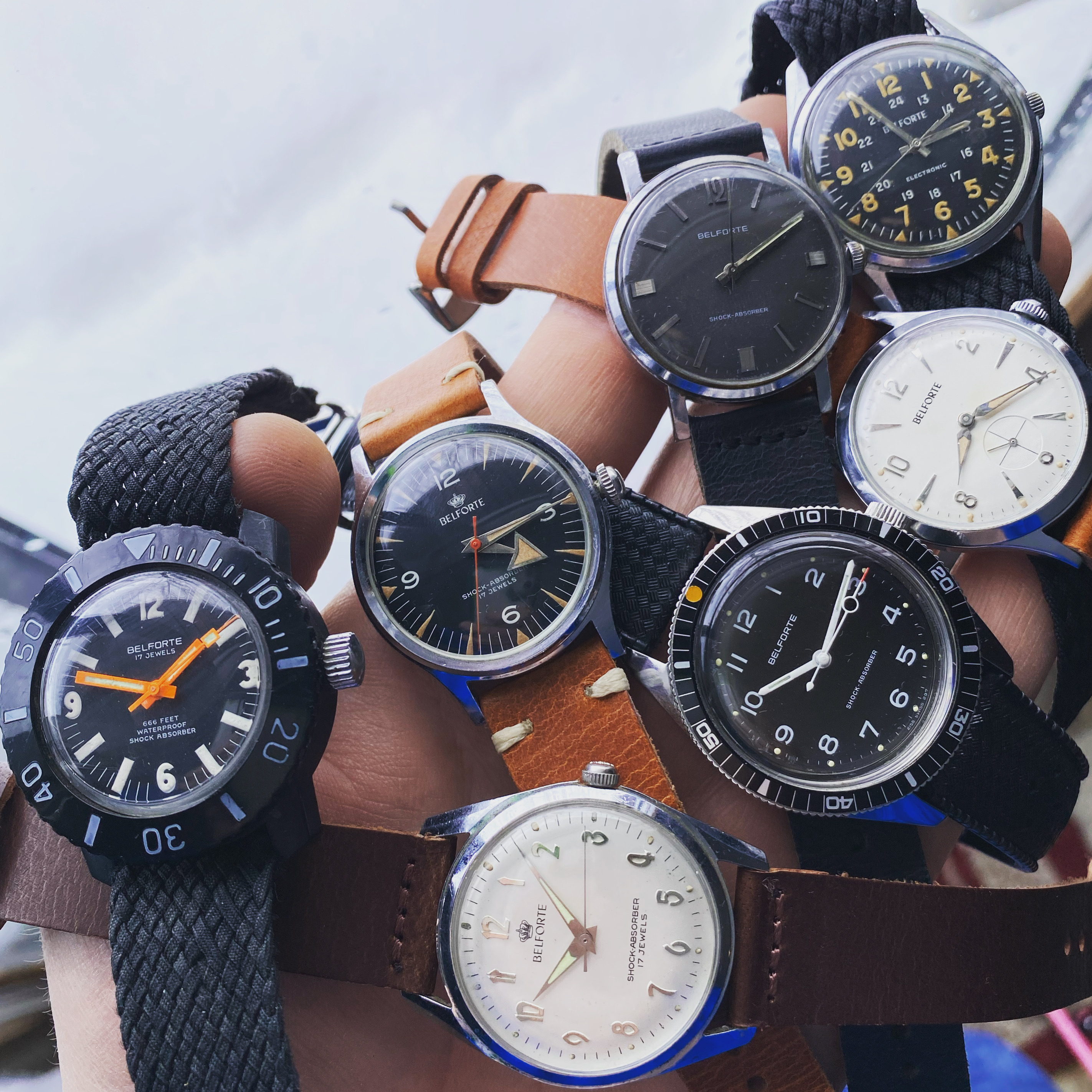 Belforte hired Jerry Lewis to help sell their affordable watches. Unfortunately, many of the watches they released were chrome plated. However, in my humble collection I have stainless as well as Delrin plastic too. Case material is just one of the varieties Belforte offers. Dials, hands, markers, and the gambit of dress pieces to field watches.