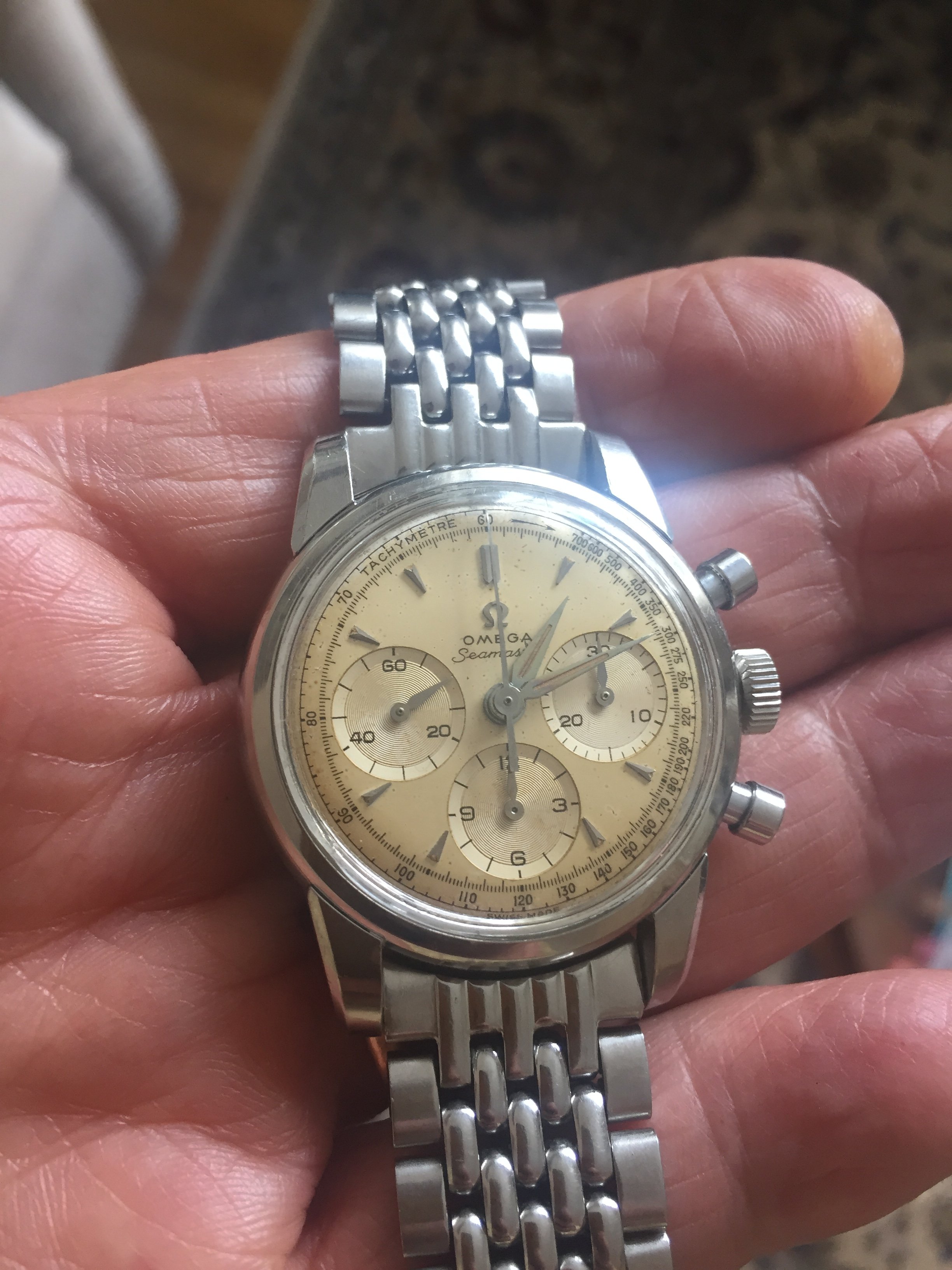 ·Hi, folks. I’m very happy to have snagged an Omega Seamaster chronograph today. It’s calibre 321 and the serial number dates it to circa 1958. It’s a watch I’ve been looking for quite a while. Not easy to find in good condition at a reasonable price.