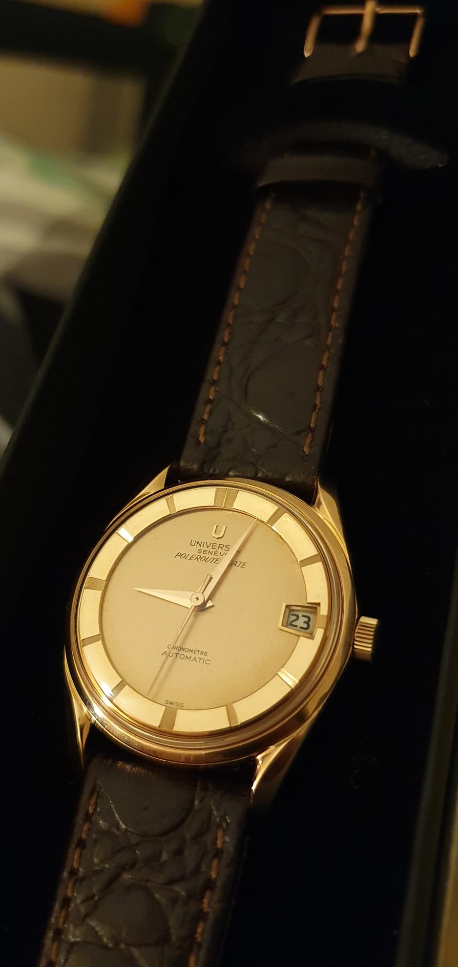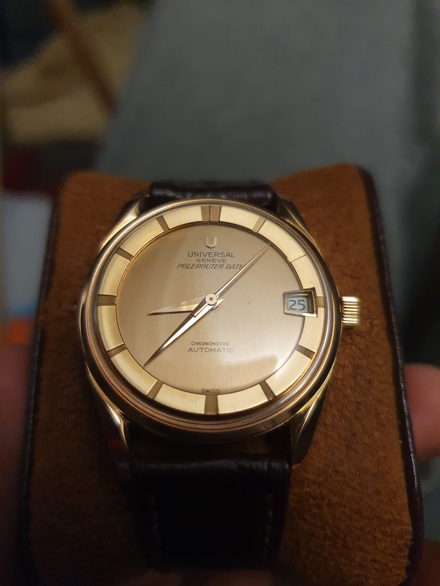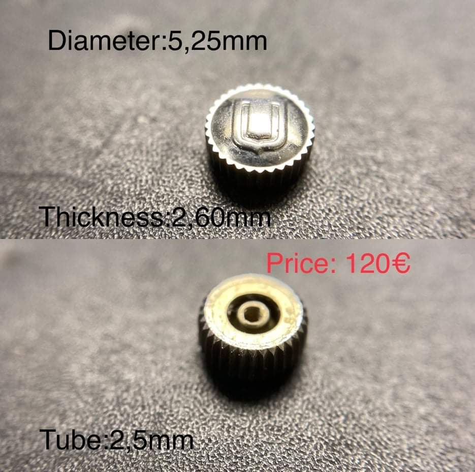 I aquired a beautiful Polerouter Date Chronomètre in pink gold ( ref.104601) in 2020 and I am still looking for the genuine crown for it. I know that the original crown must have a "U Shield" logo on it and should be rose/pink gold plated. Though I am not familiar with the measurements of the original crown. What are the correct measurements? The non genuine crown is 2mm thick and has a diameter of 4mm.