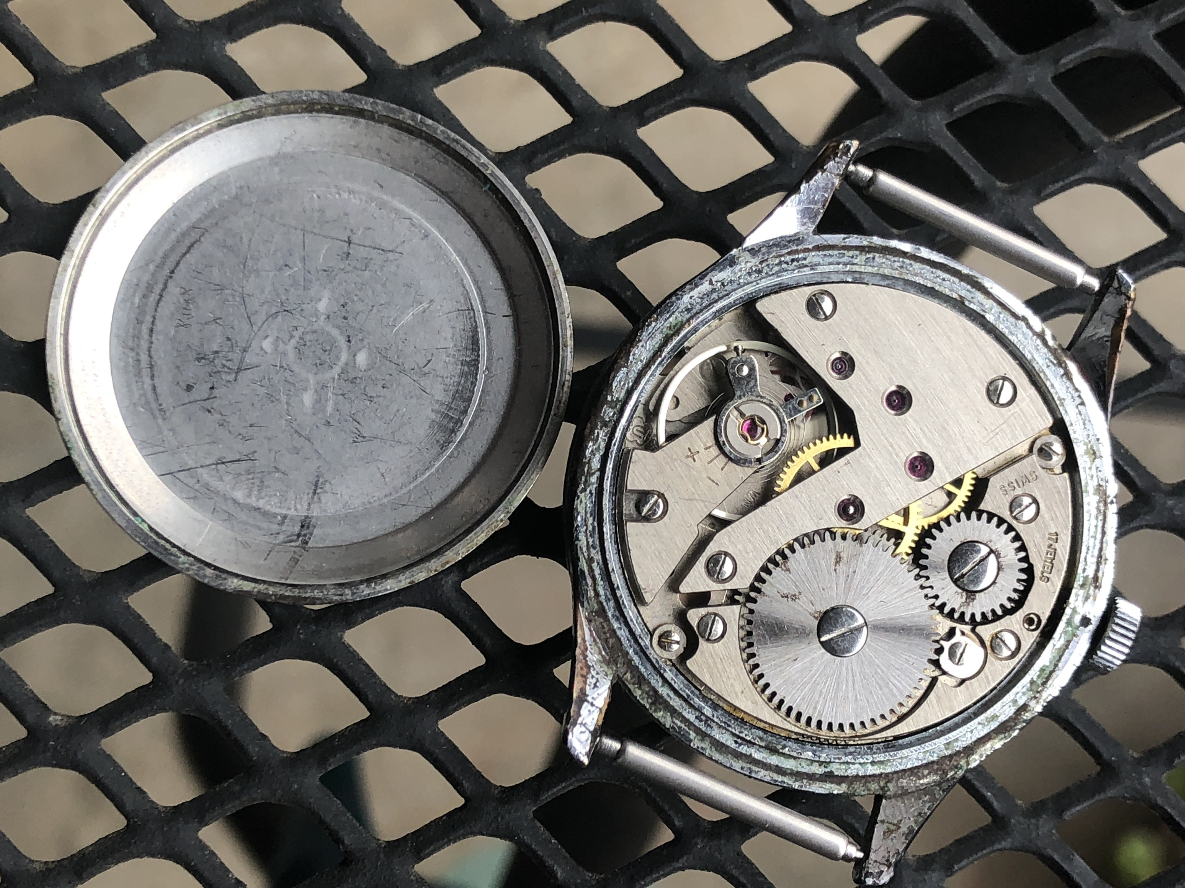 Movement - Reasonably clean condition. Keeps time and is running a bit fast. The one issue I have noticed is that sometimes, if you wind the watch immediately after setting the time, the minute hand will jump backwards a 3 - 5 minutes from where it was set before the winding mechanism engages. I only noticed this recently, as I usually give the watch a full wind before setting the time.