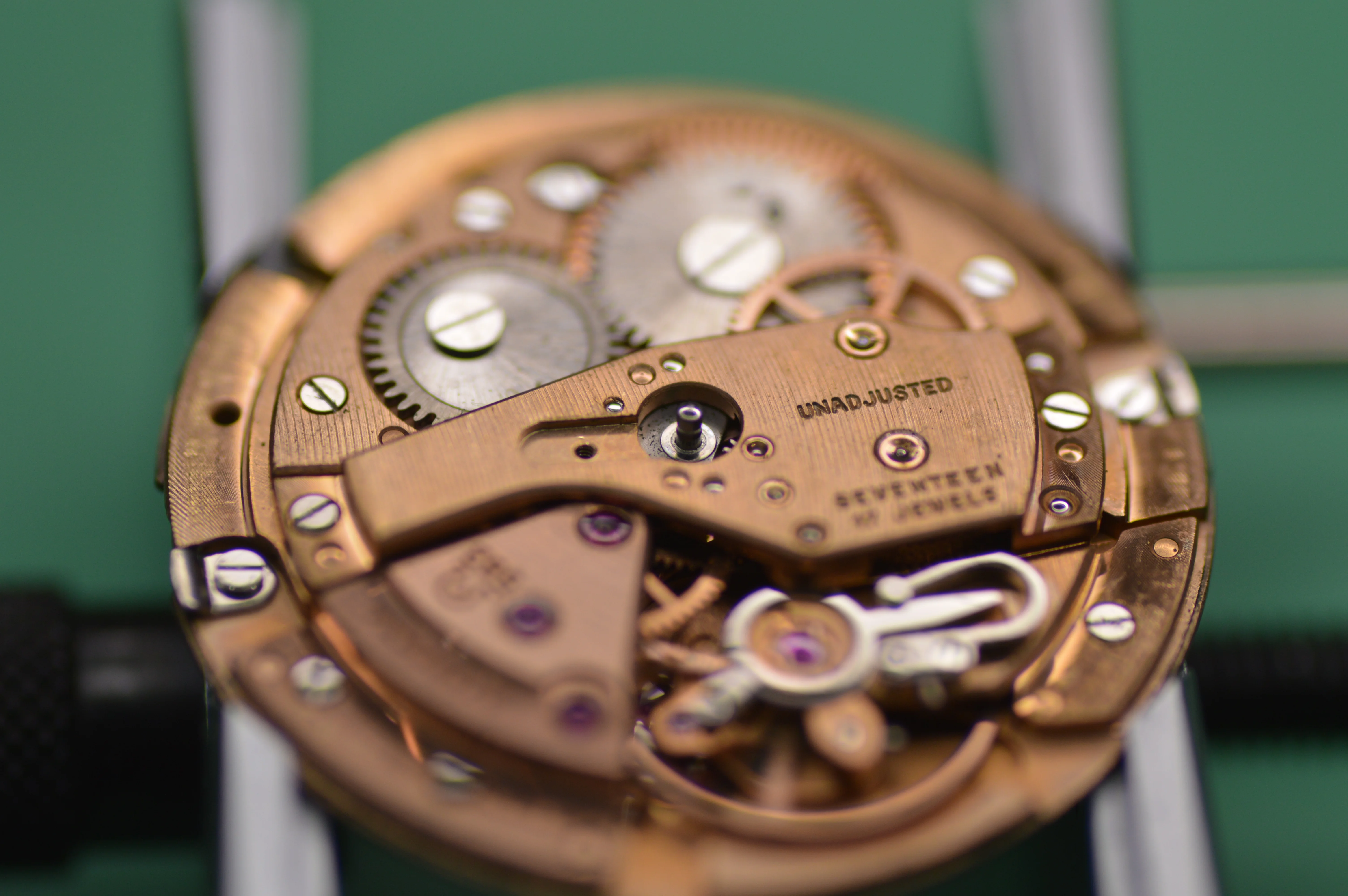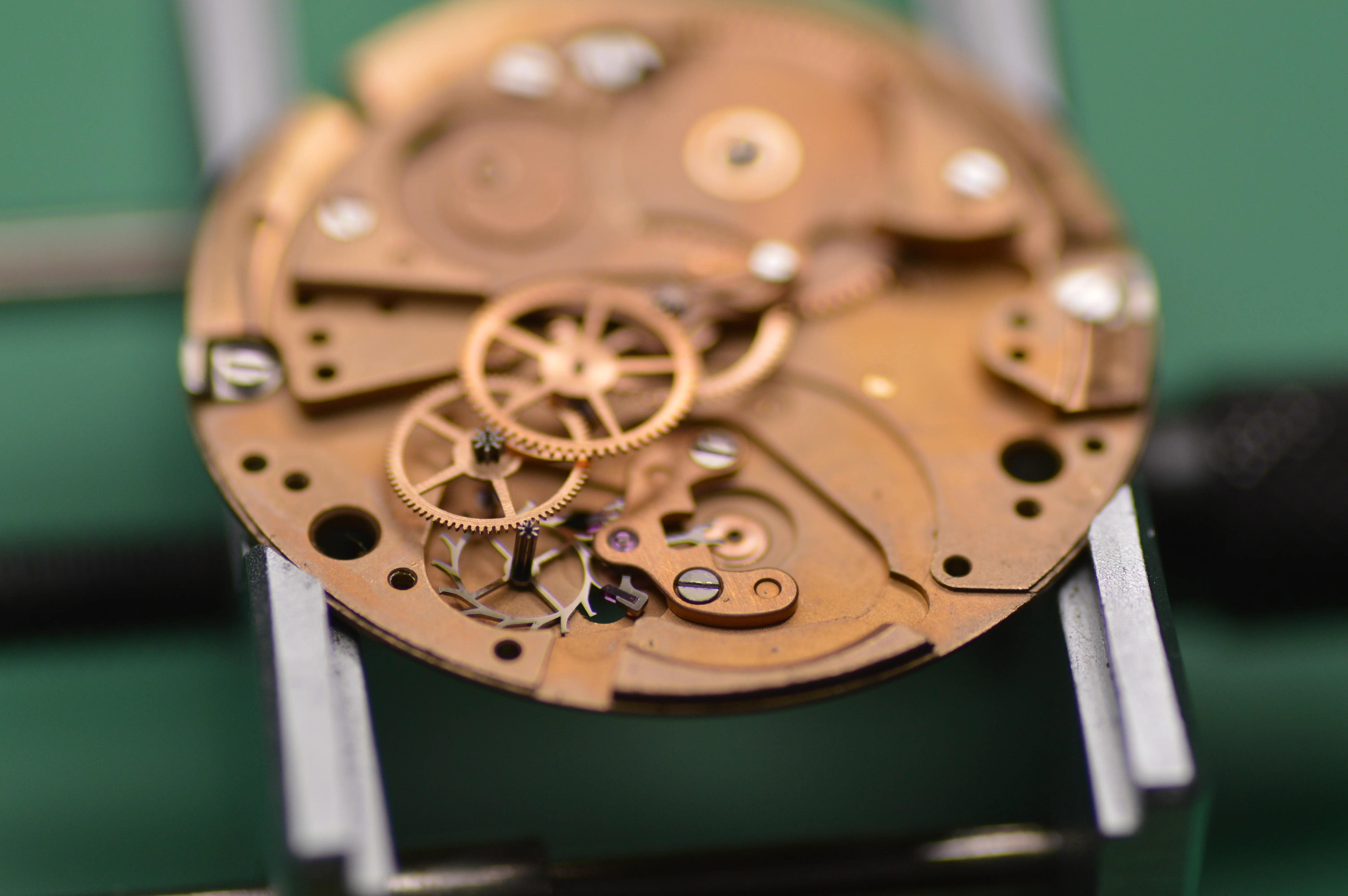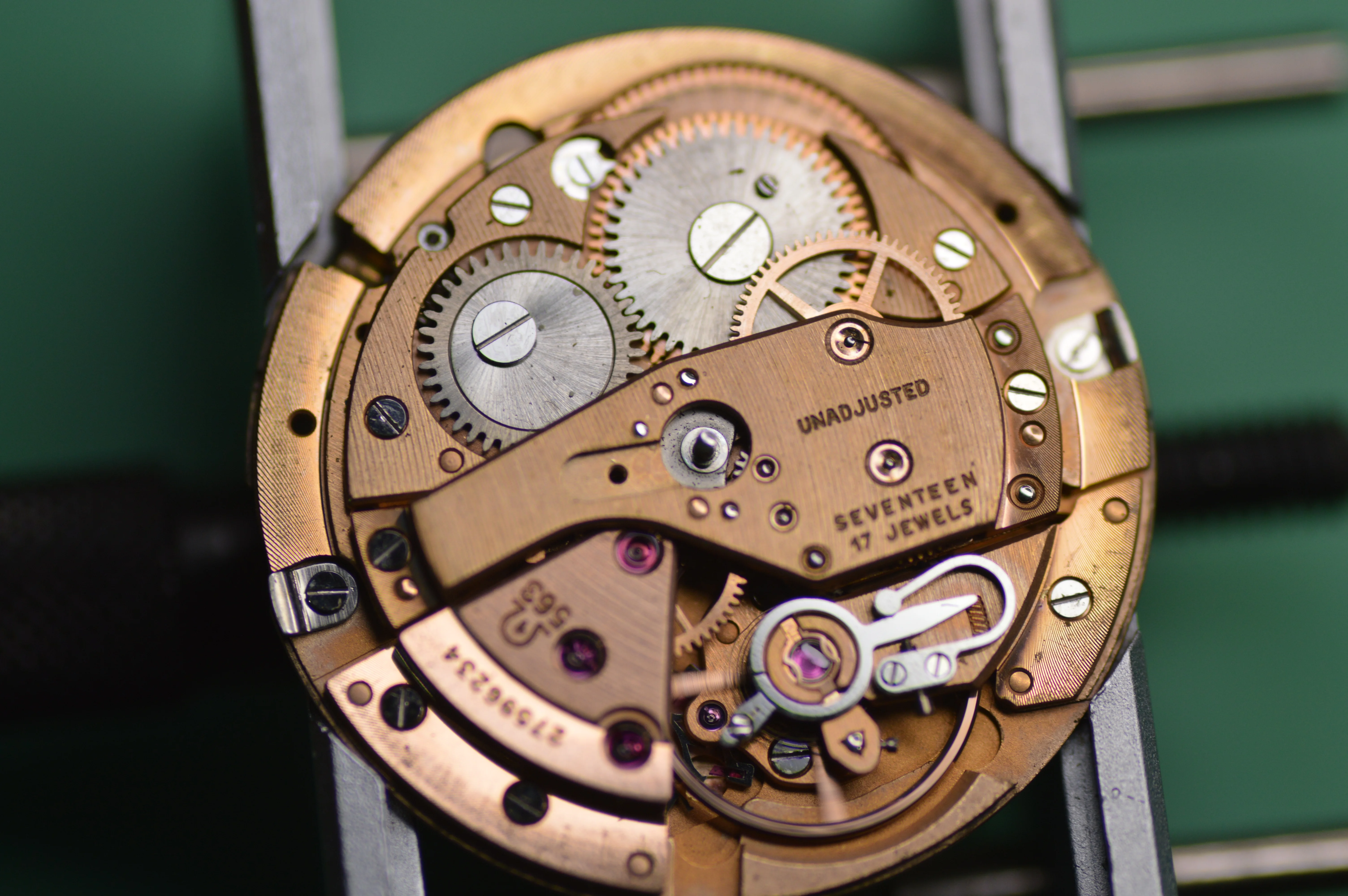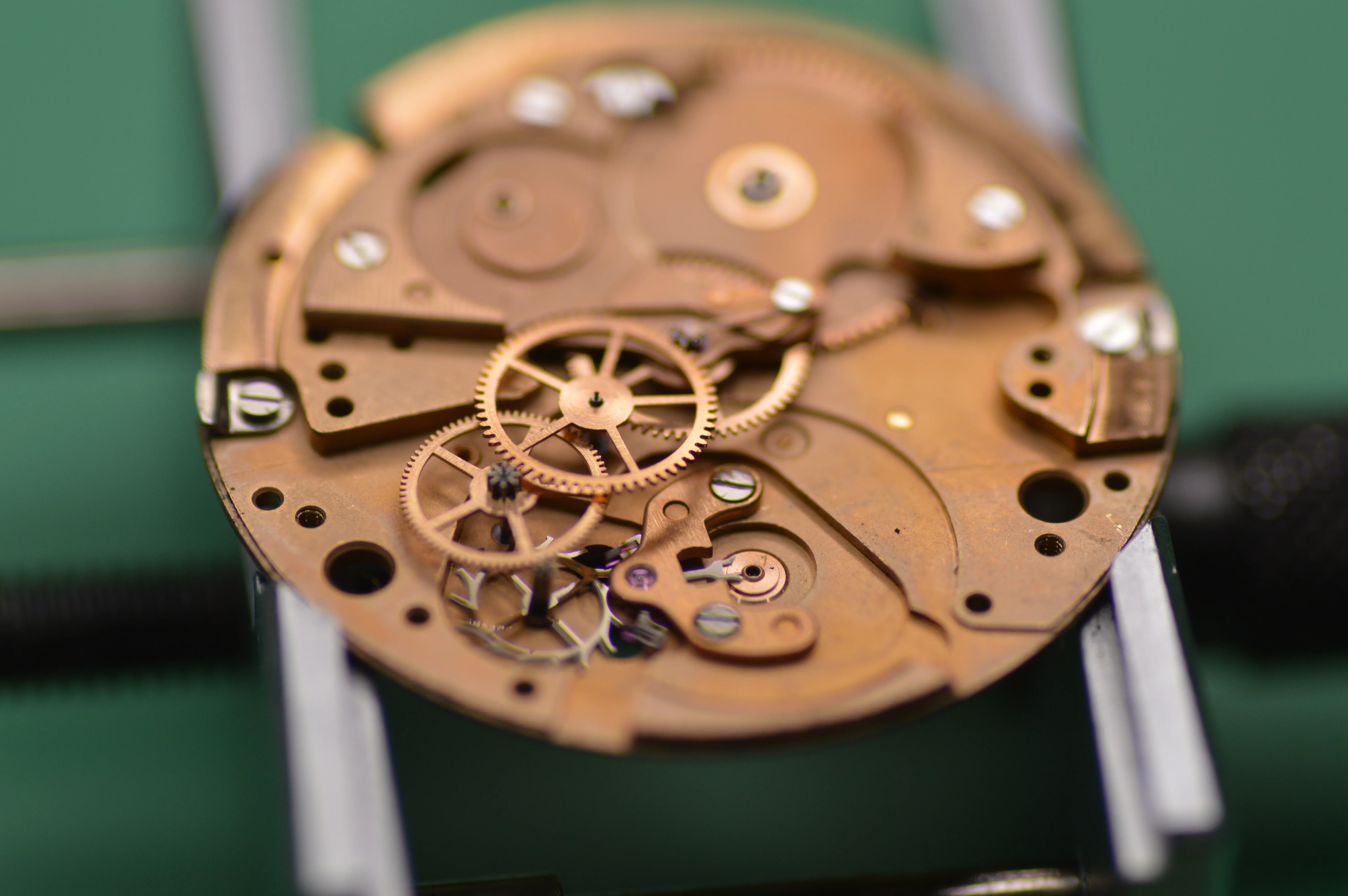 INSIDE was pretty dirty (it kept leaving black crap on my bench), but otherwise in great shape! Overall a very beautiful movement, and a great opportunity to give some watch photography a chance 😀 I picked up a Nikon 3200 with a macro setup (this is just a Tameron 90mm macro lens), so here it is!