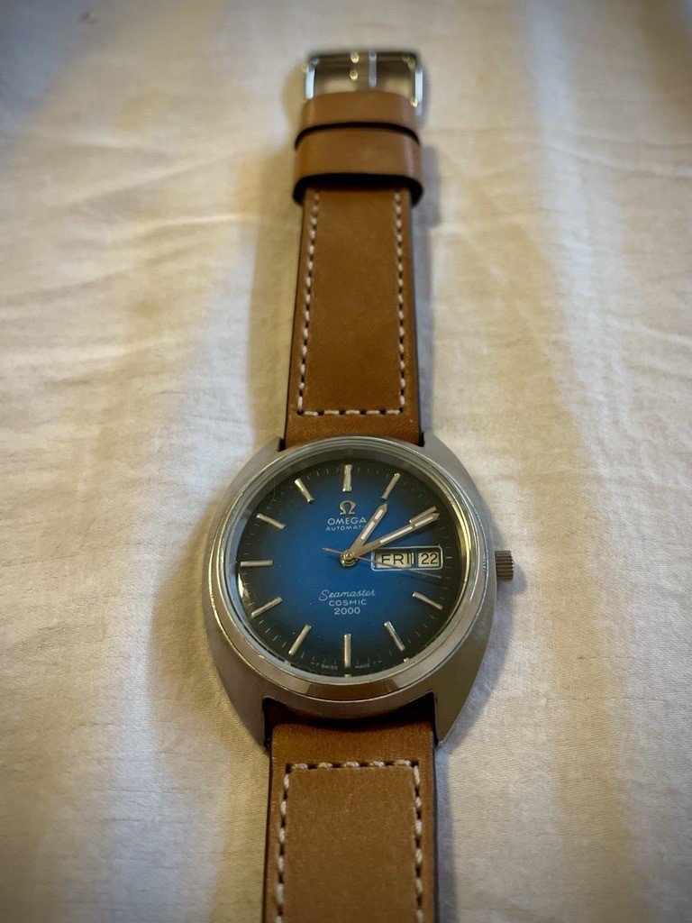 I’m not sure about the gradient blue dial: the gradient seems too extreme between dark and light blue. I have a similar example of this reference, but one which I’m sure is all original. Might be a useful comparison: