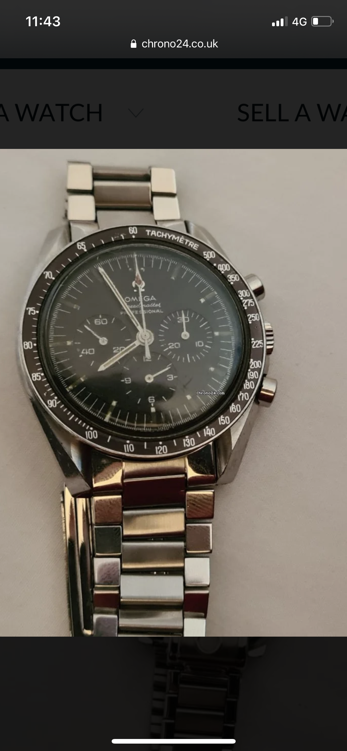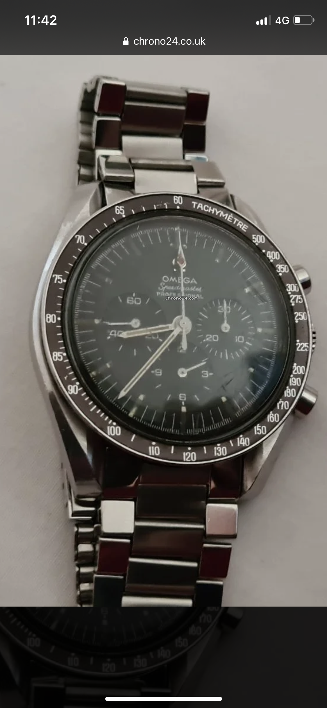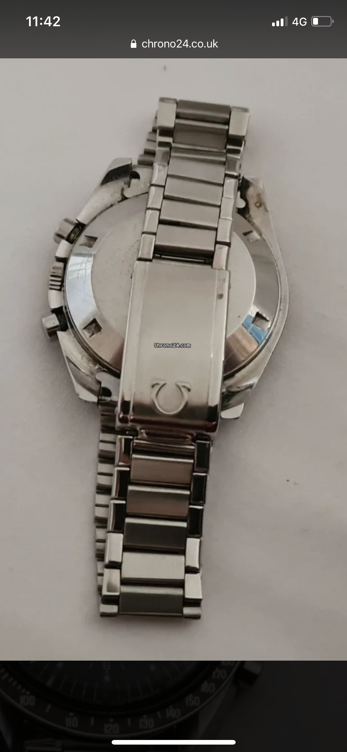 On to the bad parts the chrono hand has some discolouration to it that looks worryingly like rust that paired with the lume turning black. From what I have read is possibly due to moisture ingress certainly worries me. I have also noticed that the 12hr chrono hand is at the 2oclock position in all the pictures when the rest are set to 0. I have read that it’s possible that the hand can slip and just needs re setting but with the possible water ingress and lack of movement pictures I am worried that it could be more serious than that. I have asked for more pictures and some of the movement but as of yet have had none from the seller. It is advertised at £7500 which I think is a fairly competitive price if all was well. But as a novice speedmaster enthusiast I would like to utilise the collective knowledge of this forum before I invest anymore time chasing the seller and more importantly money in to something that could cause a lot of headaches down the line.