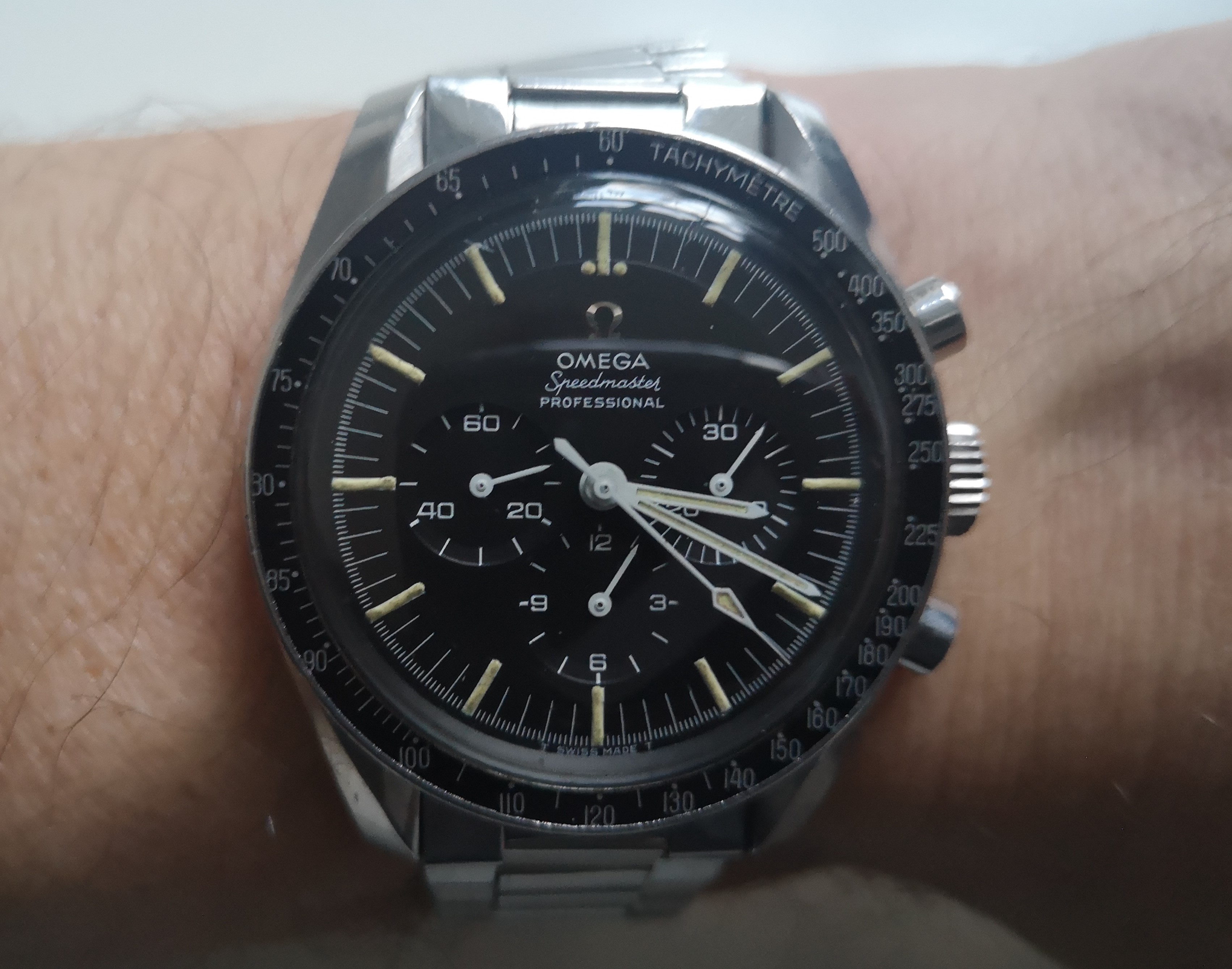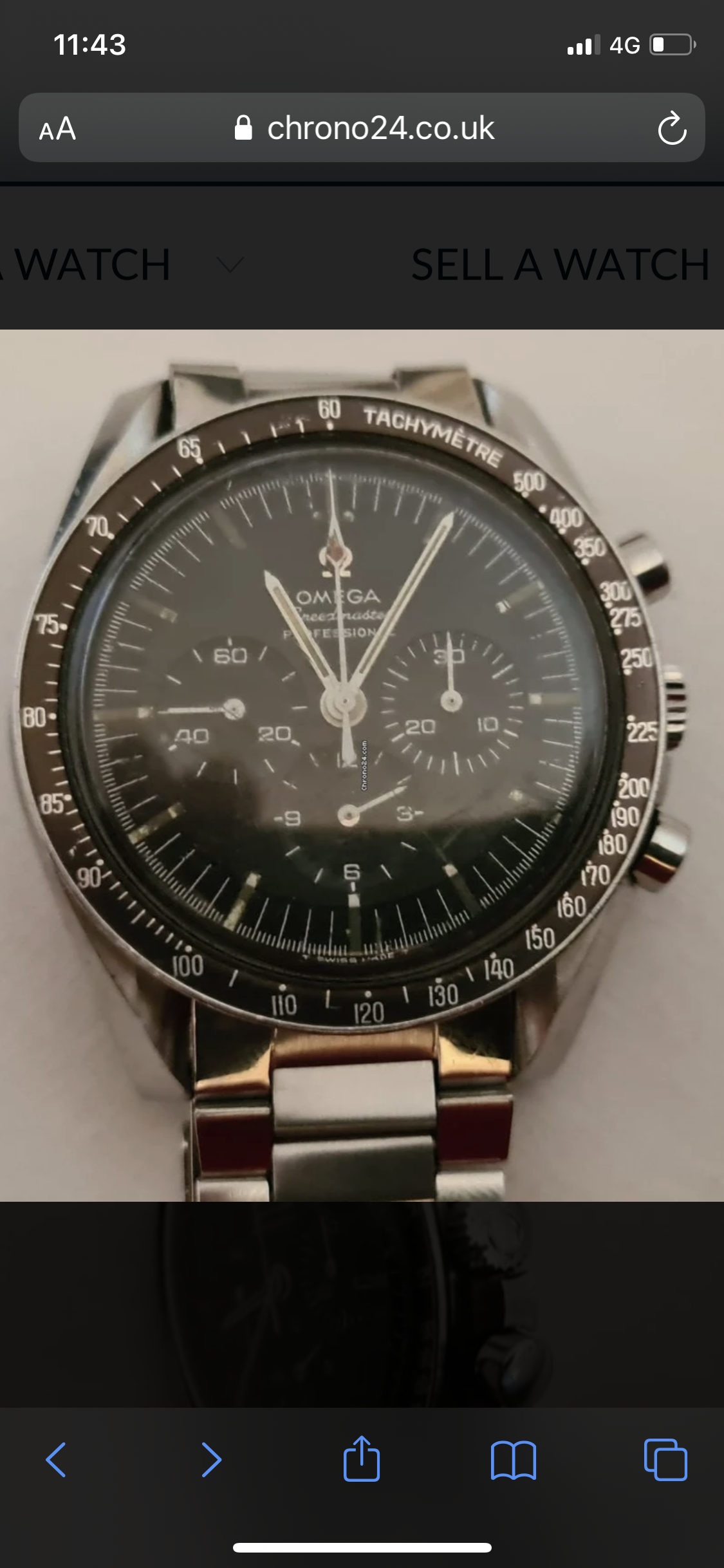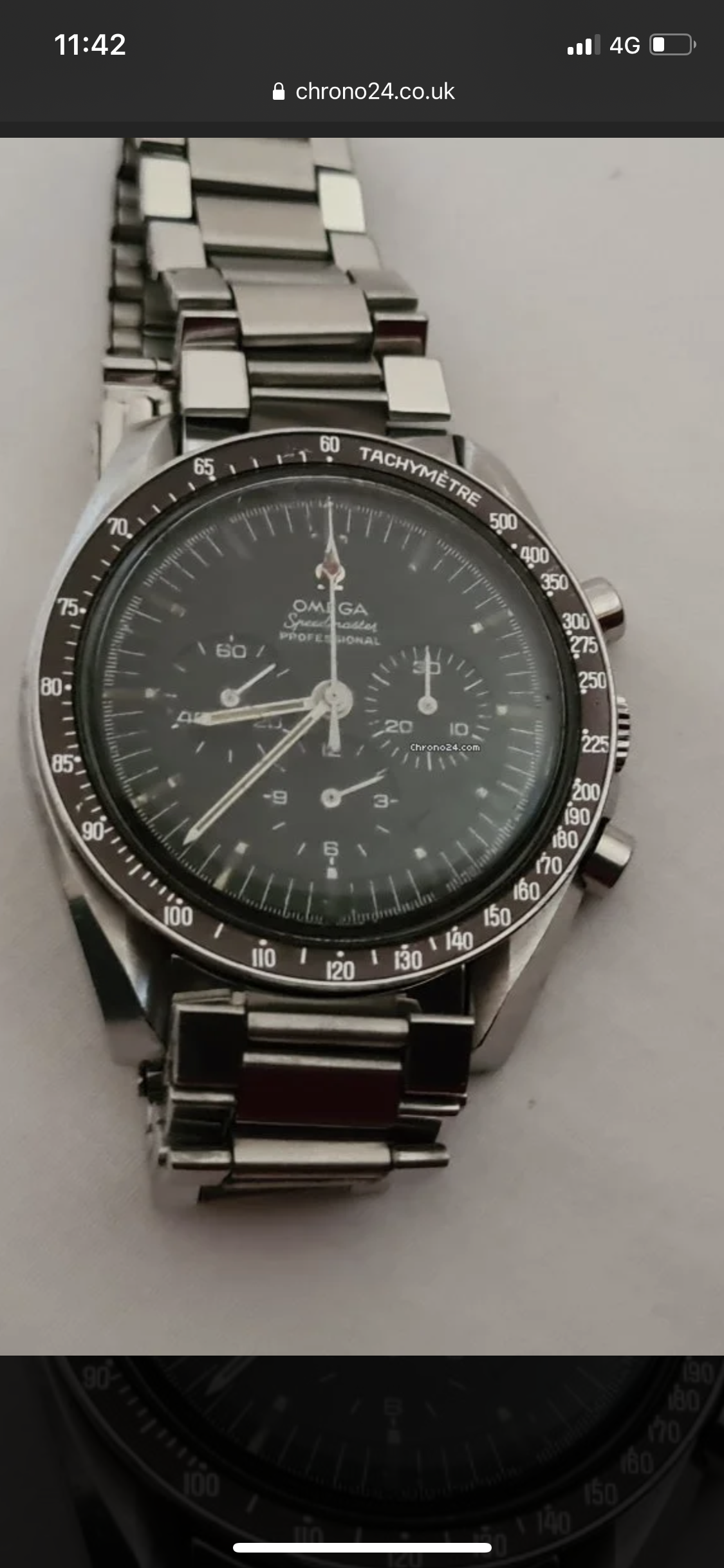 On to the bad parts the chrono hand has some discolouration to it that looks worryingly like rust that paired with the lume turning black. From what I have read is possibly due to moisture ingress certainly worries me. I have also noticed that the 12hr chrono hand is at the 2oclock position in all the pictures when the rest are set to 0. I have read that it’s possible that the hand can slip and just needs re setting but with the possible water ingress and lack of movement pictures I am worried that it could be more serious than that. I have asked for more pictures and some of the movement but as of yet have had none from the seller. It is advertised at £7500 which I think is a fairly competitive price if all was well. But as a novice speedmaster enthusiast I would like to utilise the collective knowledge of this forum before I invest anymore time chasing the seller and more importantly money in to something that could cause a lot of headaches down the line.