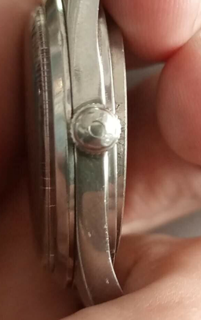 ·I’ve been waiting for an early Railmaster in my budget range and this is looking like a possible. The dial is not great, and I’d need to decide about having it re-lumed at some point. The hands look correct to me although again needing to be re-lumed. The crystal needs replacing by the look of it from the side view, I think the crown might be wrong, there’s a screw missing and there’s something wrong with the regulator - either broken or something because the indicator looks wrong and is pointing the wrong way. It’s described as keeping good time.