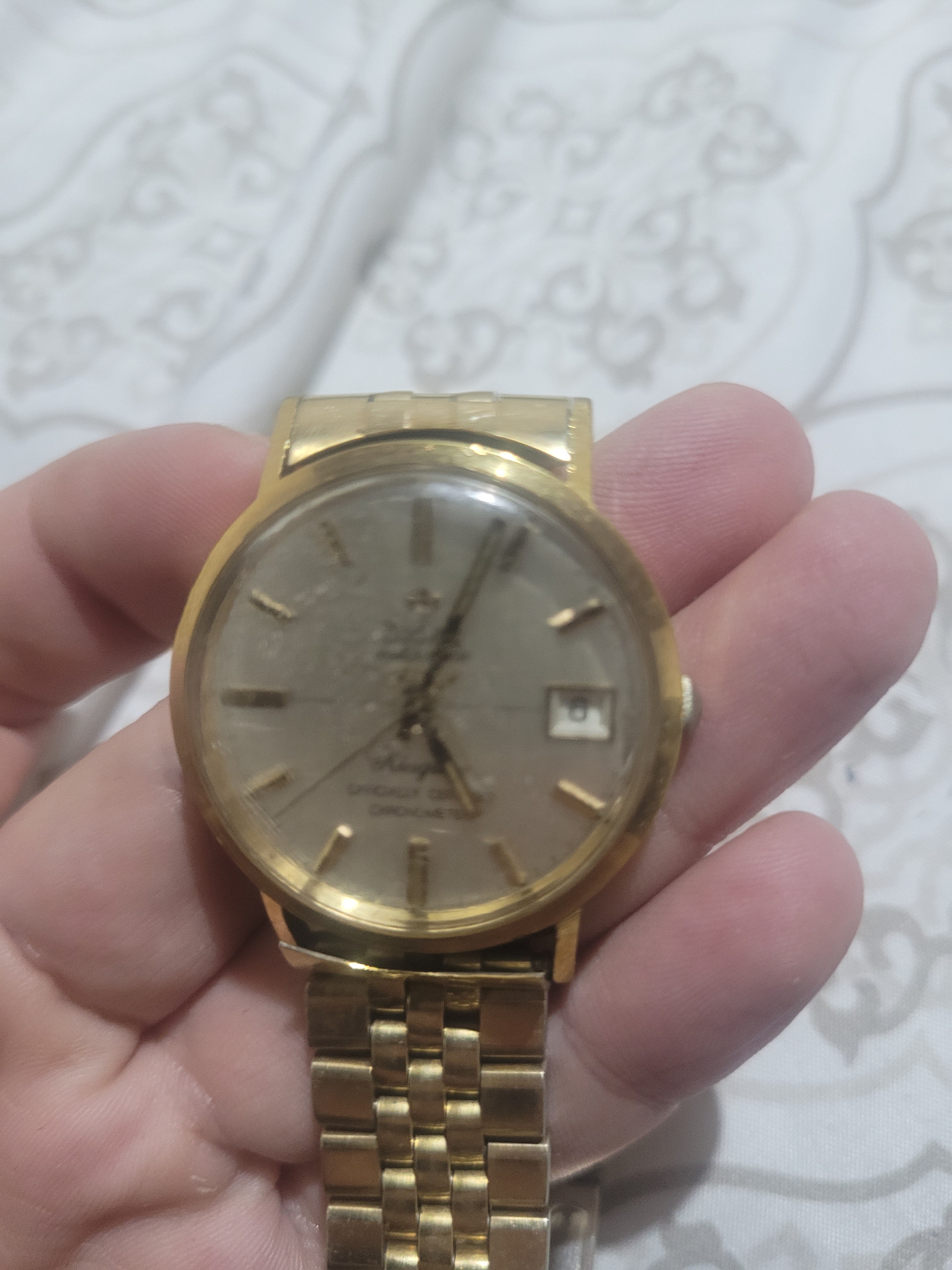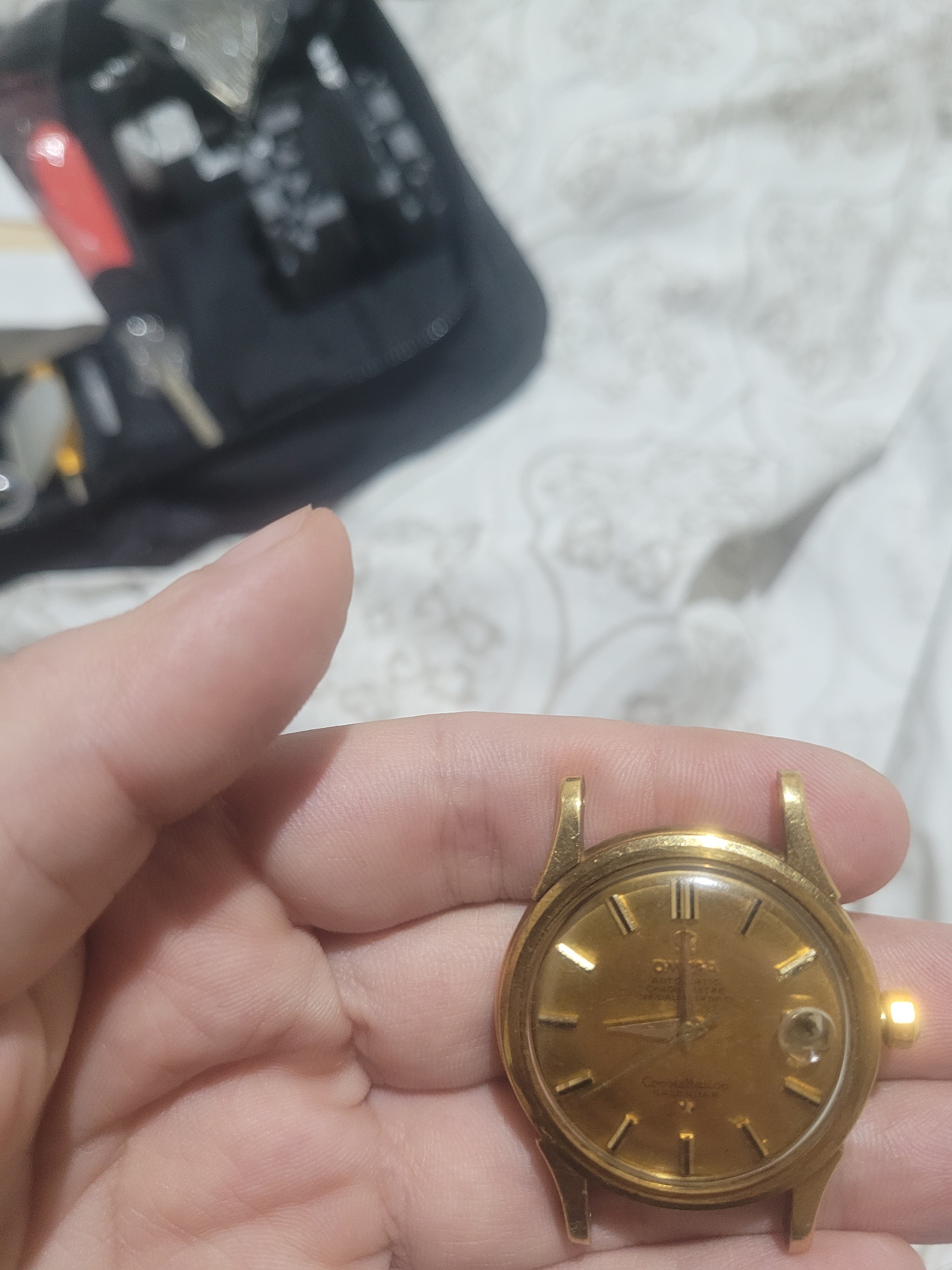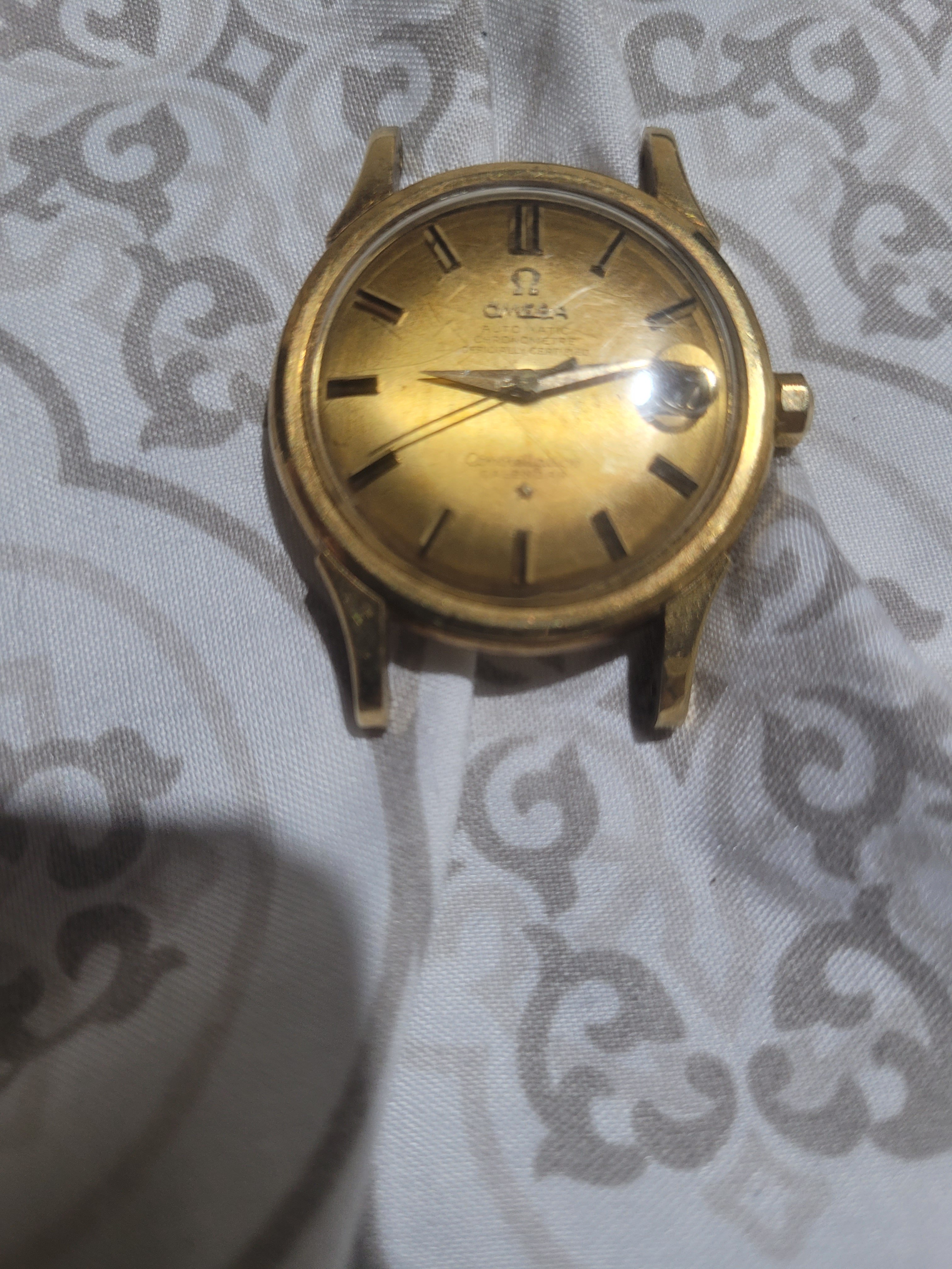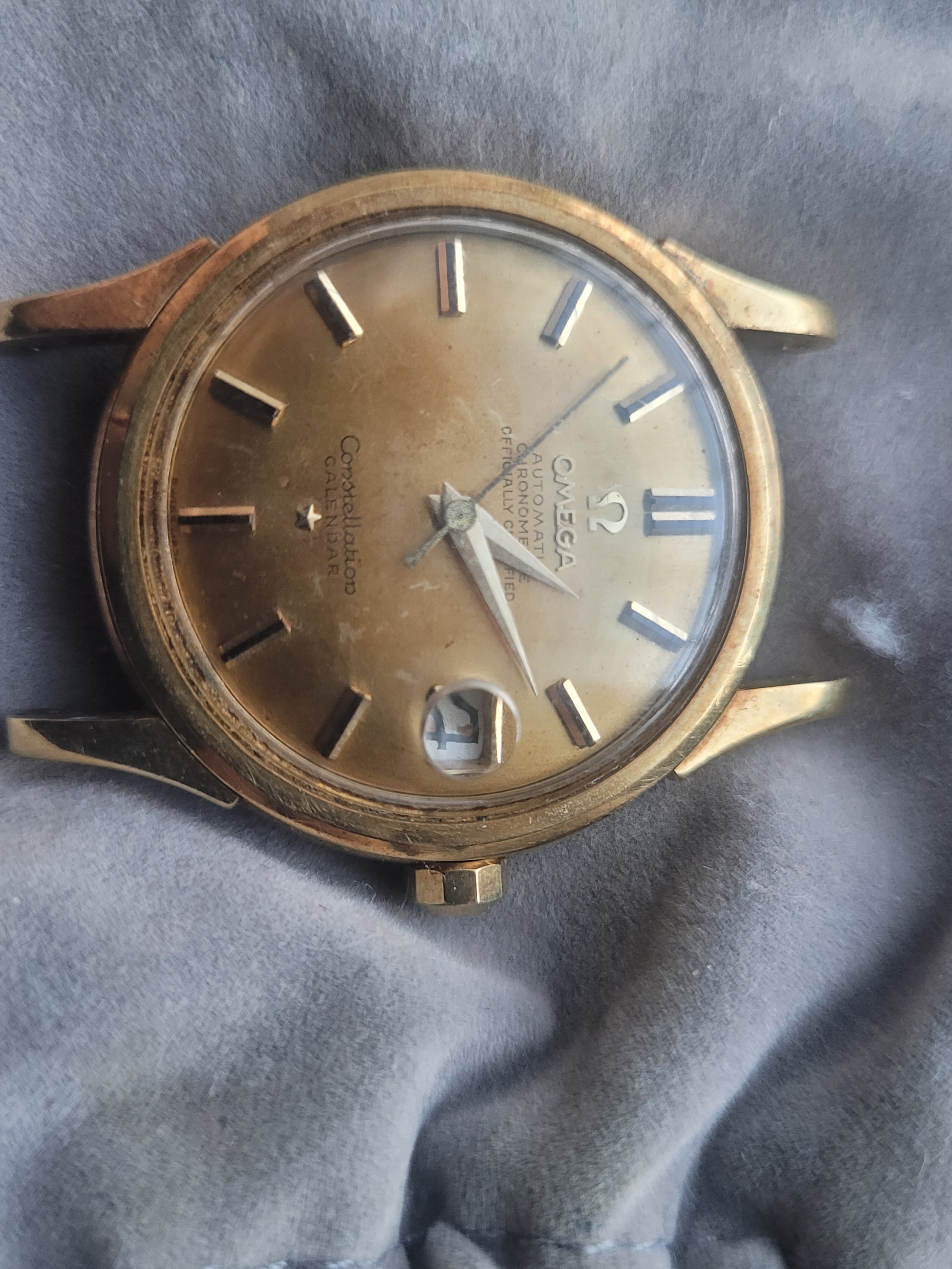 ·Hello everyone! this is my first time posting. I have an omega constellation that I'm assuming is ~1960s. I can't really identify it because when I do a reverse image search all the hits I get non have a round magnifying window. The story behind this watch is a bit sad. My late cousin which is way older than me died. He had a gambling addiction so he was known to pawn jewelry (that why it has no bracelet). Even though he had a trust he didn't have full access to it and would get an monthly allowance. After he died I was helping my cousins clean the house. We found a bag with some old watches which they almost threw away. I told them what it was they didn't want them and gave them to me. Nothing really note worthy in bag besides this. Even though my cousin had other expensive watches he would pawn them or sell them off. Weird thing is this is the only one that was found. Most of the bag had casio watches which he would always wear, a zodiac and 2 smart watches. Sorry for the long story. A bit more on the watch, I'm sure it never has been serviced. I could be wrong. The mechanism works properly and keeps time . I'm assuming it's not gold plated because it's really heavy and I remember him wearing it and it had a gold bracelet. This watch is almost as heavy as my certina ds podium or my Claude Bernard aquarider. I'm afraid of taking the back plate off and damaging the watch. Thank you in advance for your help.