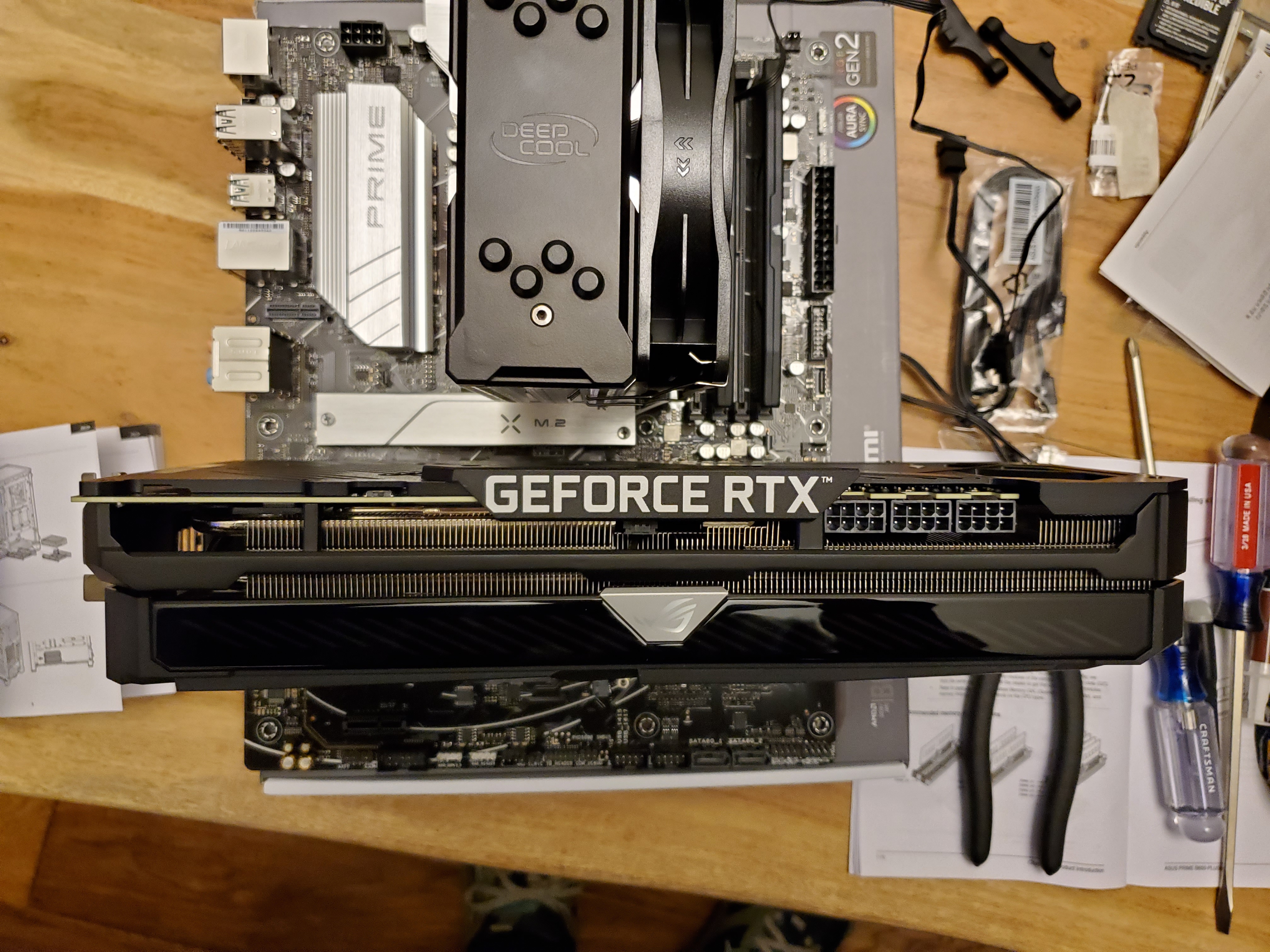 I recently got a 3080Ti hybrid and plugged it into a evga 850 T2 PSU, then recently got a gigabyte x670e master, 32gb ddr5-6000 ram, and a Ryzen 7 7700x. Cooling by a giant brown noctua cooler.