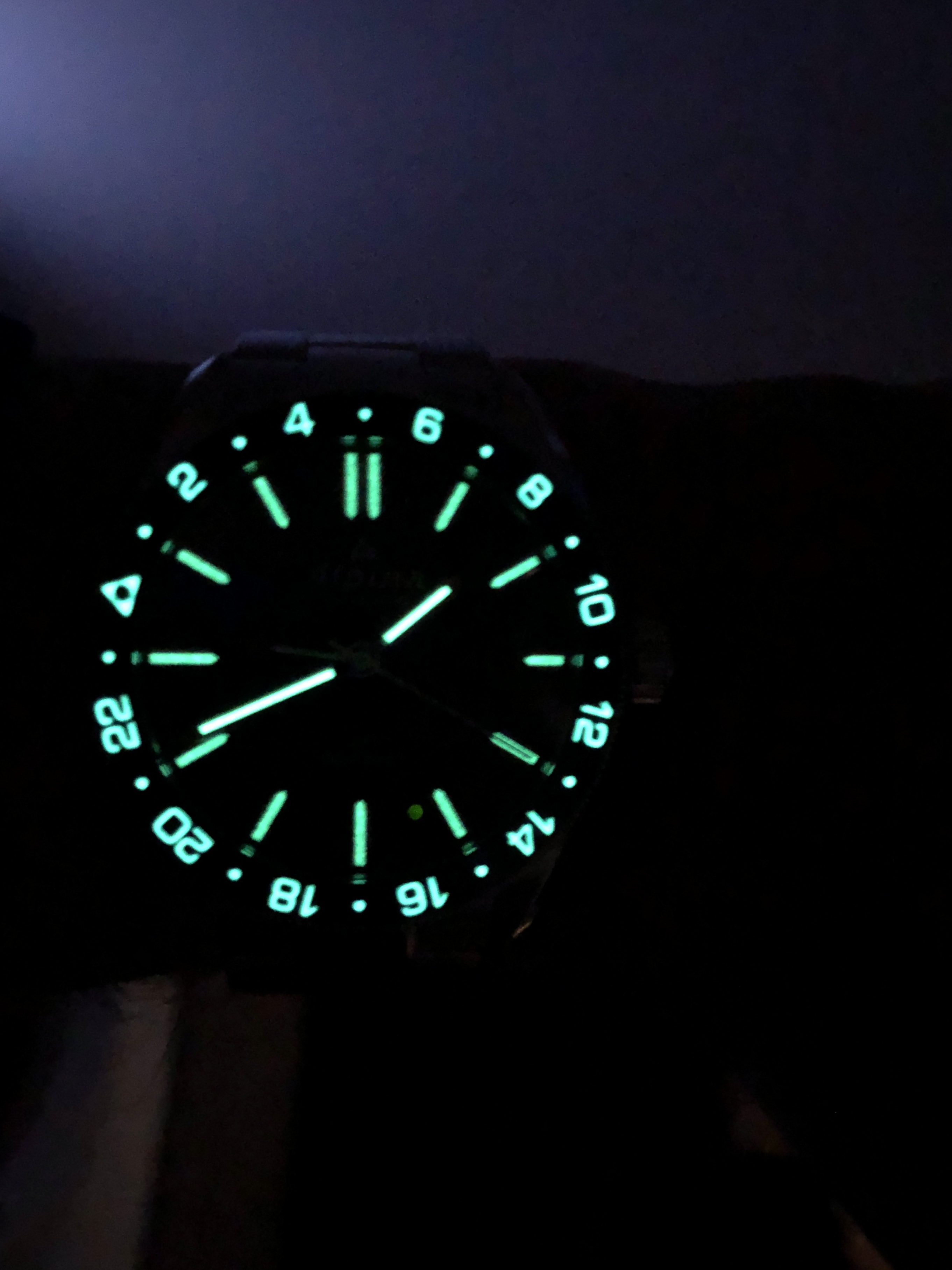Posts 307 Likes 444 bombaywalla ·Jul 5, 2022 Alpina GMT quartz The idiot thing is the bezel is lumed but the GMT hand is not! Not sure which genius designed this watch at Alpina??