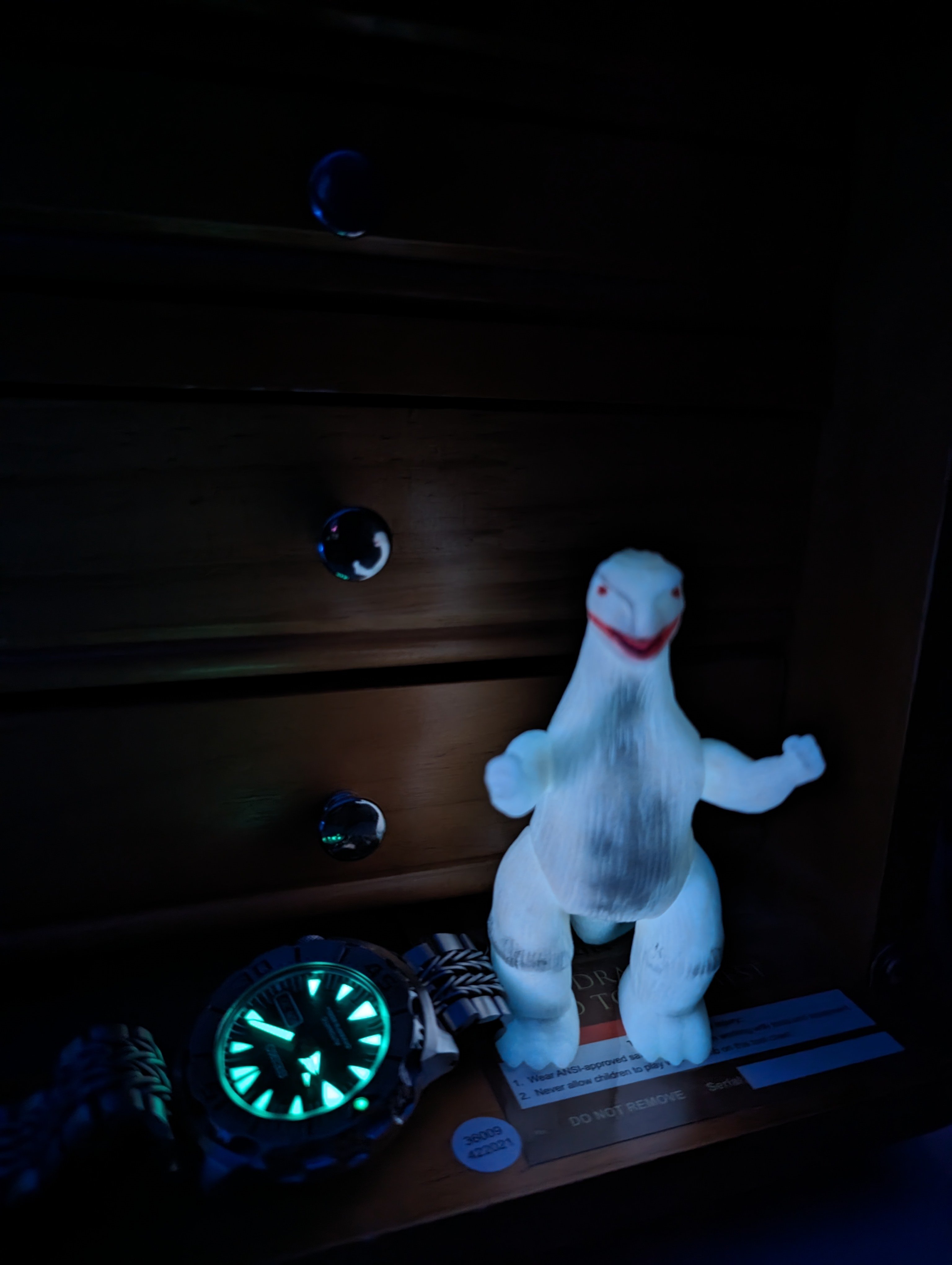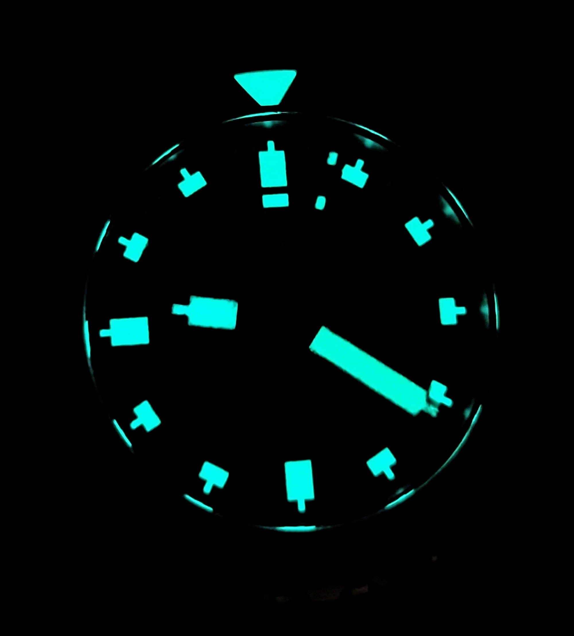 There is lume only on the arrow tip of the minute hand, not the shaft, so when that hand is on (or close to) an hour marker, it is absorbed and becomes part of that lume plot. Twelve times an hour all you’re left with is the paltry amount of lume on the short hour hand to try to figure out the time. Good luck with that in the middle of the night.