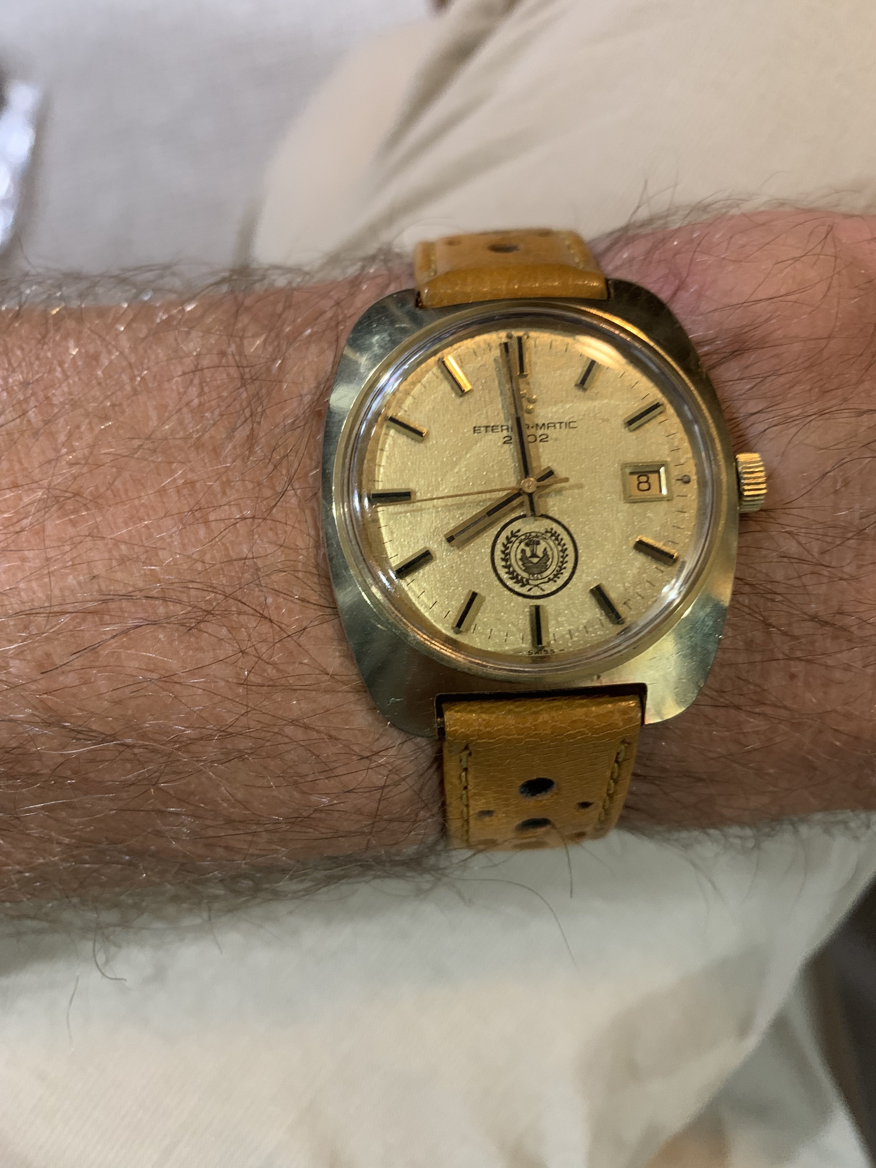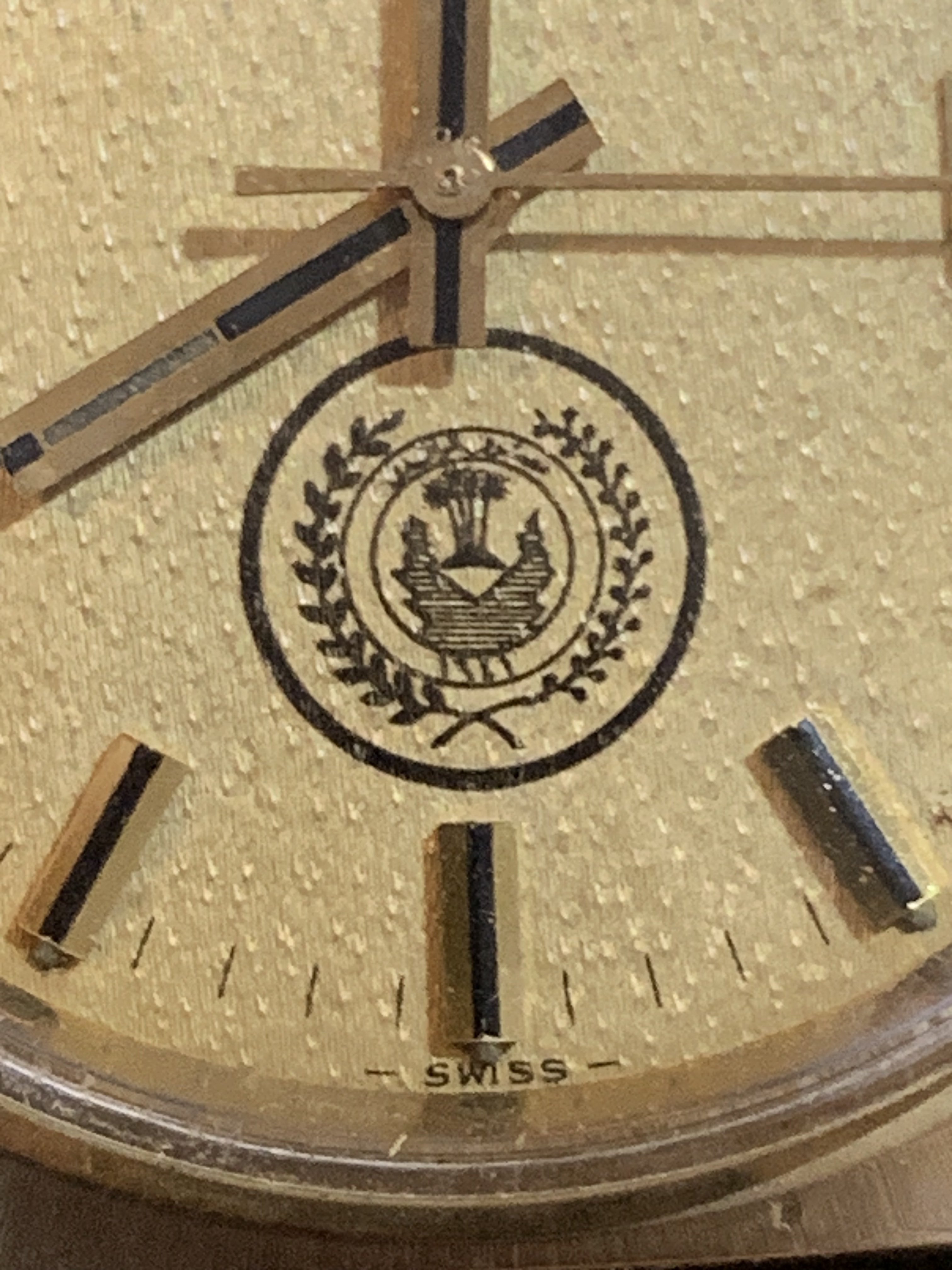 Posts 2,057 Likes 22,195 Norfolk ·Nov 8, 2023 I have tried and failed to identify this crest. I believe Arab or Far East given the palm trees and no lume on dial …any guru here recognise it? It’s even stumped Google search with a photo!