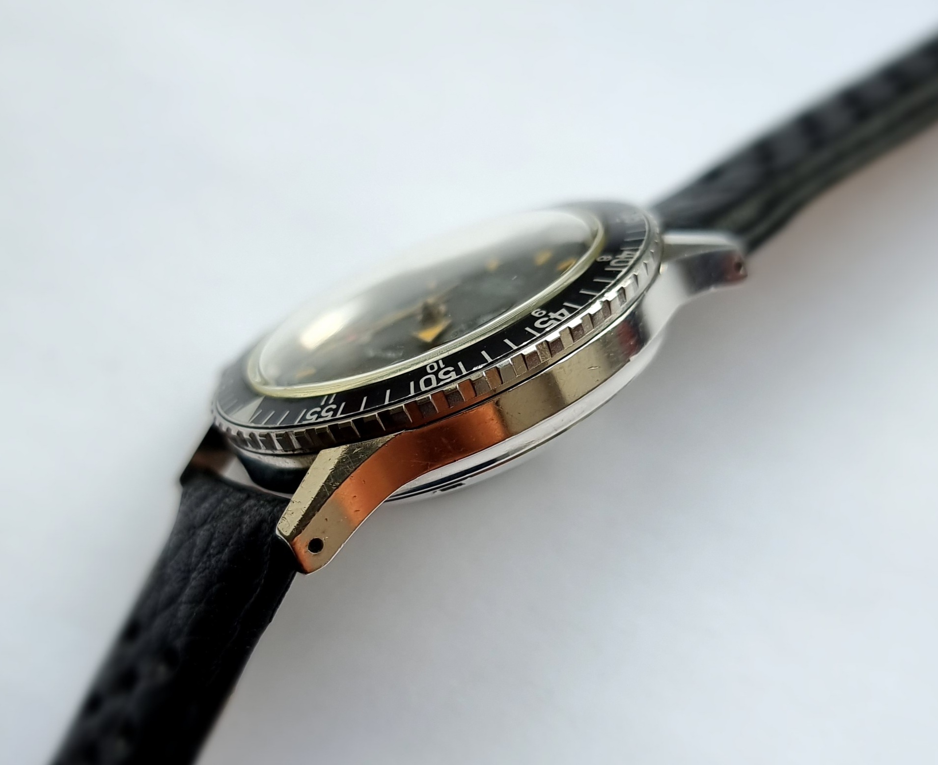 The case looks unpolished with only a few small marks commensurate with age. The lugs are very sharp and the bevels are clearly present, with no signs of polishing. The hand lume is original, there is a small crack in the hour hand, but the lume appears stable. The dial plots are all present and both have aged to a very nice chestnut patina.