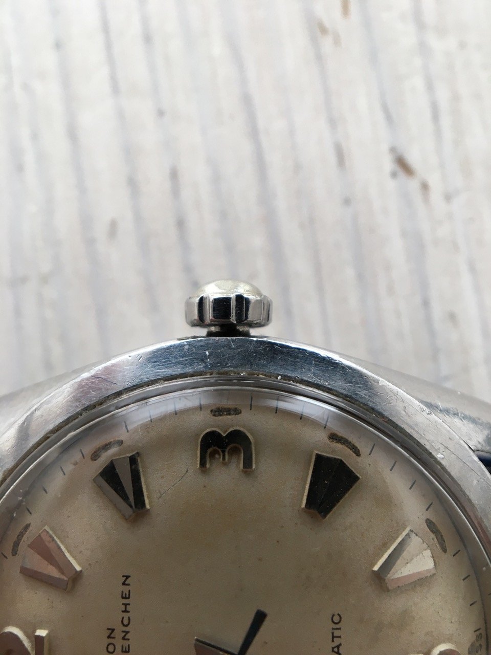 A crown with the Nivada logo (N in a coat of arms) would be nice, otherwise an unsigned one would also be very welcome. I can imagine that early versions had no logo.