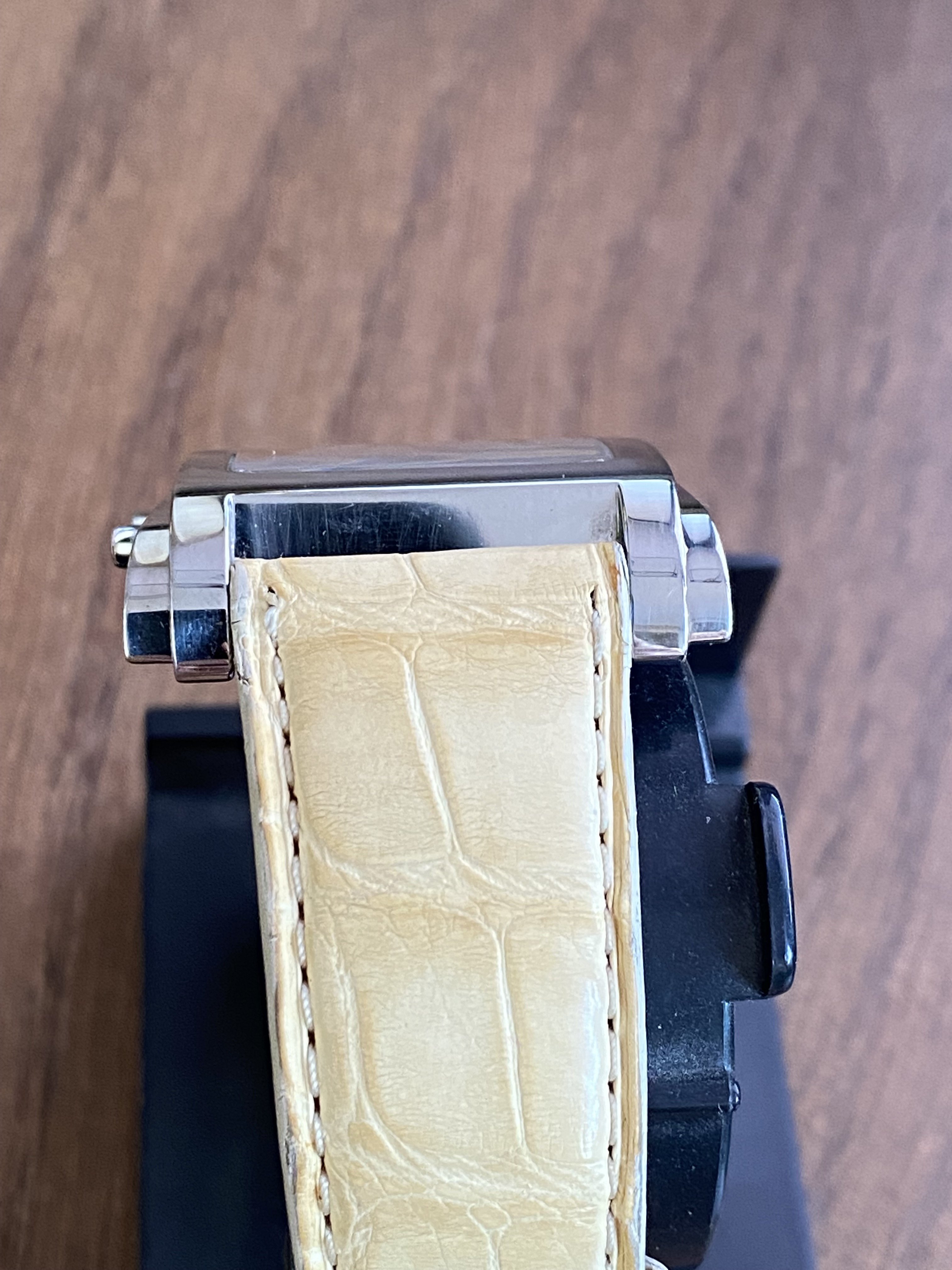 Box and documents are not included. The watch is in good condition. The case of the watch has scratches and defects, see the photo. The clasp requires a little repair as the screw is lost. Price 2200 euro
