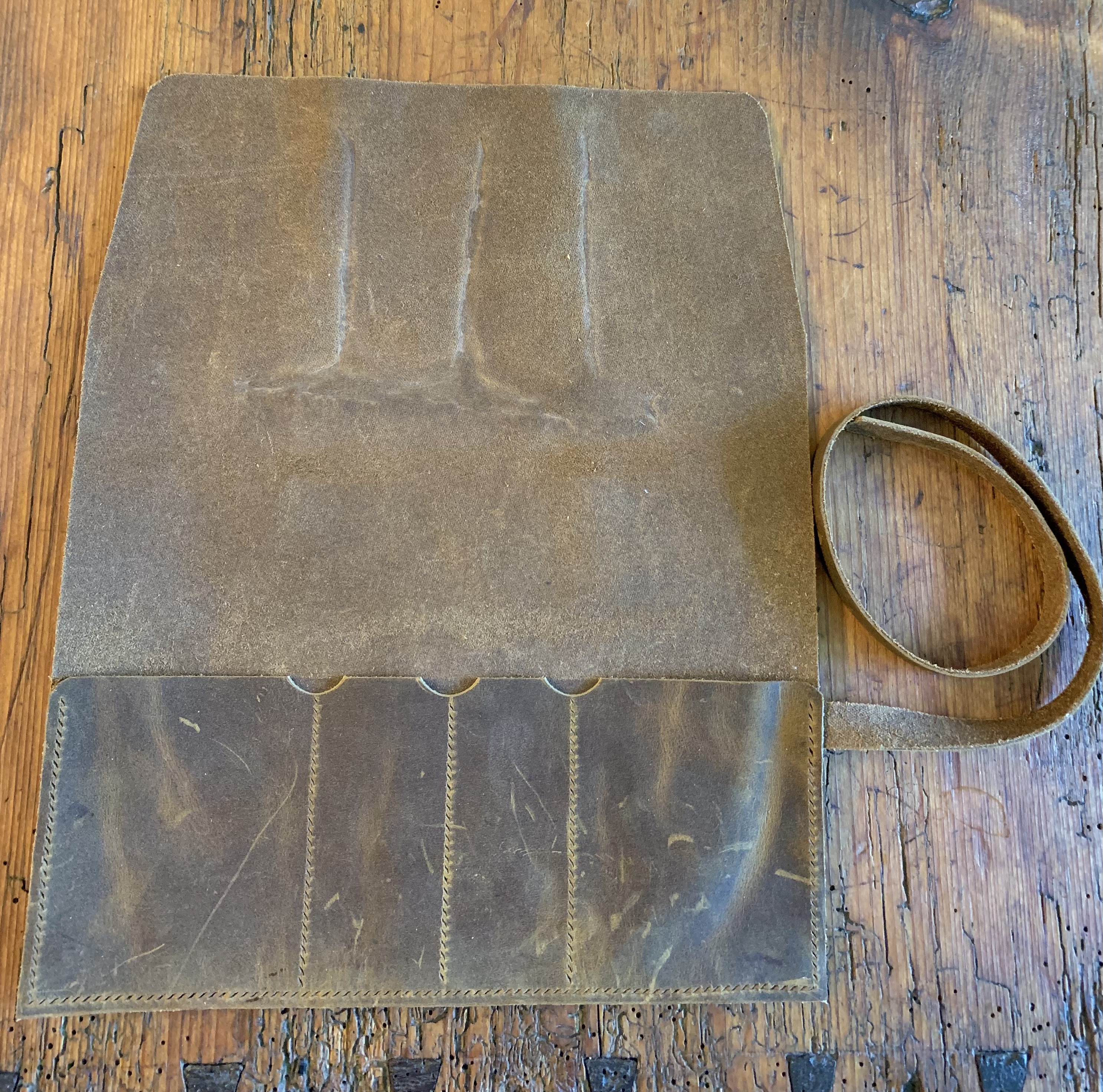 The watch roll is shown here with the stitching line laid in, and it is simply awaiting a buyer to choose the thread colour that will make this one-of-a-kind piece truly theirs