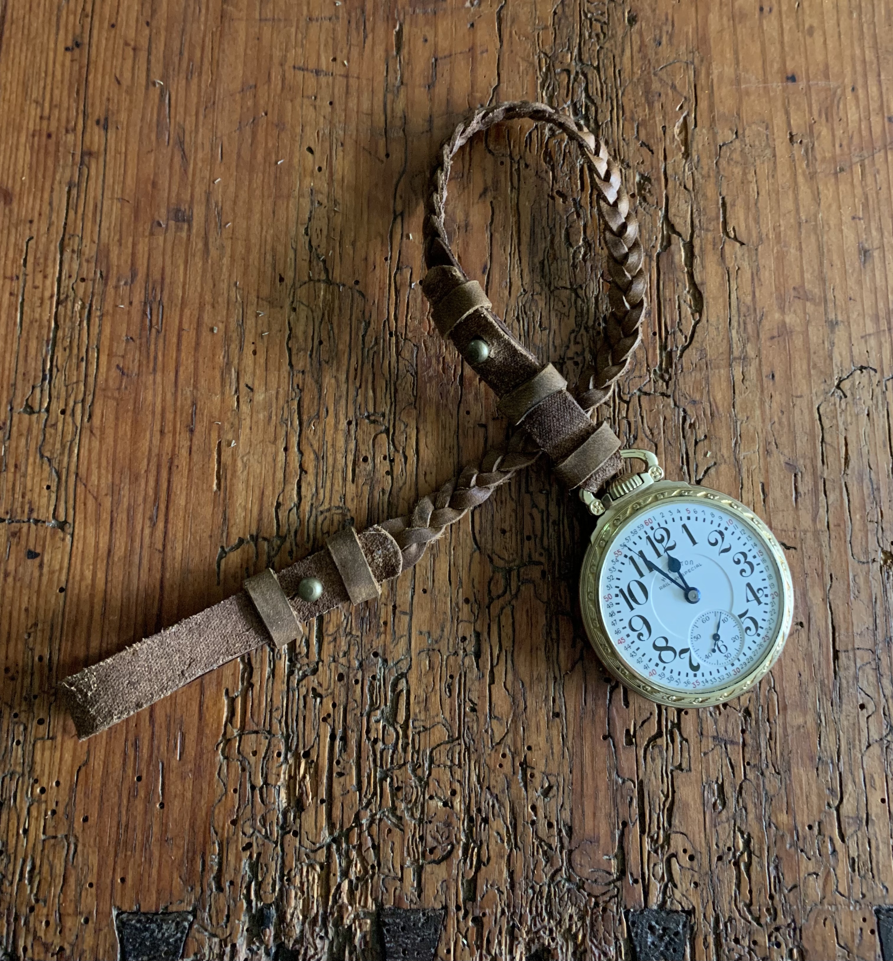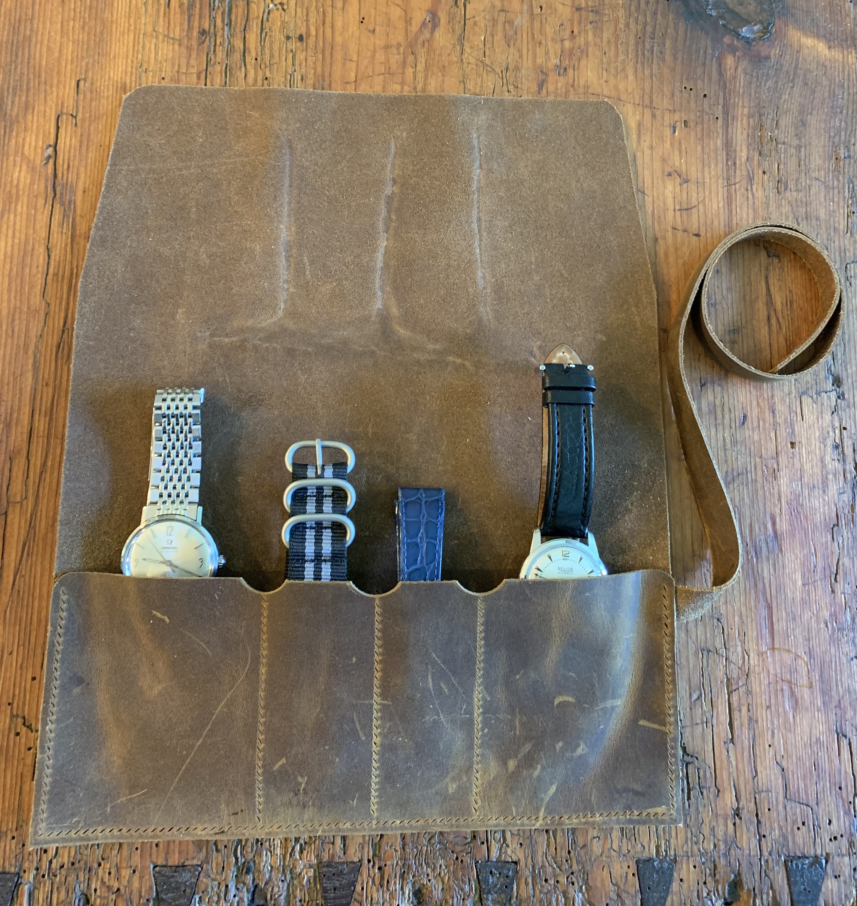 ·I usually spend my days huddled over a kerosene lamp making lanyards for the poor nerdy souls who have stumbled into collecting pocket watches. Truth be told, I am happy to brighten their days. Recently a new hide of leather arrived featuring a branding mark on it - a first for me. I was sure that the pocket watch community will be okay with me diverting some of their lanyard leather for another project - just this once - and so I present this watch roll for sale. I was asking $150 USD, now seeking $125. North American shipping included from my home in Canada. International shipping at whatever the extra amount is. Payment by Wise (the terrible new name of Transferwise), PayPal F&F, or interact for my fellow Canadians.
