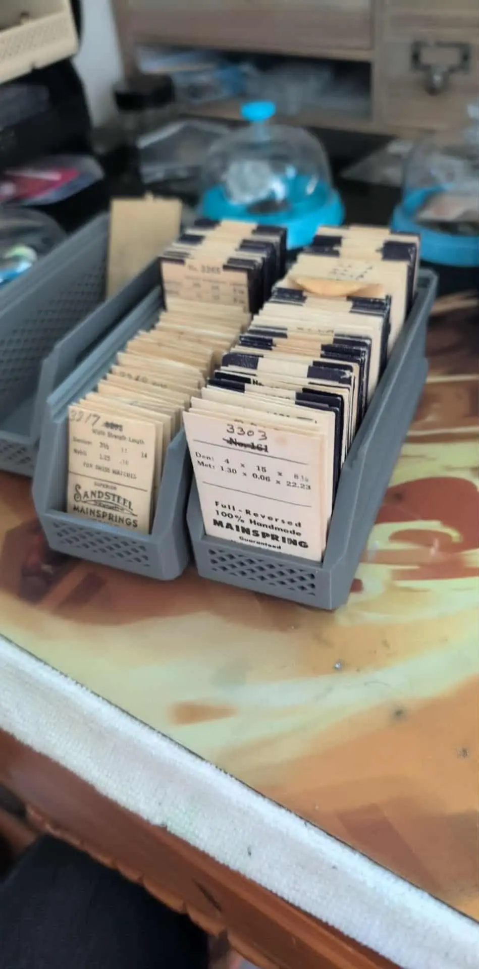 ·Hey everyone, I used to do 3D printing and some modeling as a side hustle. I brought that over to my watch repair as well. With that I brought over a storage idea I wanted to extend to you all. I'll charge materials and shipping and can make as many as you'd like and also adjust the sizing if you wanted to change anything. If this is something you'd all be interested or stuff like this, let me know. Current configuration holds about 50 mainspring packages.