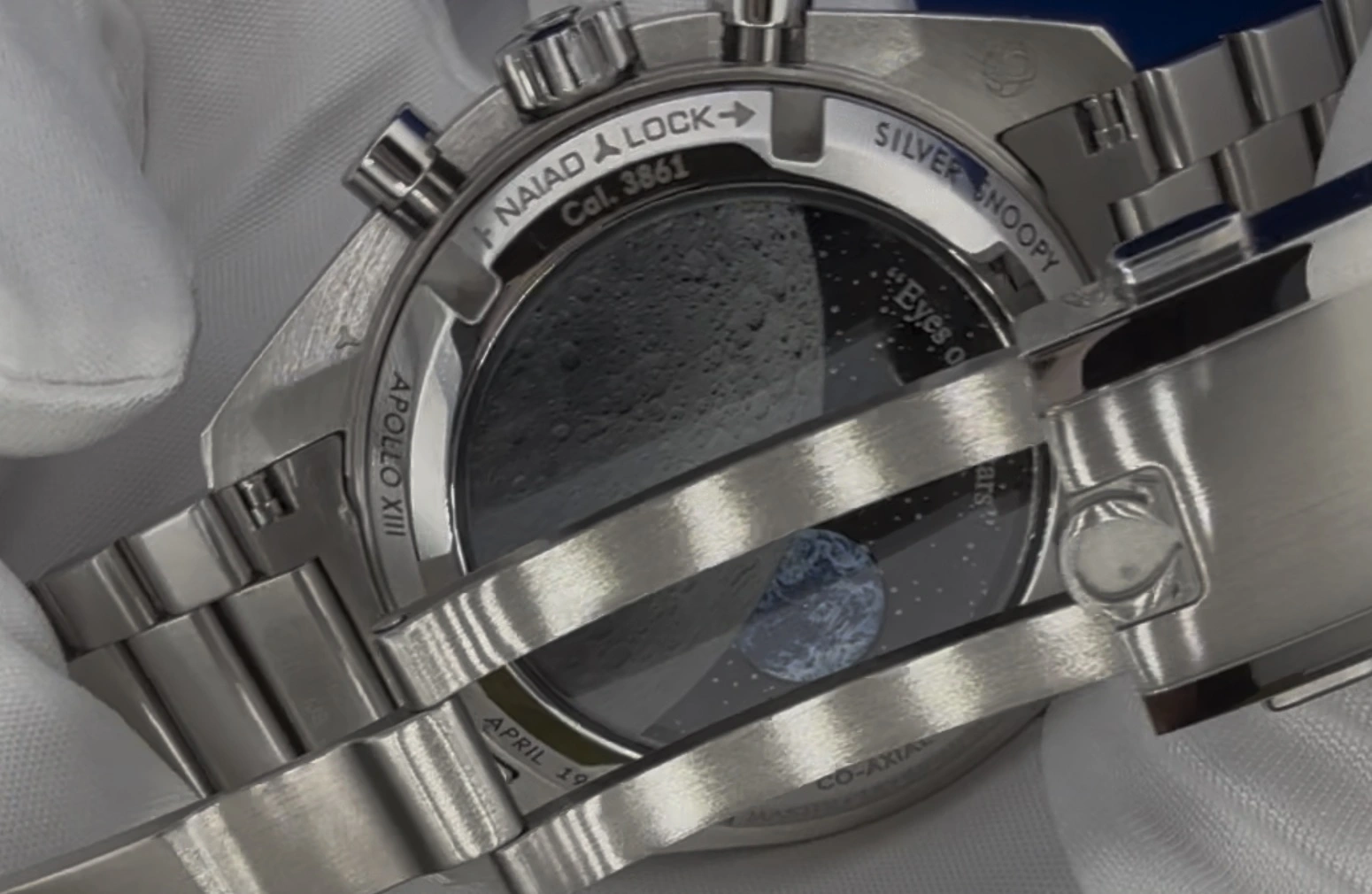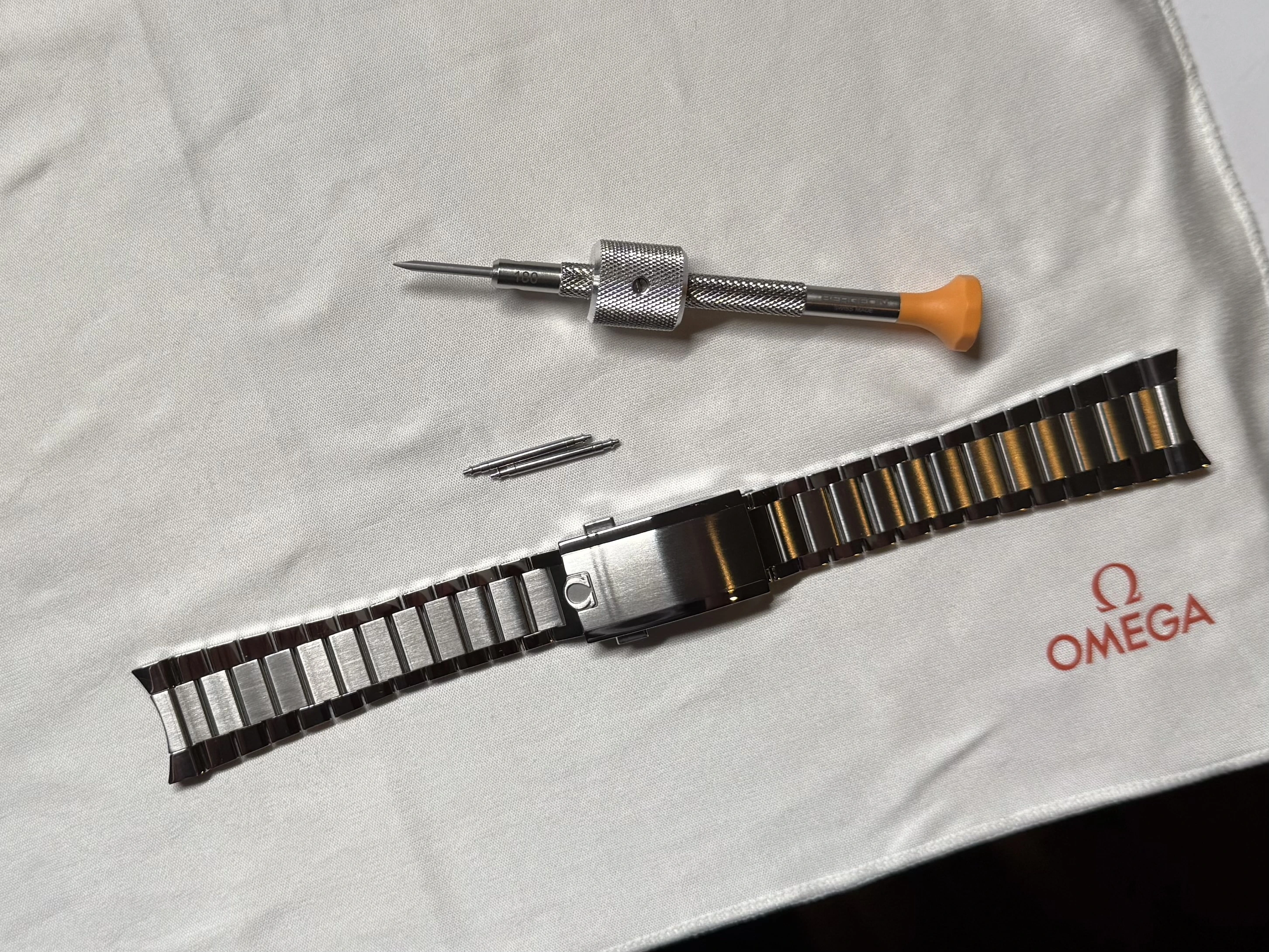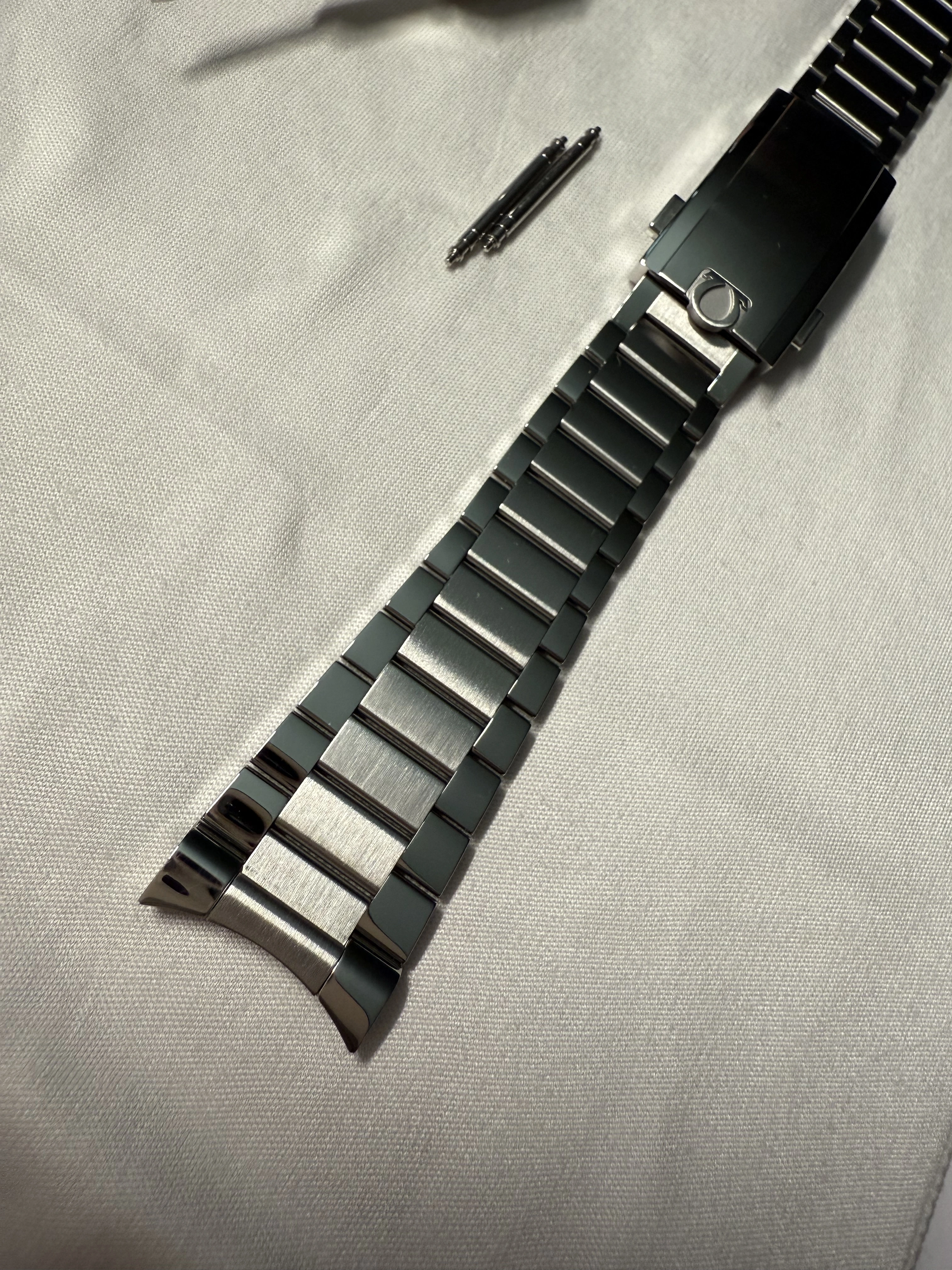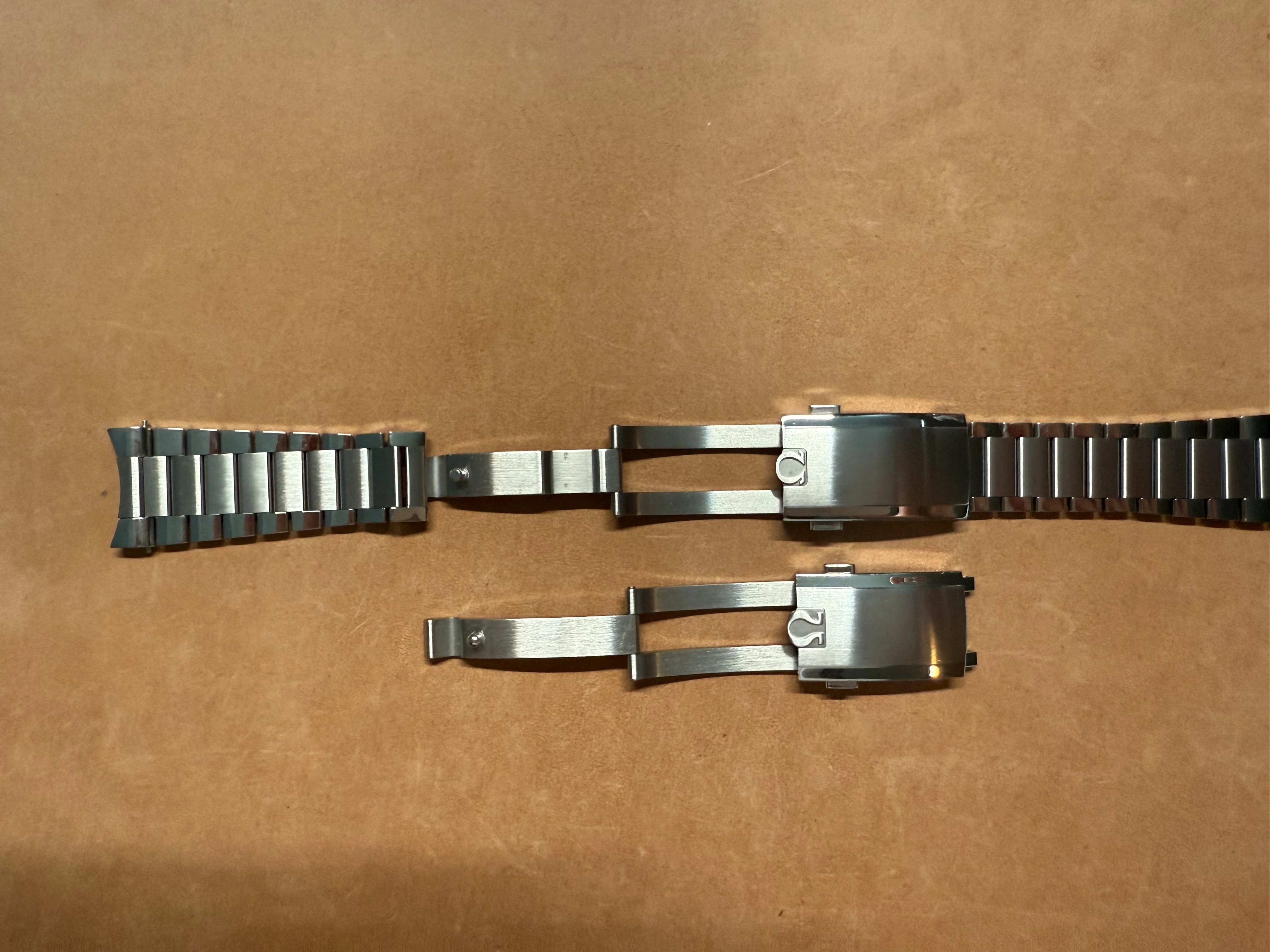 ·For sale is an Omega Apollo 11 50th anniversary bracelet with end-links modified to fit the Silver Snoopy seamlessly using the standard 1.8mm springbars. I've also added the Omega Speedy 57th micro adjust clasp to this bracelet. It had to be modified to fit the bracelet perfectly. Since it fits the Silver Snoopy, I would think this will also fit the 3861 moonwatch and sapphire sandwich perfectly.