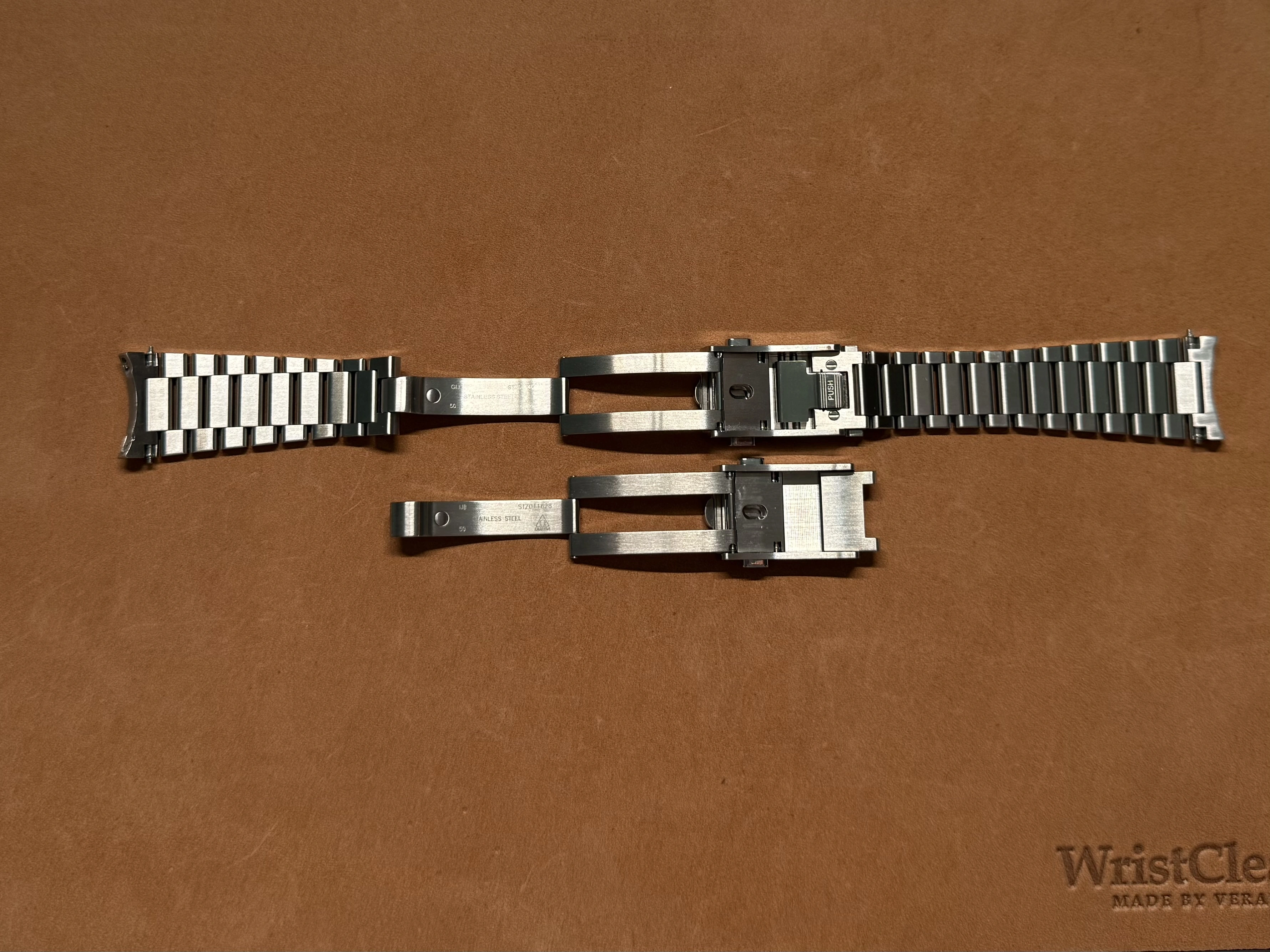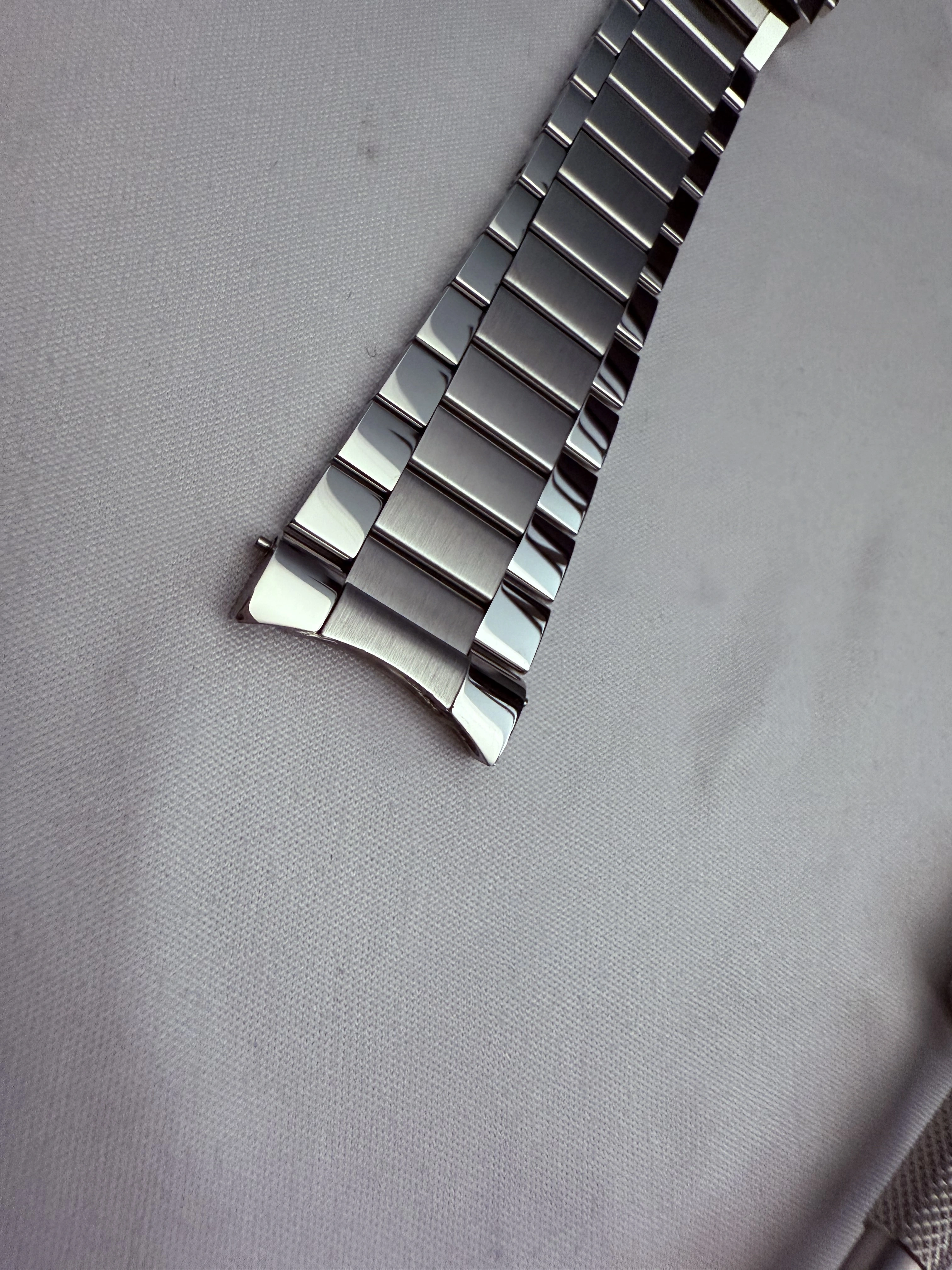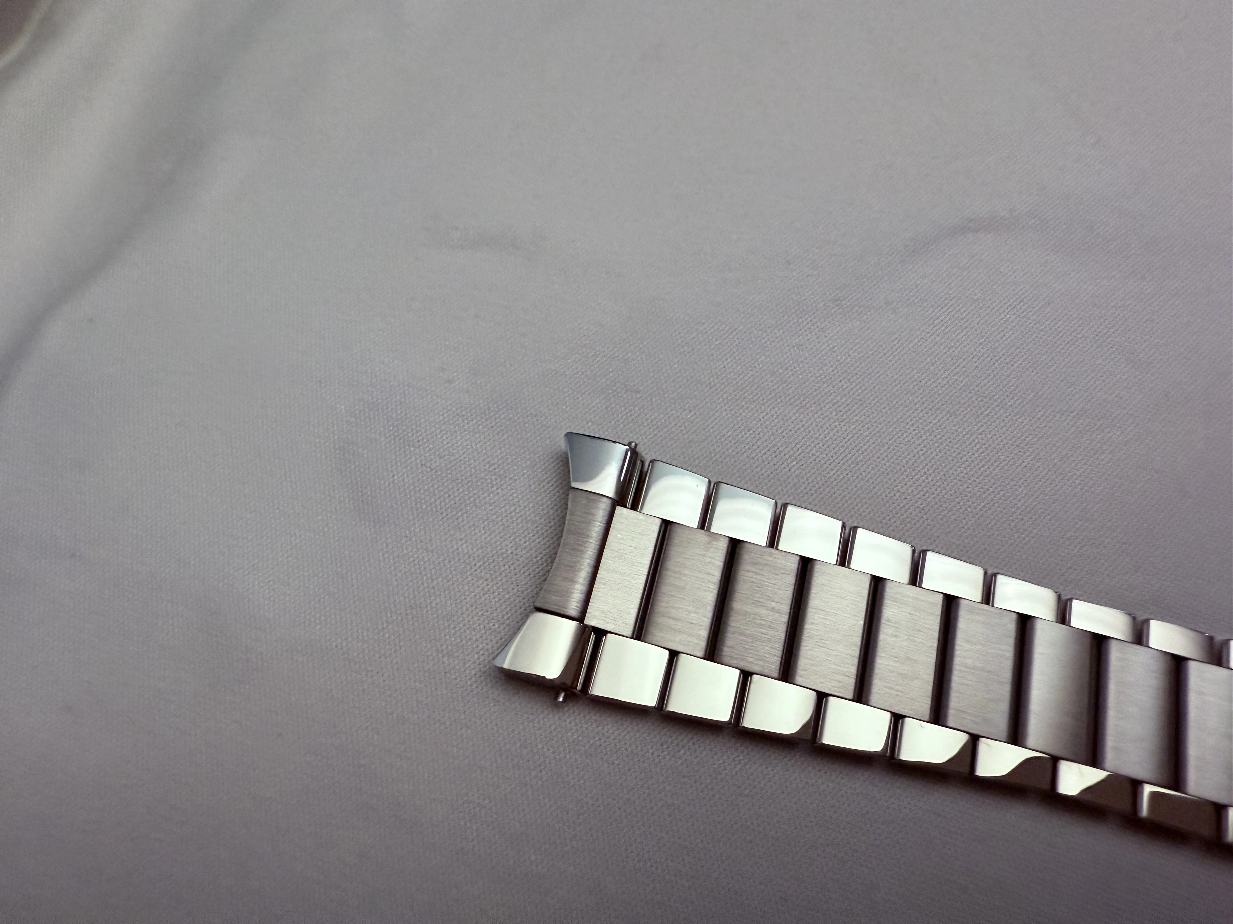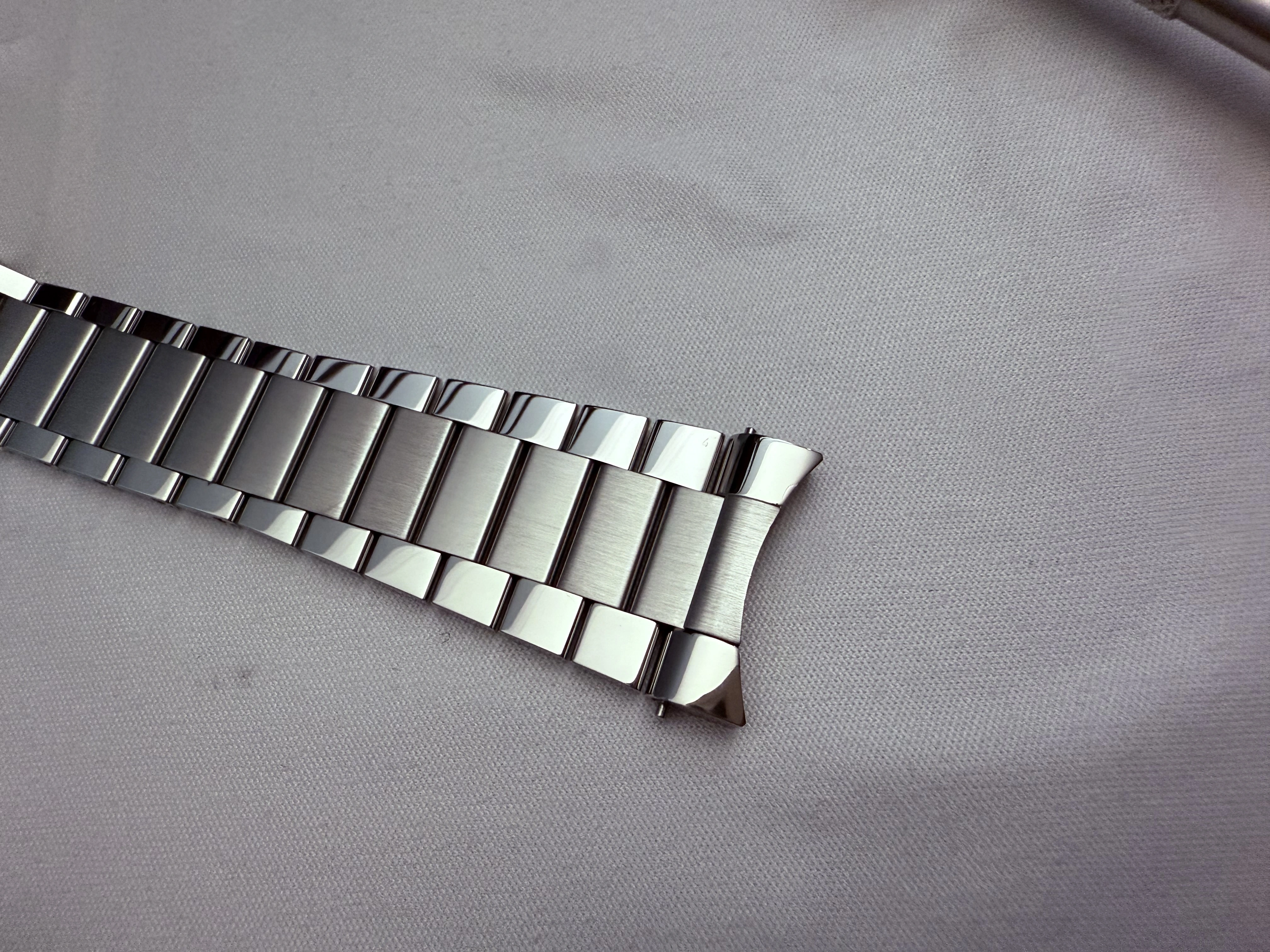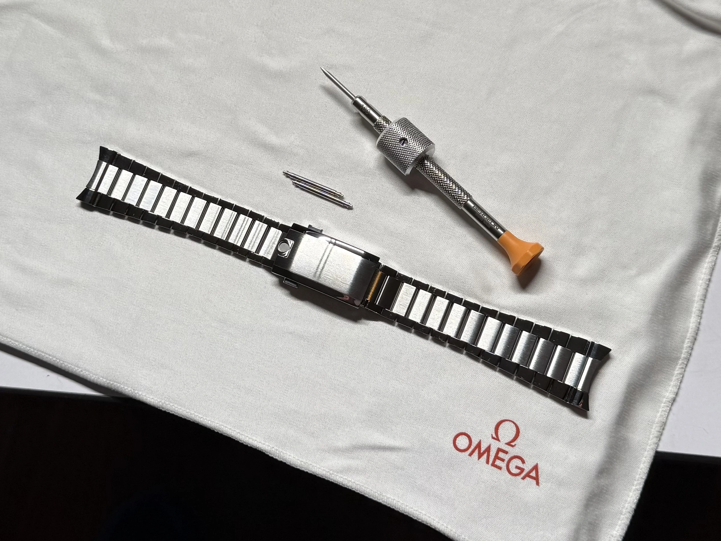 ·For sale is an Omega Apollo 11 50th anniversary bracelet with end-links modified to fit the Silver Snoopy seamlessly using the standard 1.8mm springbars. I've also added the Omega Speedy 57th micro adjust clasp to this bracelet. It had to be modified to fit the bracelet perfectly. Since it fits the Silver Snoopy, I would think this will also fit the 3861 moonwatch and sapphire sandwich perfectly.