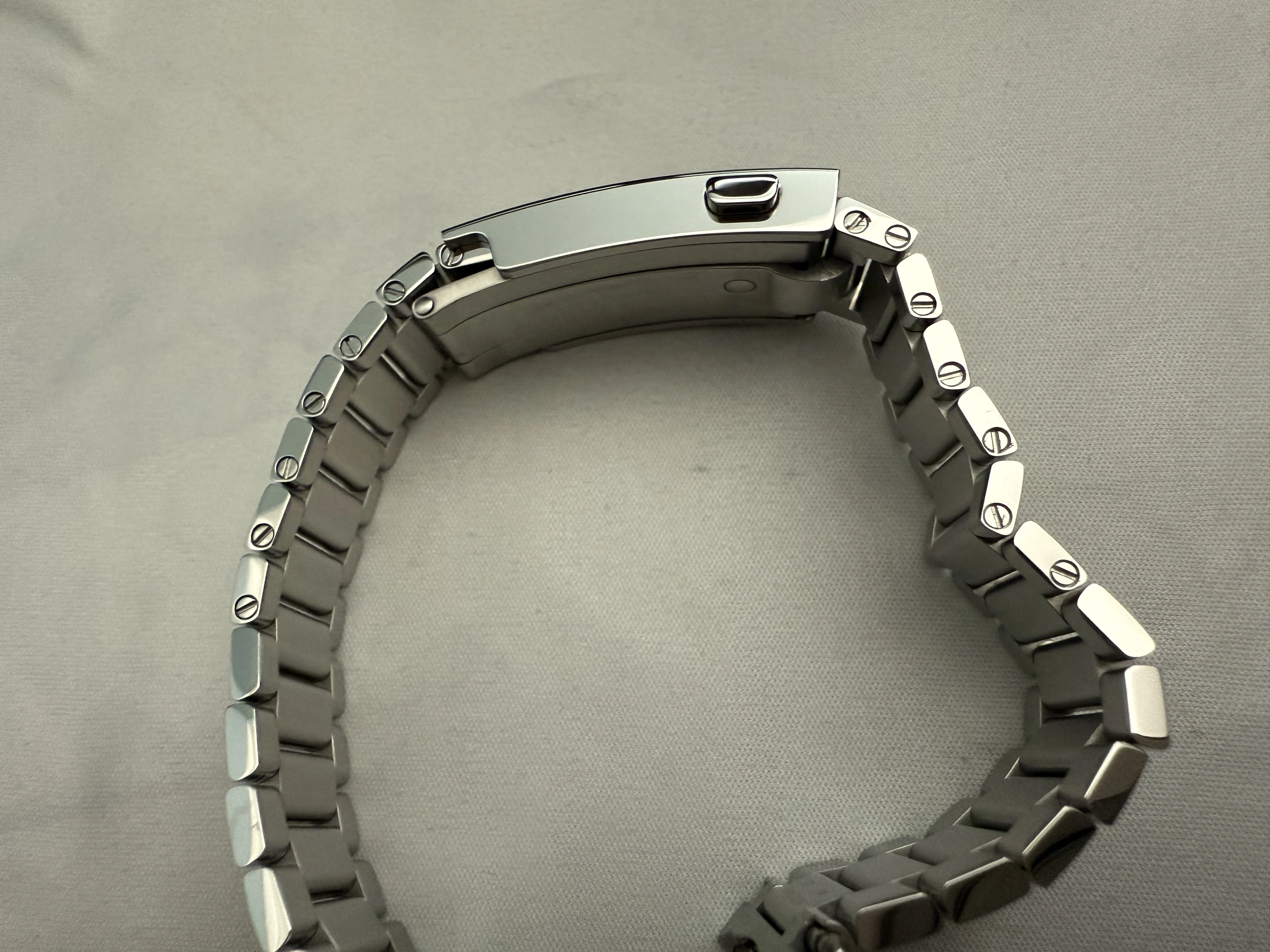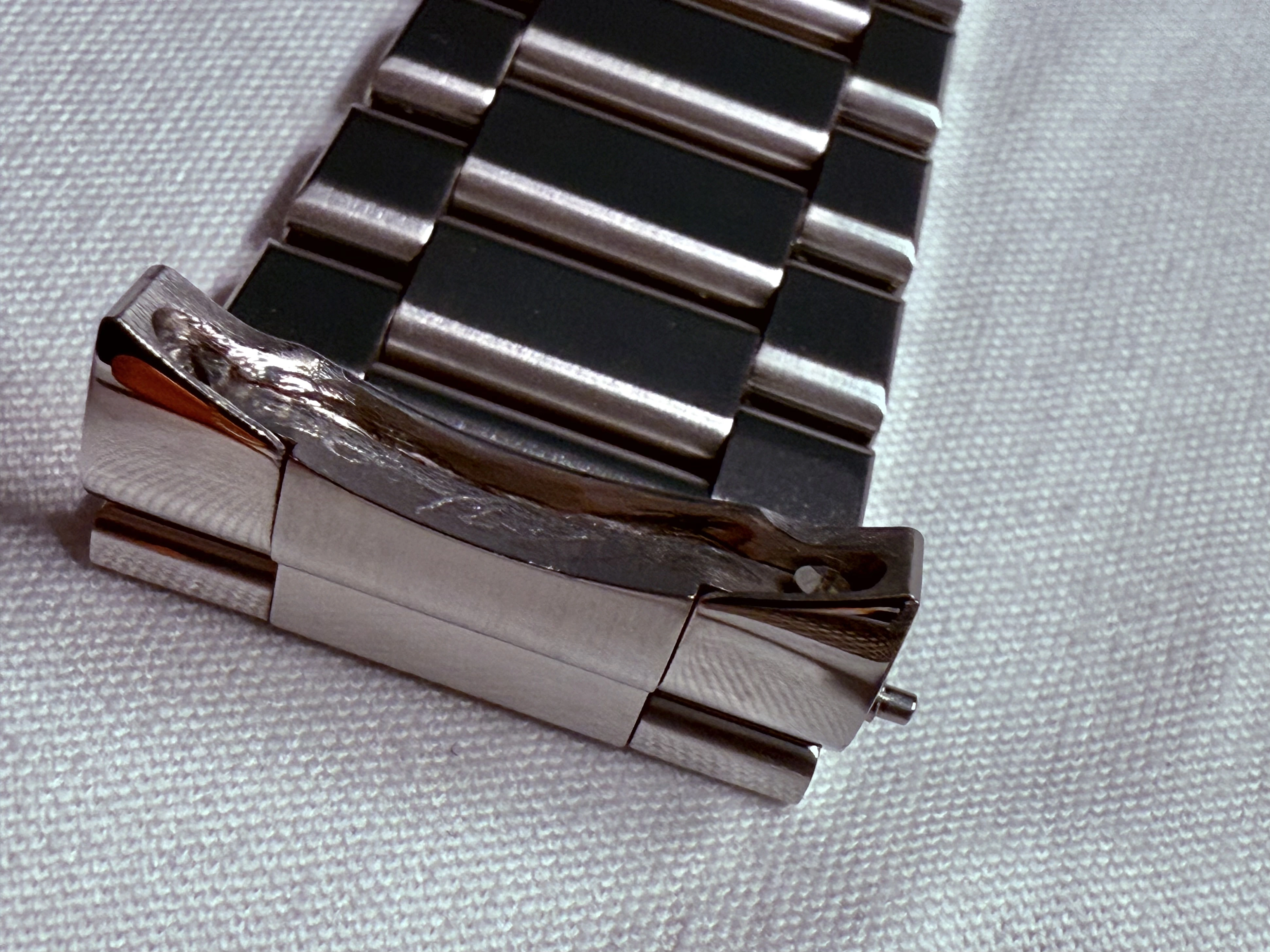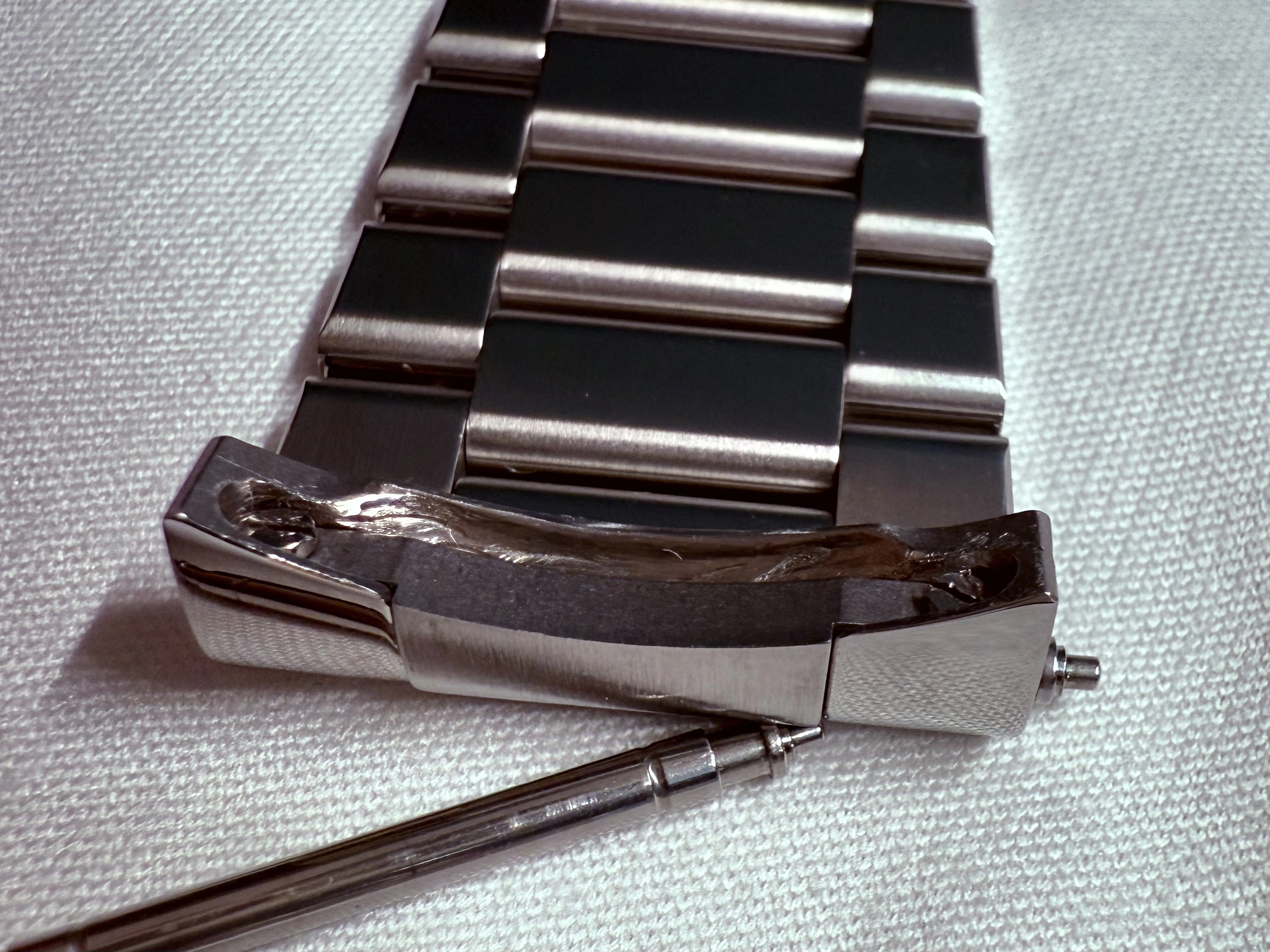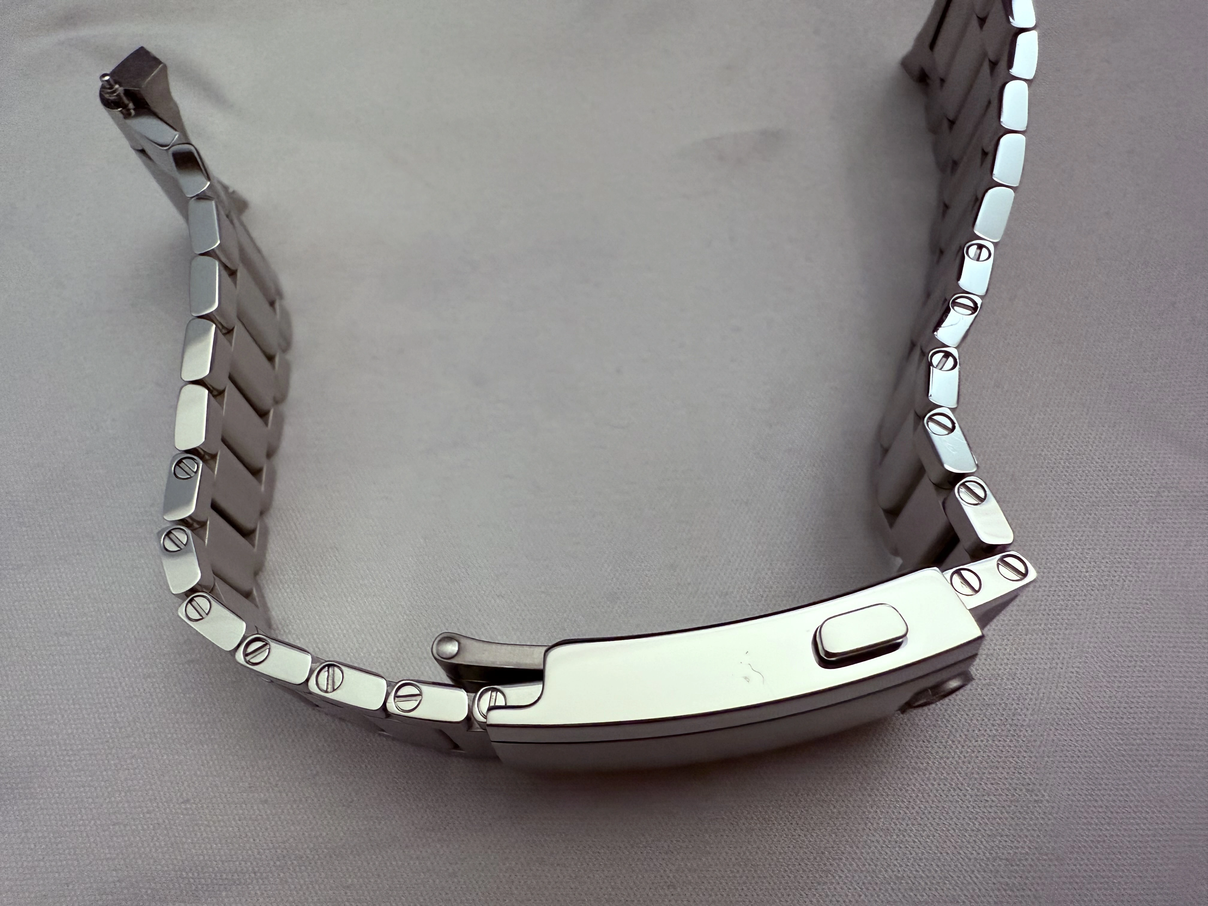 ·For sale is an Omega Apollo 11 50th anniversary bracelet with end-links modified to fit the Silver Snoopy seamlessly using the standard 1.8mm springbars. I've also added the Omega Speedy 57th micro adjust clasp to this bracelet. It had to be modified to fit the bracelet perfectly. Since it fits the Silver Snoopy, I would think this will also fit the 3861 moonwatch and sapphire sandwich perfectly.