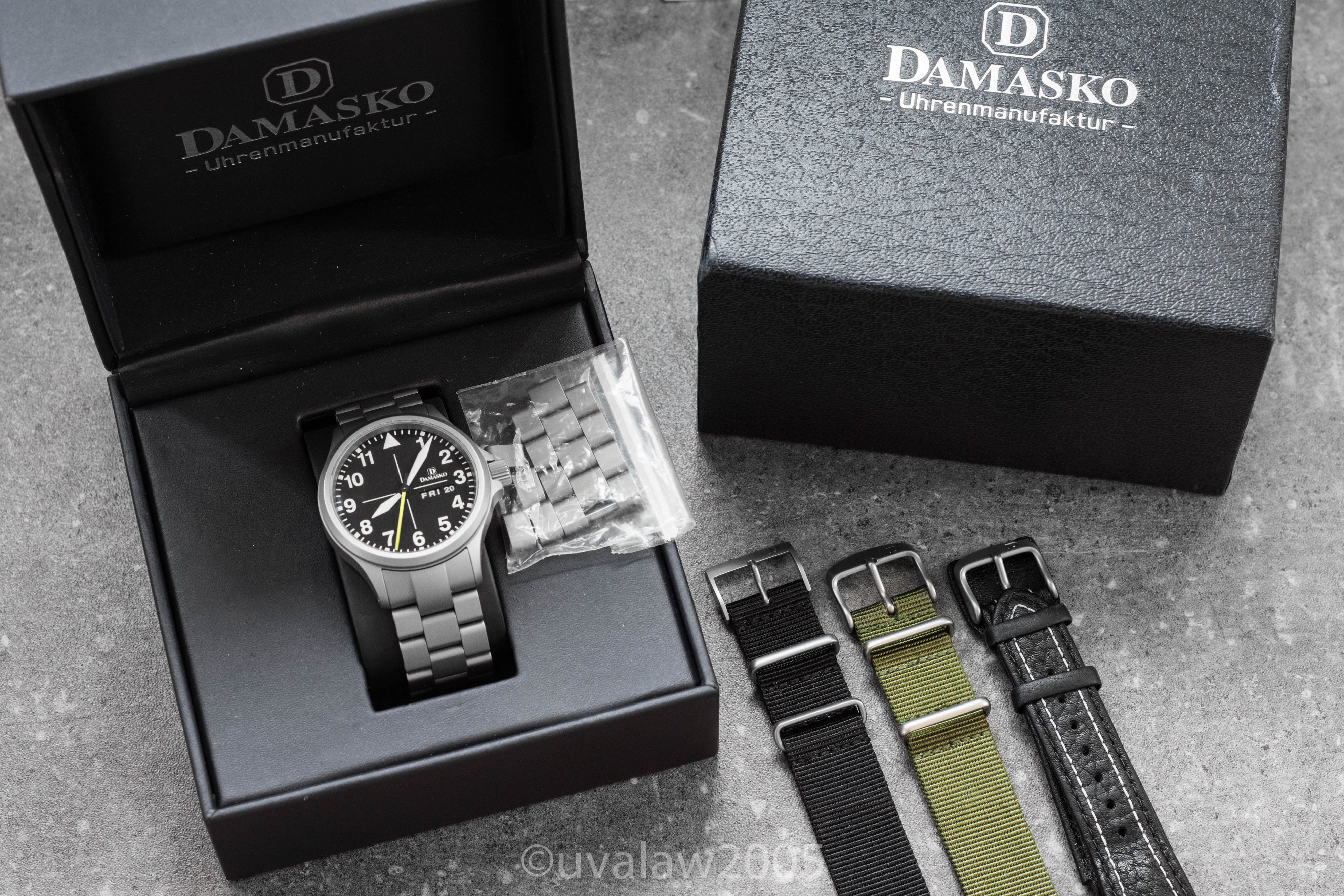 ·For sale is my Damasko DA36 with OEM bracelet (including all links), leather strap, and black and green NATO straps (with matching bead blasted hardware). Watch was special ordered with AR coating on the inside only. A few signs of wear to the case and bracelet, but overall in the excellent condition you would expect from Damasko.