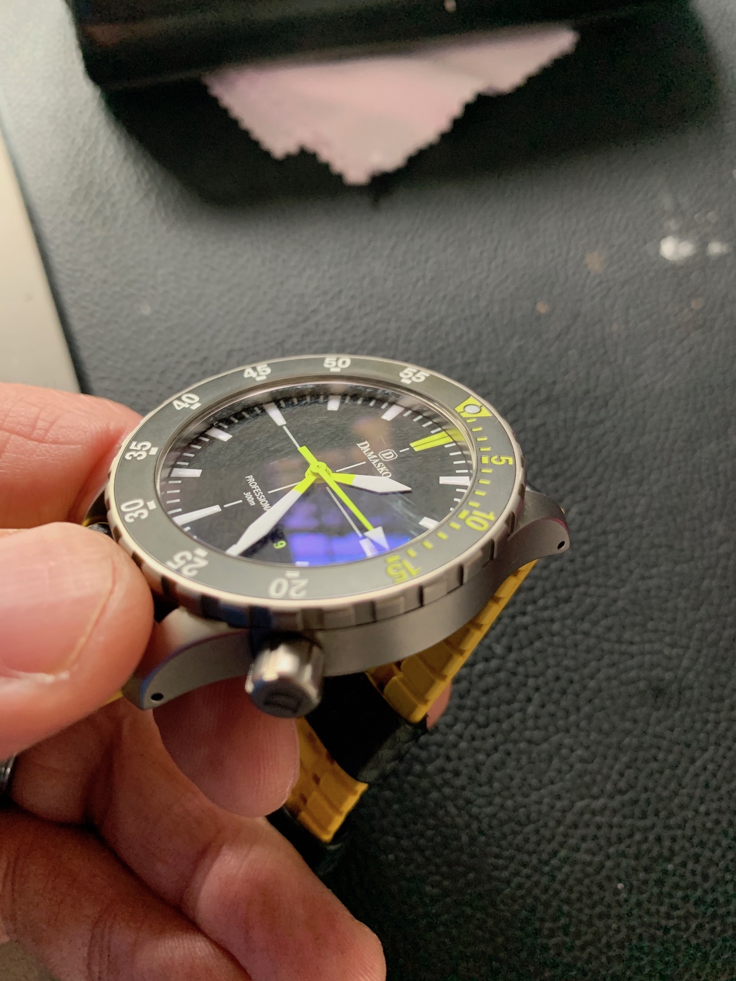 Somehow, I scratched the sapphire on my Damasko DSub1. There is no AR coating on the outside of the sapphire.v( I was wrong - there was AR coating on the outside of the Sapphire glass - the Ad informed that there was none)