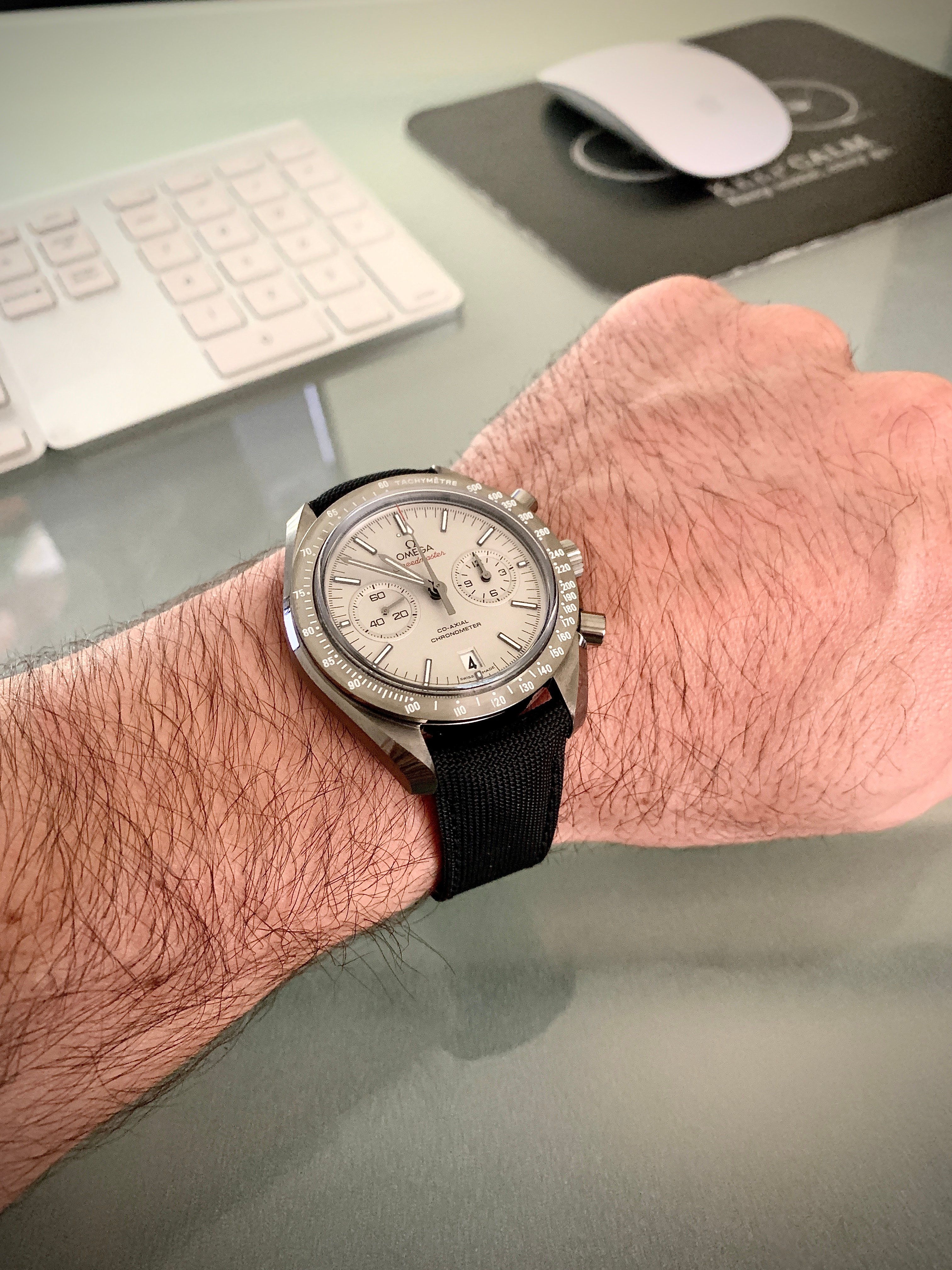 路What do you think of my "Dark Grey Side of the Moon"?? I ordered a Dark side of the moon strap directly from omega to put it in my Grey side. I live in a quite hot city and work a lot outside so I was afraid of damaging the gorgeous grey alligator strap. I thought if I had a tougher