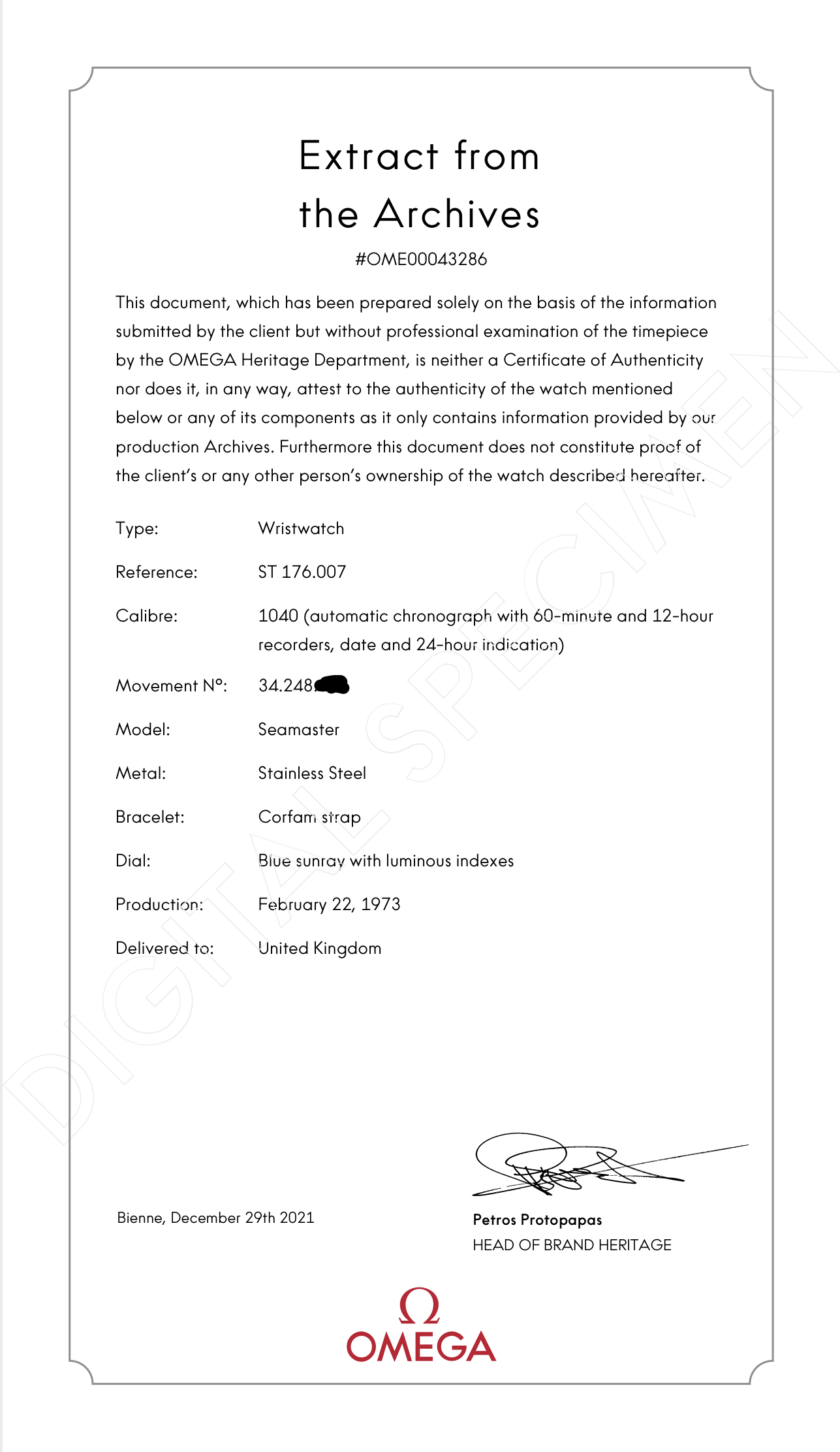 Whenever I’ve seen photos of the backs of dials here they have tended to be sterile, but I thought it was cool that it had a date stamp! I was curious as to whether this was common in vintage Omegas of the time, and whether any other 176.007 owners have compared this date stamp with an extract from the archives? I guess that the date stamp here would only refer to this component, but it would be interesting to know others’ experiences!