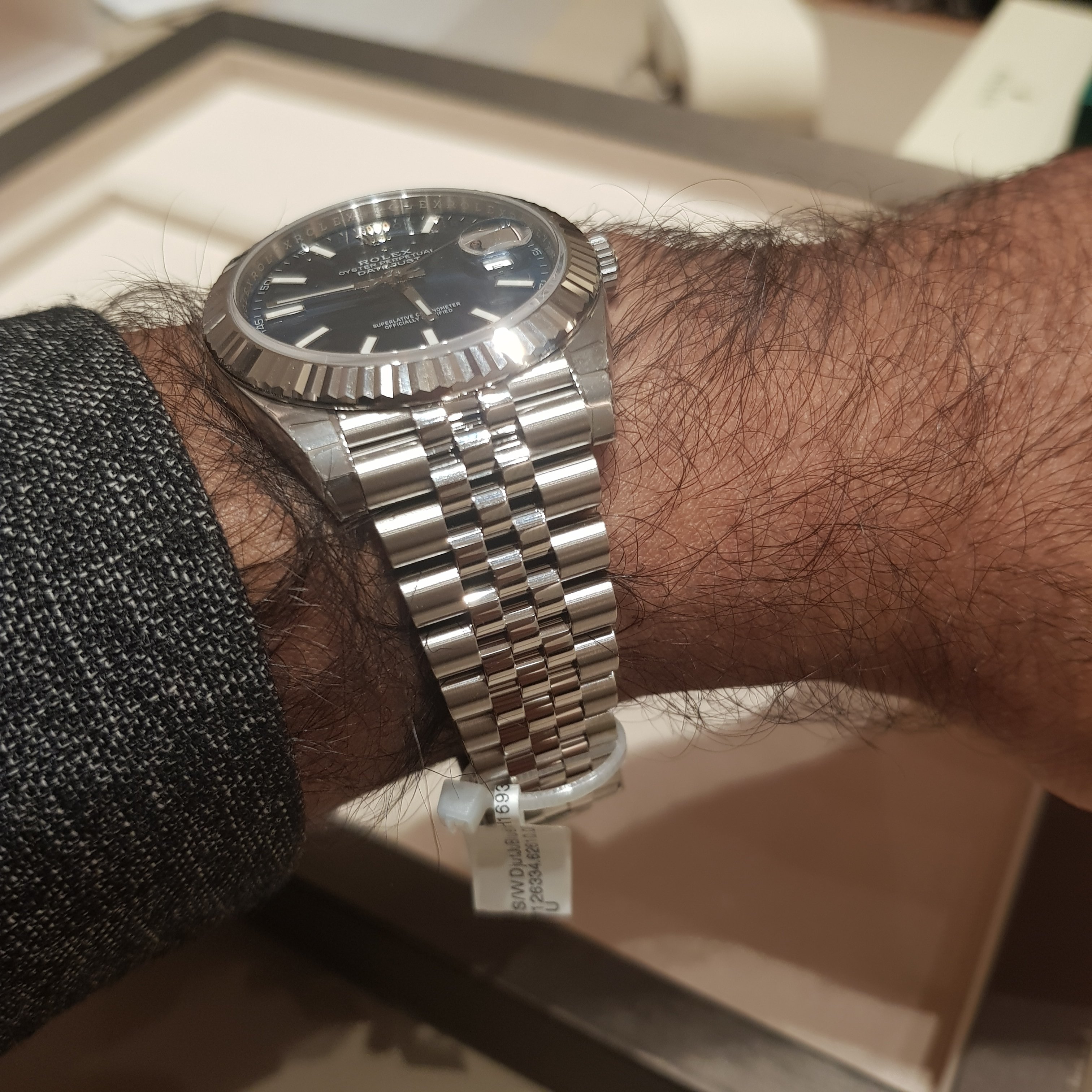 This model has recently caught my eye. Particularly the blue dial, fluted bezel on the jubilee bracelet.